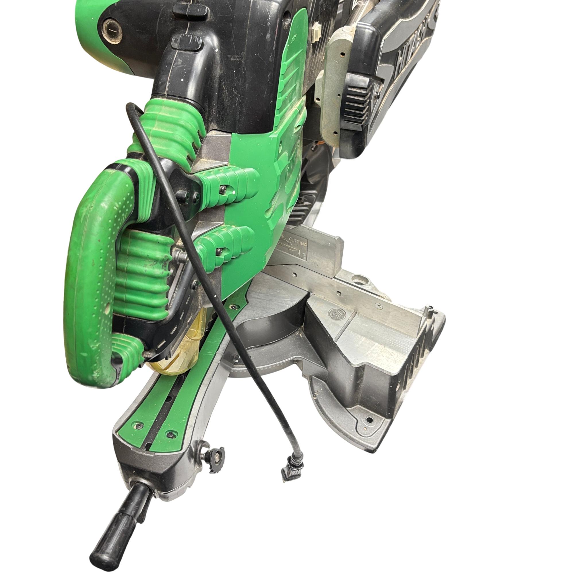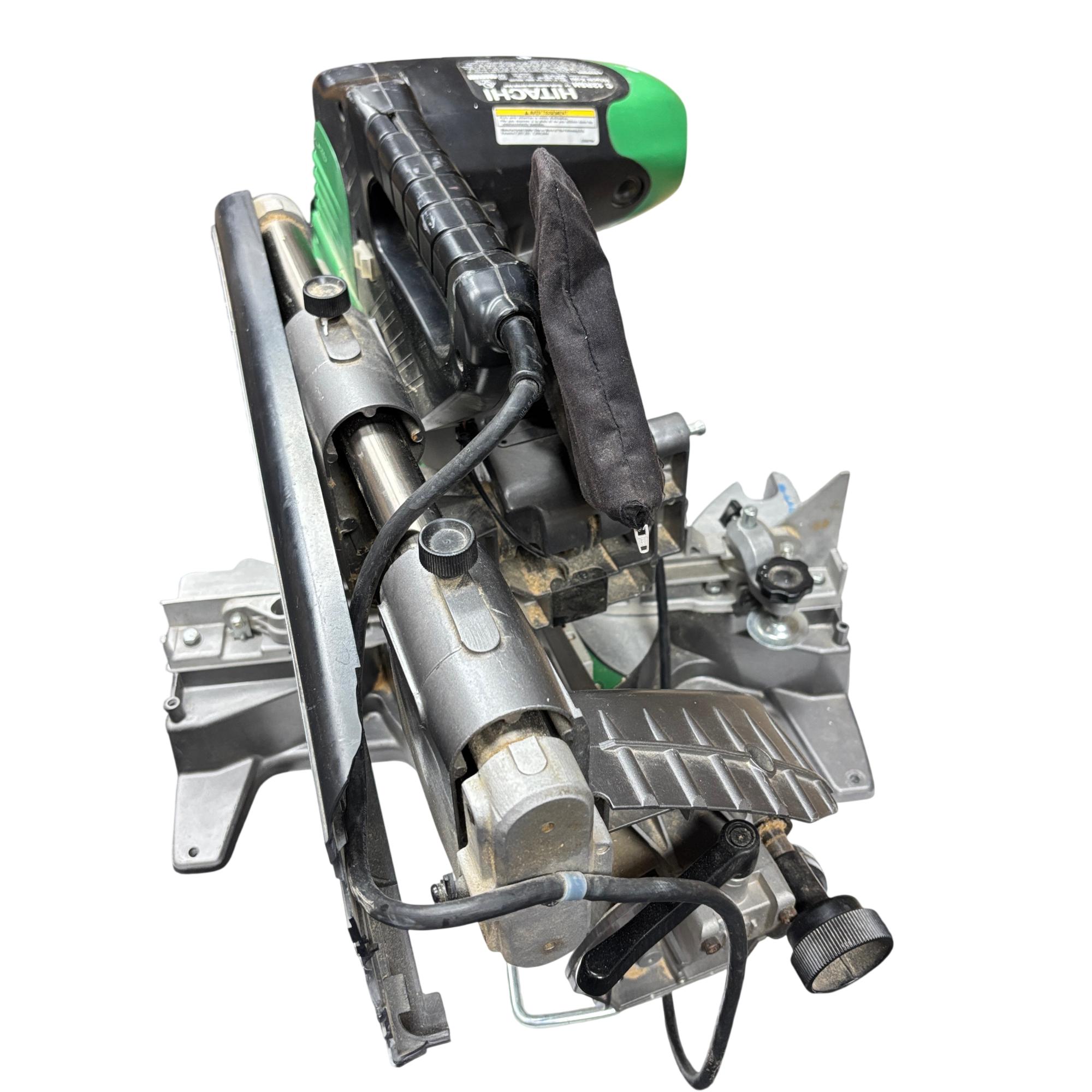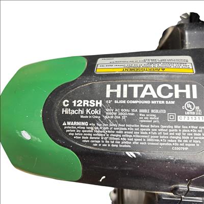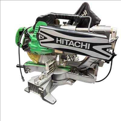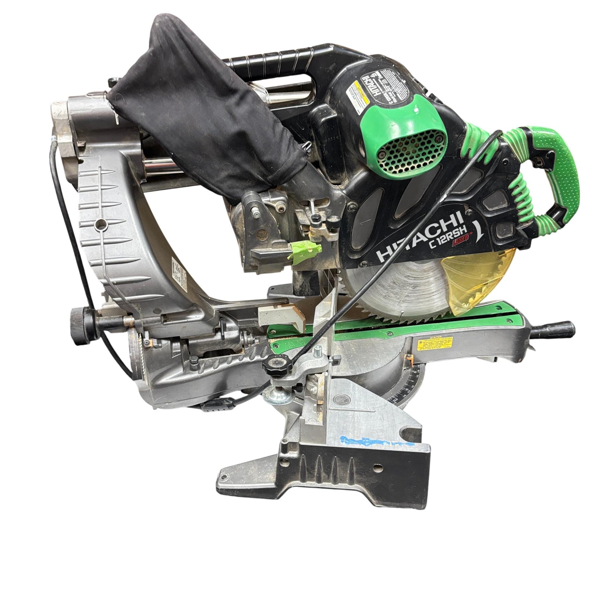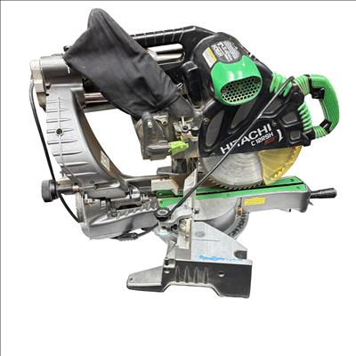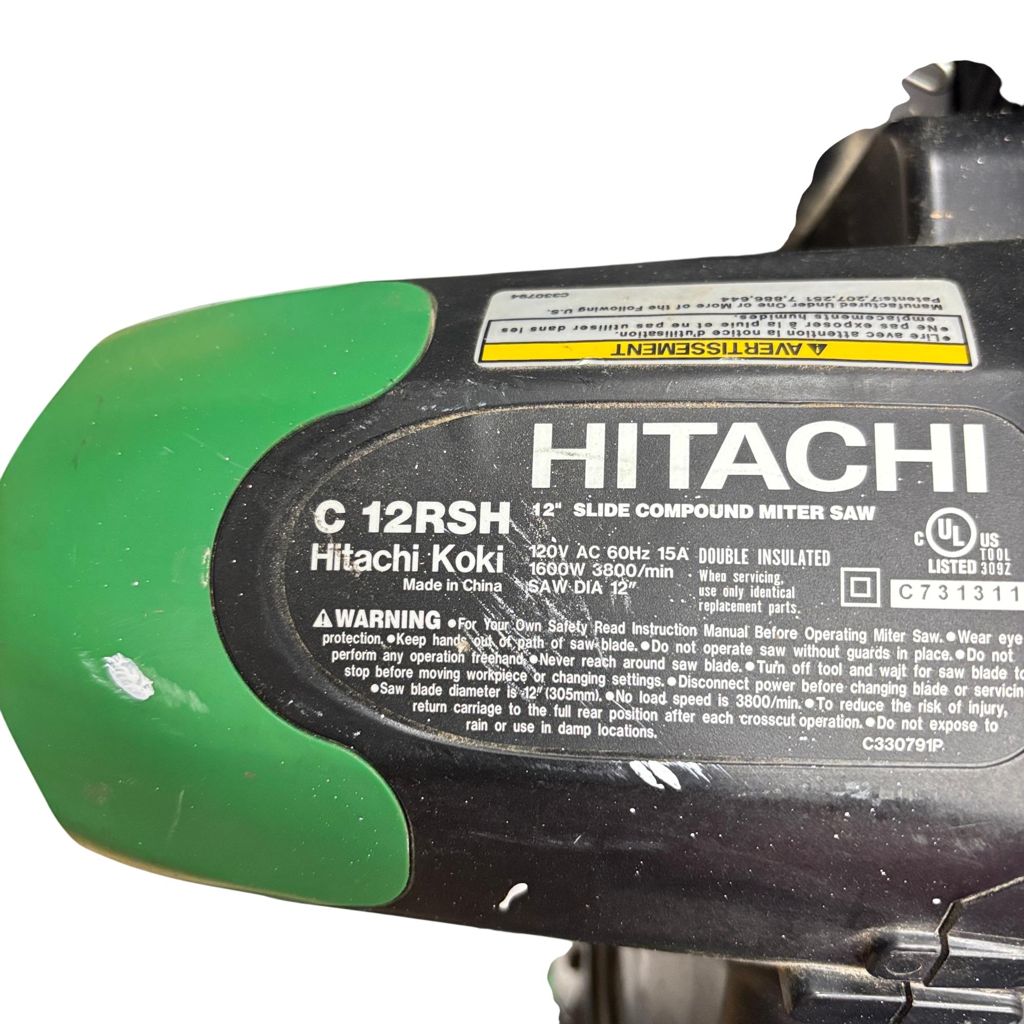 This Hitachi C12RSH 12" Sliding Compound Miter Saw features a powerful 1600W motor delivering 3800 RPM for precise and efficient cutting. This sliding compound miter saw includes a 12-inch blade diameter and is designed for accurate angled cuts with smooth sliding action, making it ideal for woodworking and professional projects.