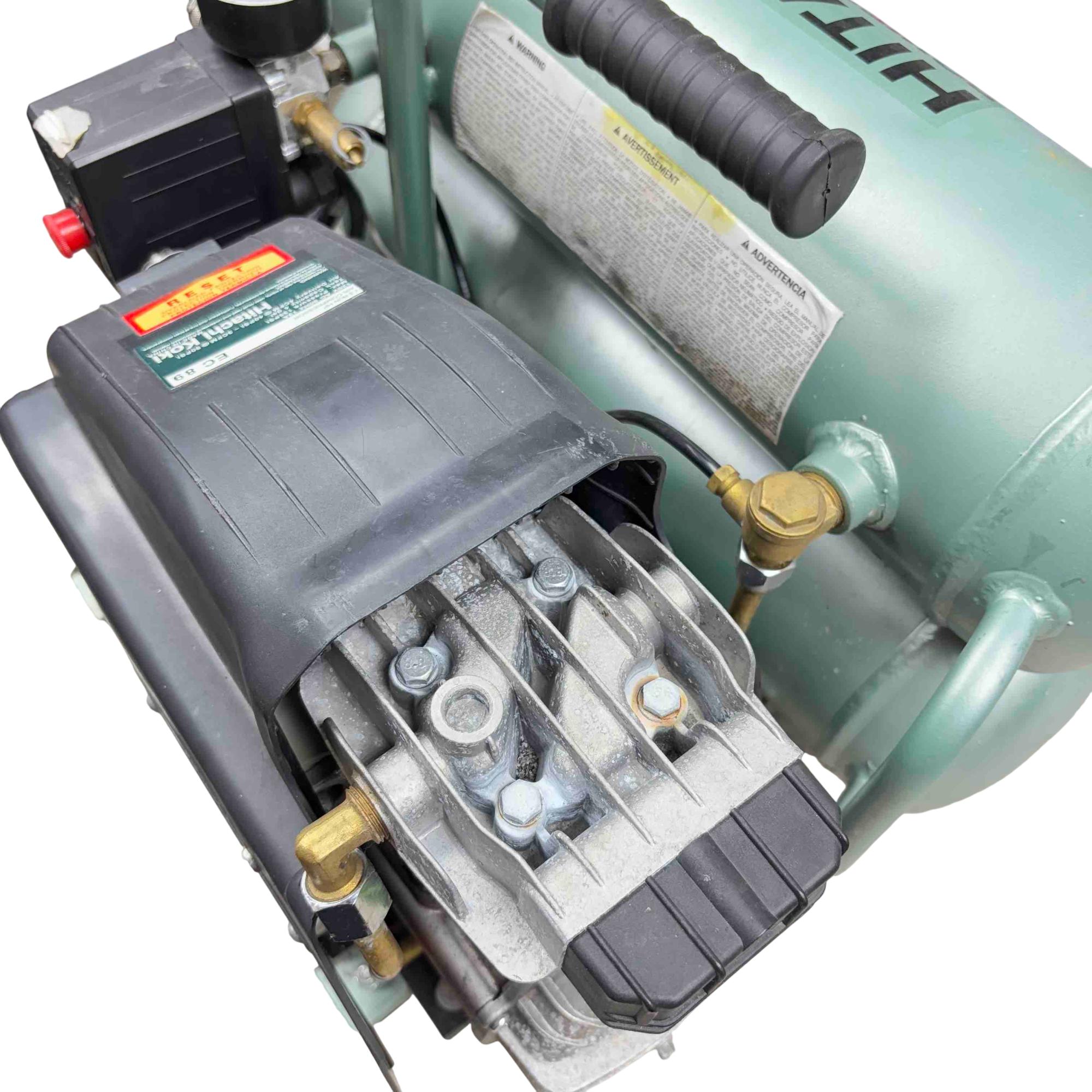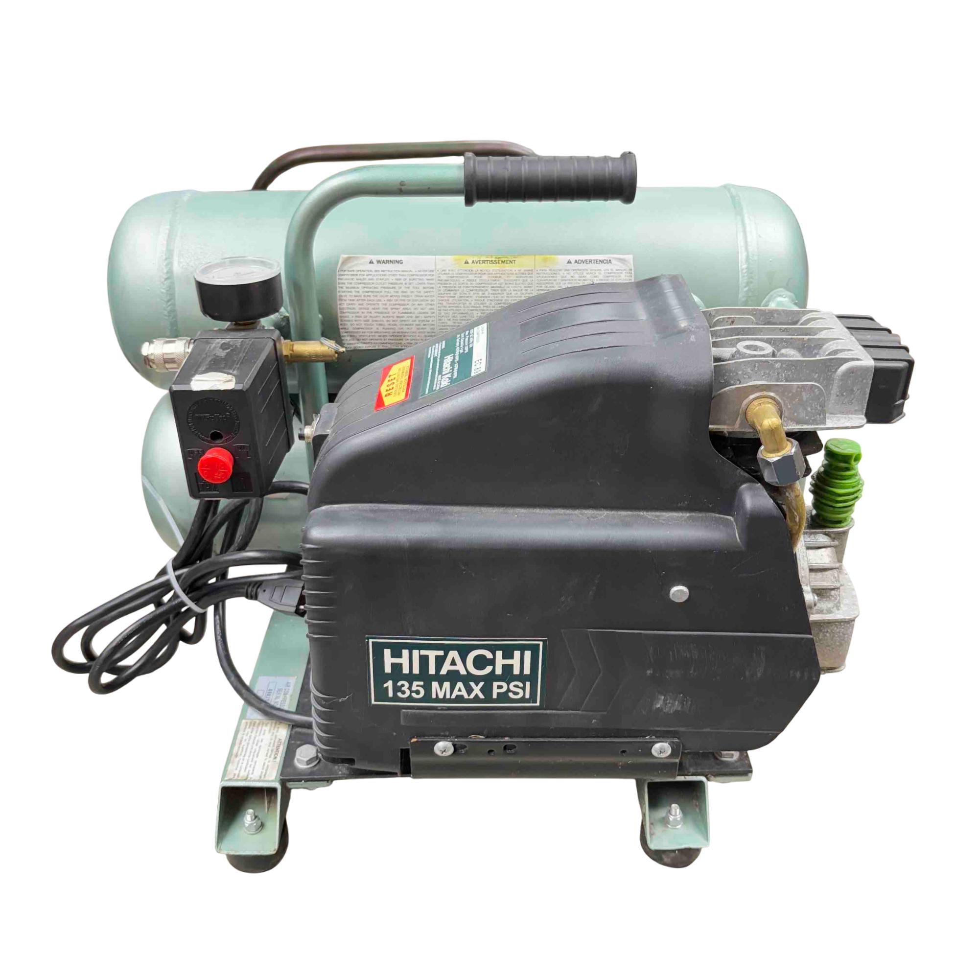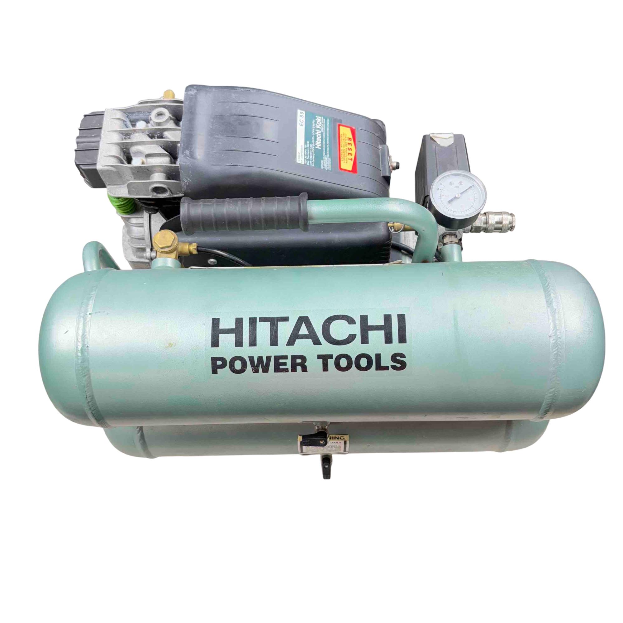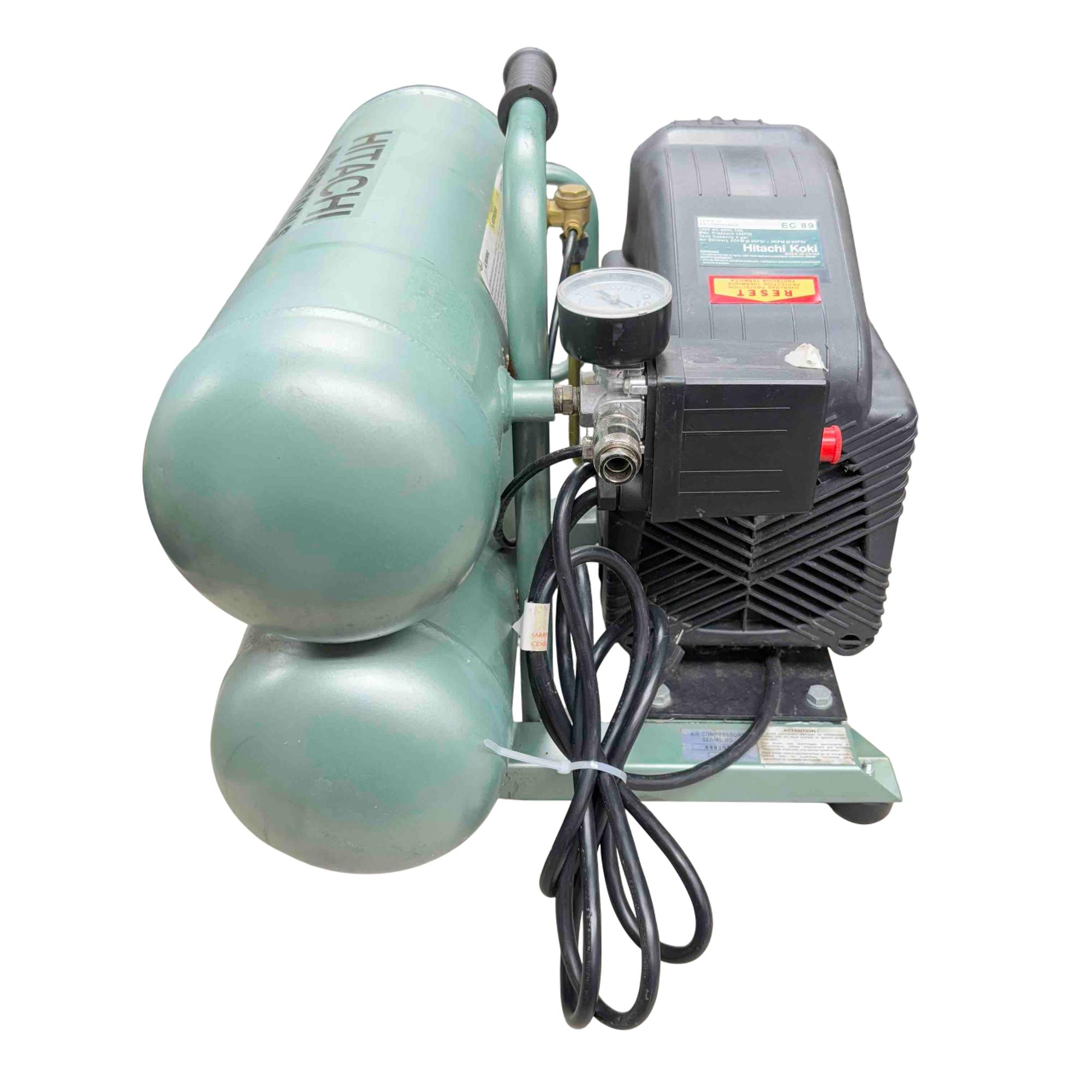 Power up your tools with the Hitachi EC89 Air Compressor! This high-performance machine boasts a maximum pressure of 135 PSI, making it perfect for all your pneumatic needs. Designed with a dual tank and a convenient black handle, it offers both power and portability for any job site.