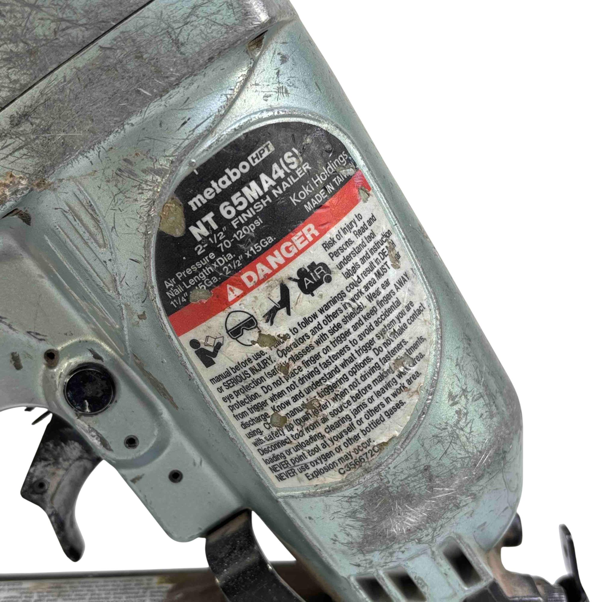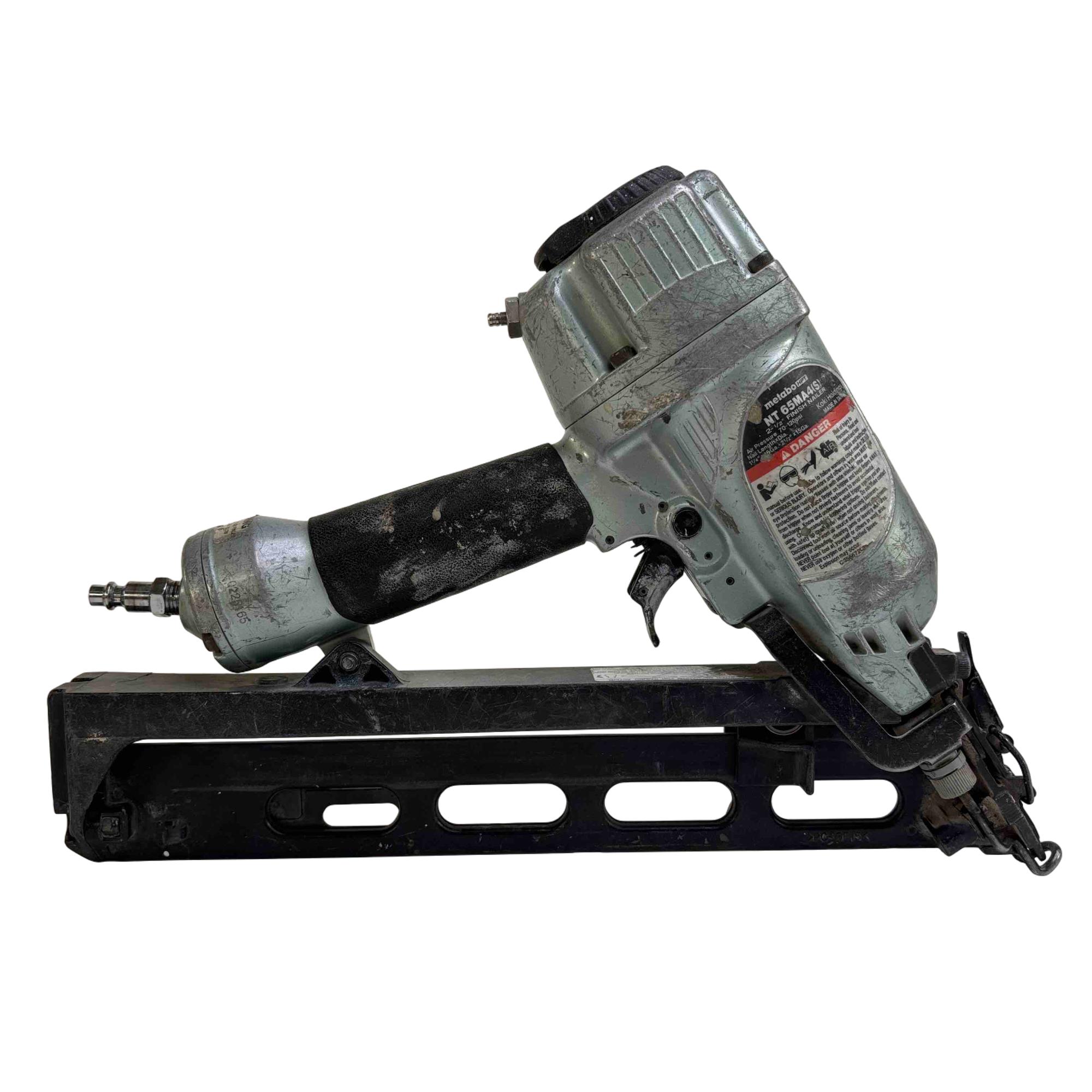15-gauge angled finish nailer features a new, non-slip elastomer grip trigger and ergonomically designed simple flip actuation switch. It is the ideal nailer for installing crown and base moldings, window and door casings, chair rails, cabinets, exterior trim and staircases. The compact body and angled magazine make for easier placement and operation in tight angles. The integrated air duster clears debris from the work site allowing for faster and cleaner job completion. The NT65MA4(S) accepts 15-gauge nails from 1-1/4" up to 2-1/2" in length.