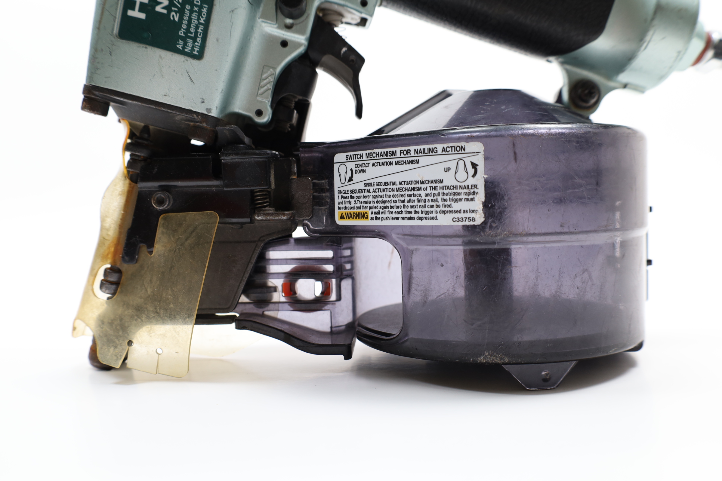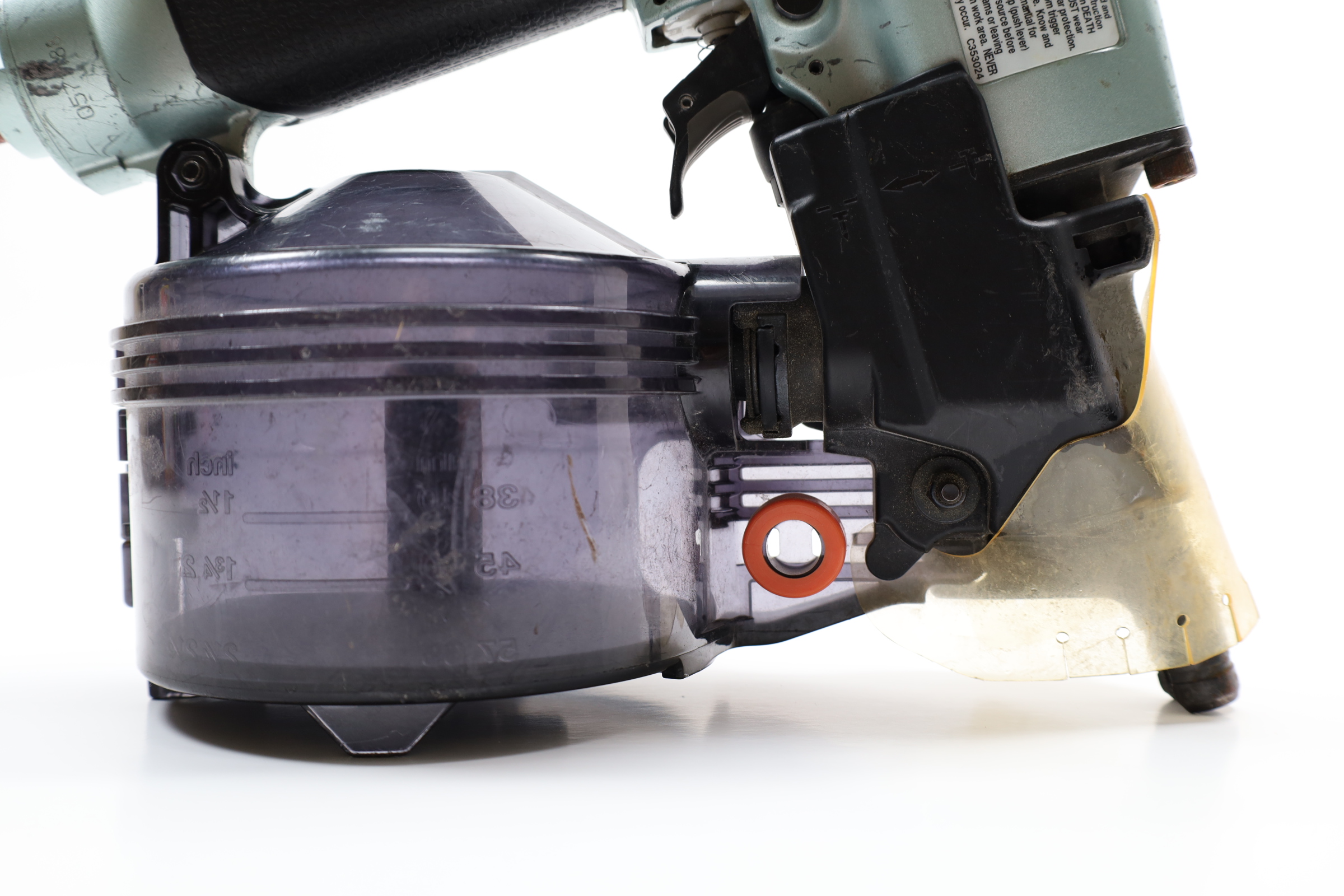 A powerful and efficient coil siding nailer, capable of driving nails as large as 2-1/2" x .099" at a rate of 3 per second. It offers a blend of power, precision, and convenience with features such as a selective actuation switch for sequential or contact nailing, a side-load tilt-bottom magazine for quick reloads, and a tool-less depth of drive adjustment. Weighing just 4.8lbs, it's lightweight and compact for easy maneuverability. The nailer can handle both wire and plastic sheet collated nails, and it includes an adjustable air deflector, a no-mar nose cap attachment, a plastic shield for safety, and a long-lasting rubber grip for comfort.