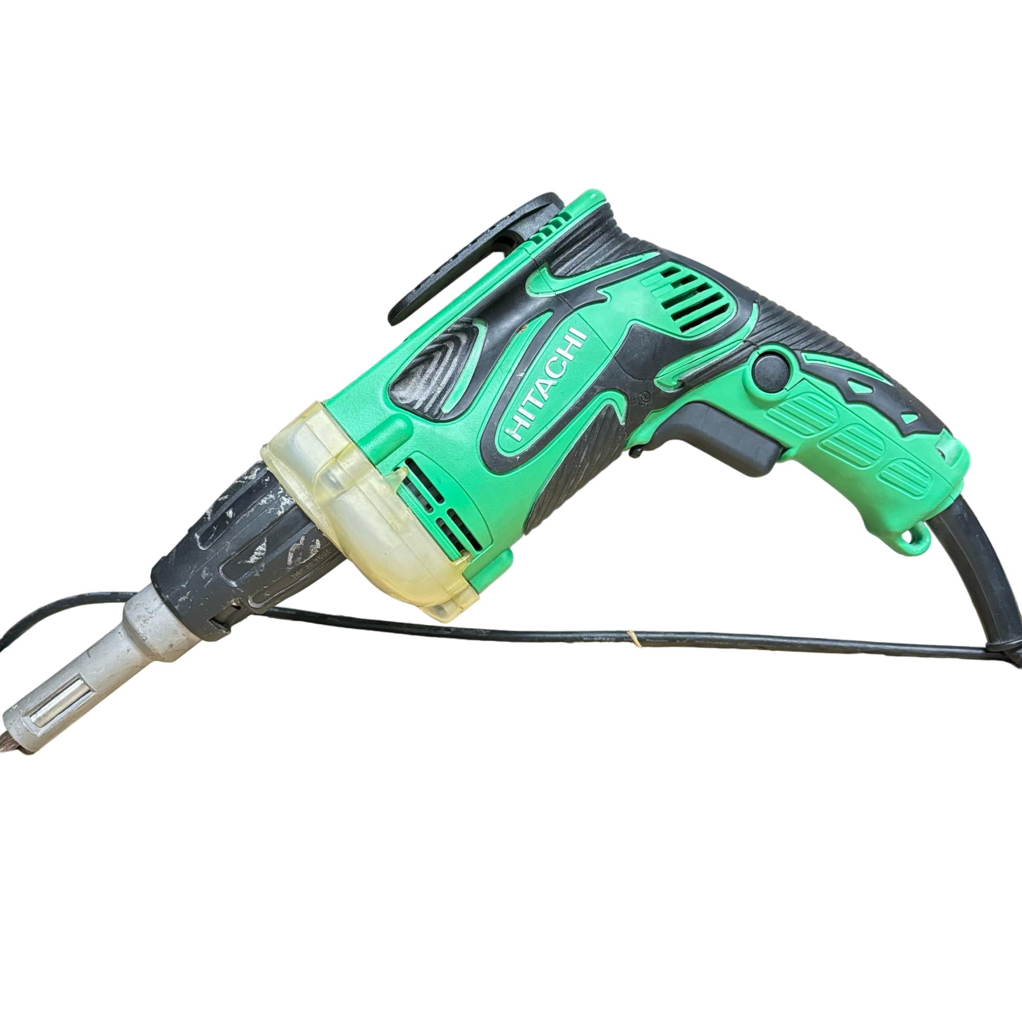Upgrade your toolkit with the Hitachi W6V4 Corded Drywall Screwdriver. This powerful and reliable tool boasts a 120V, 6.6A motor delivering up to 750W of power, perfect for effortless drywall installation. Its durable green and black design not only ensures longevity but also adds a touch of style to your collection. Ideal for both seasoned professionals and DIY enthusiasts looking for precision and efficiency.