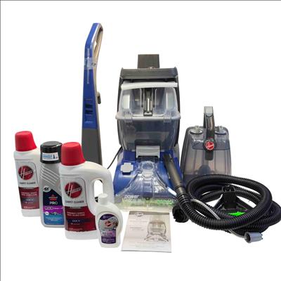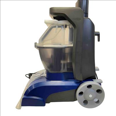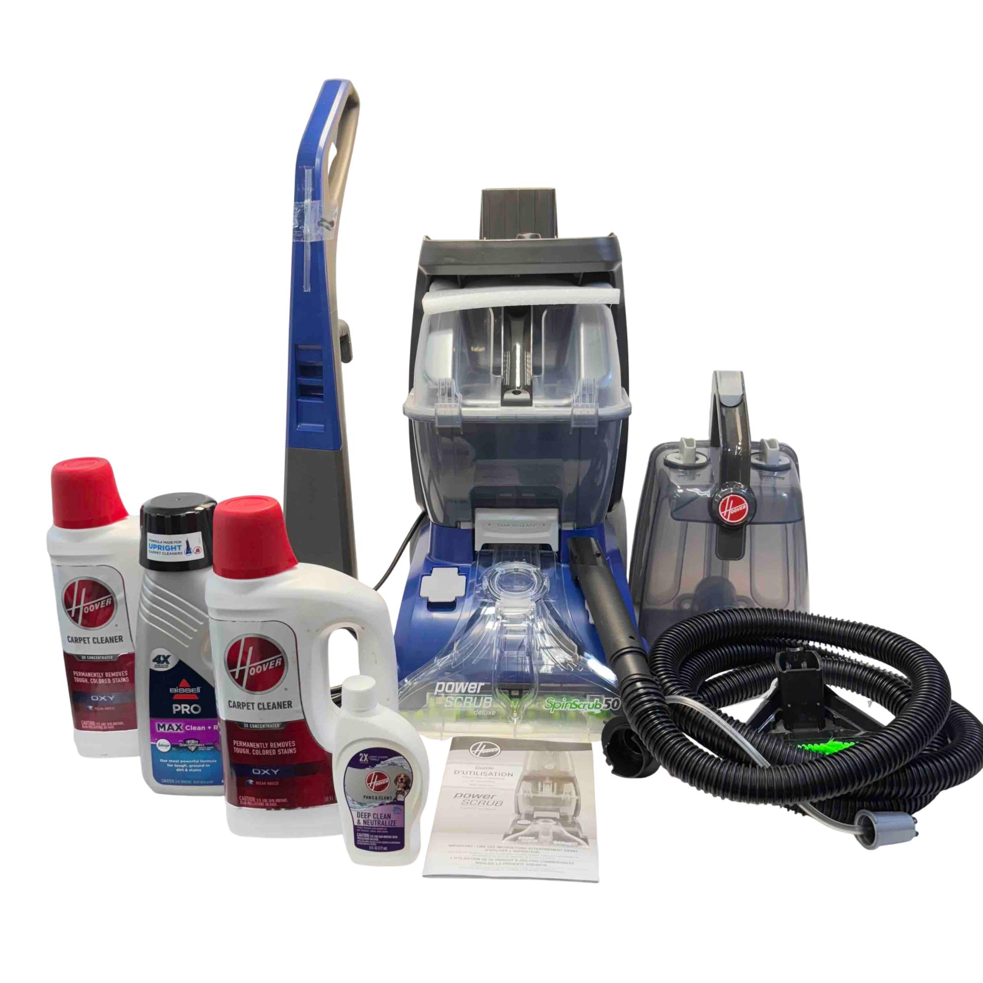 The Hoover Power Scrub Deluxe Carpet Cleaner Machine features advanced SpinScrub technology designed to deeply clean carpets and tough colored stains. This upright carpet cleaner utilizes dual-tank technology to separate clean and dirty water, ensuring efficient scrubbing and rinsing on various surfaces while minimizing residue. Engineered for powerful and effective cleaning, it offers precise performance for maintaining carpet freshness and hygiene.