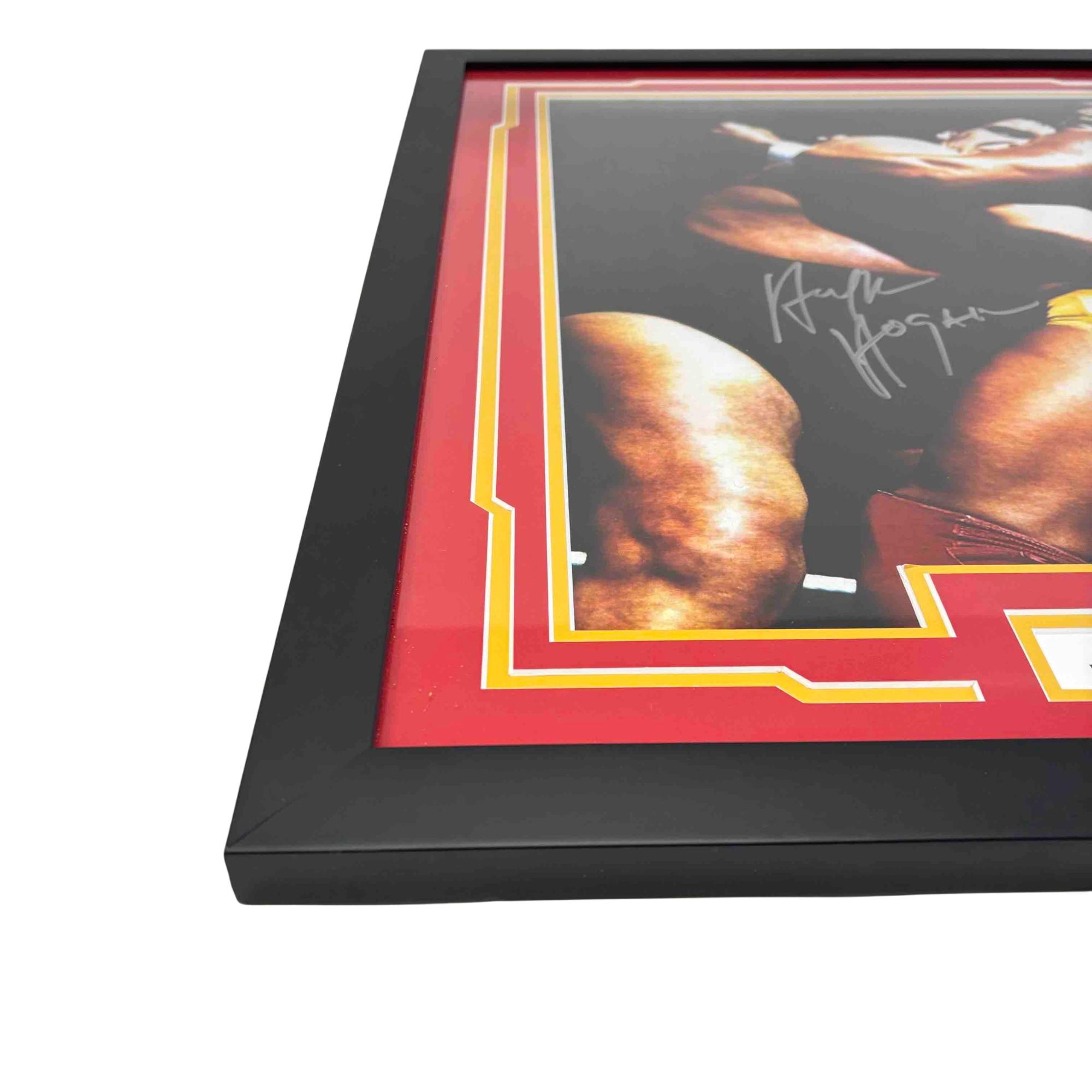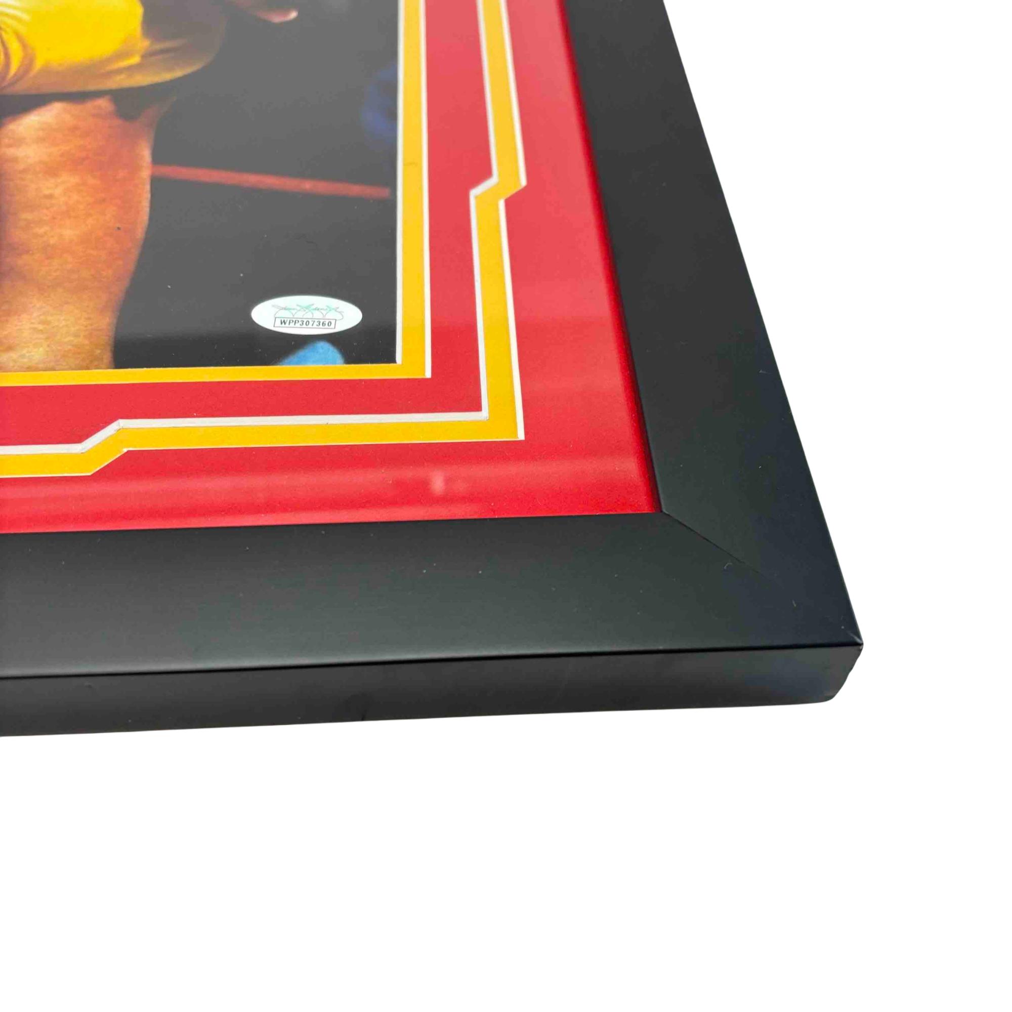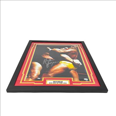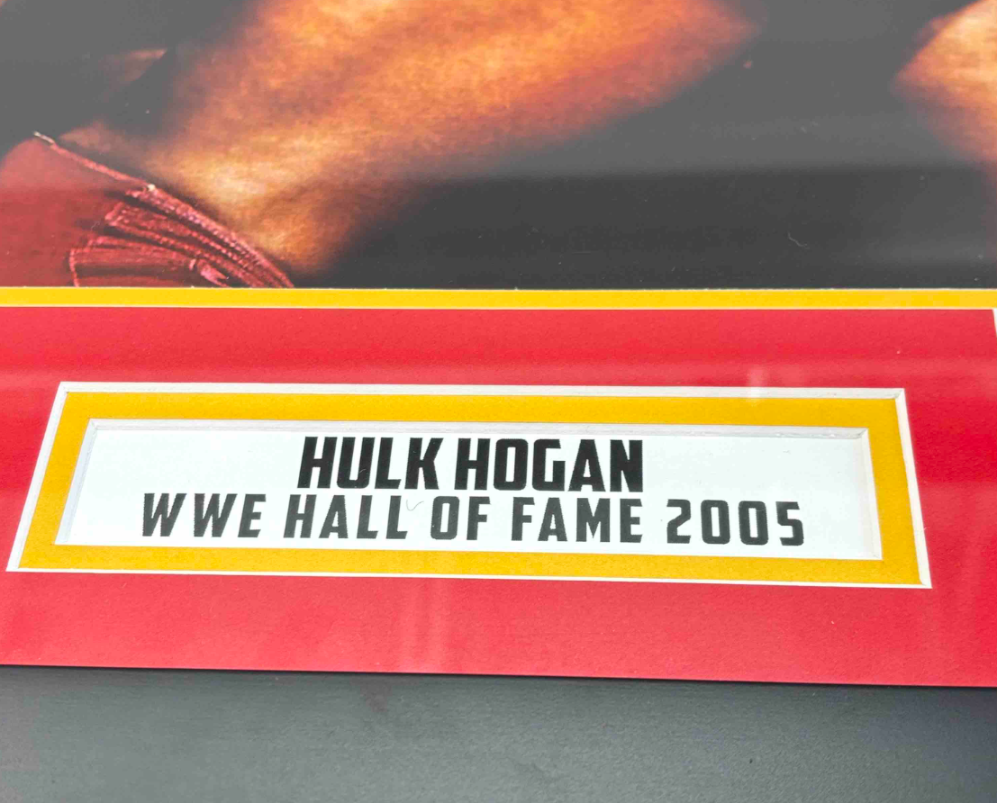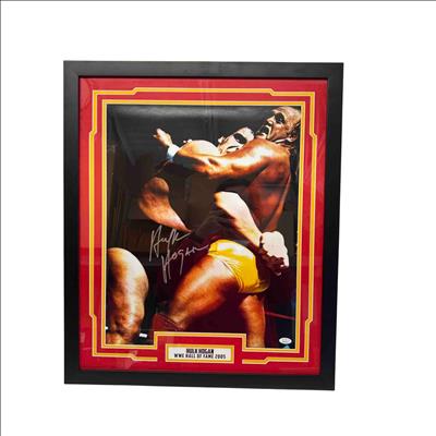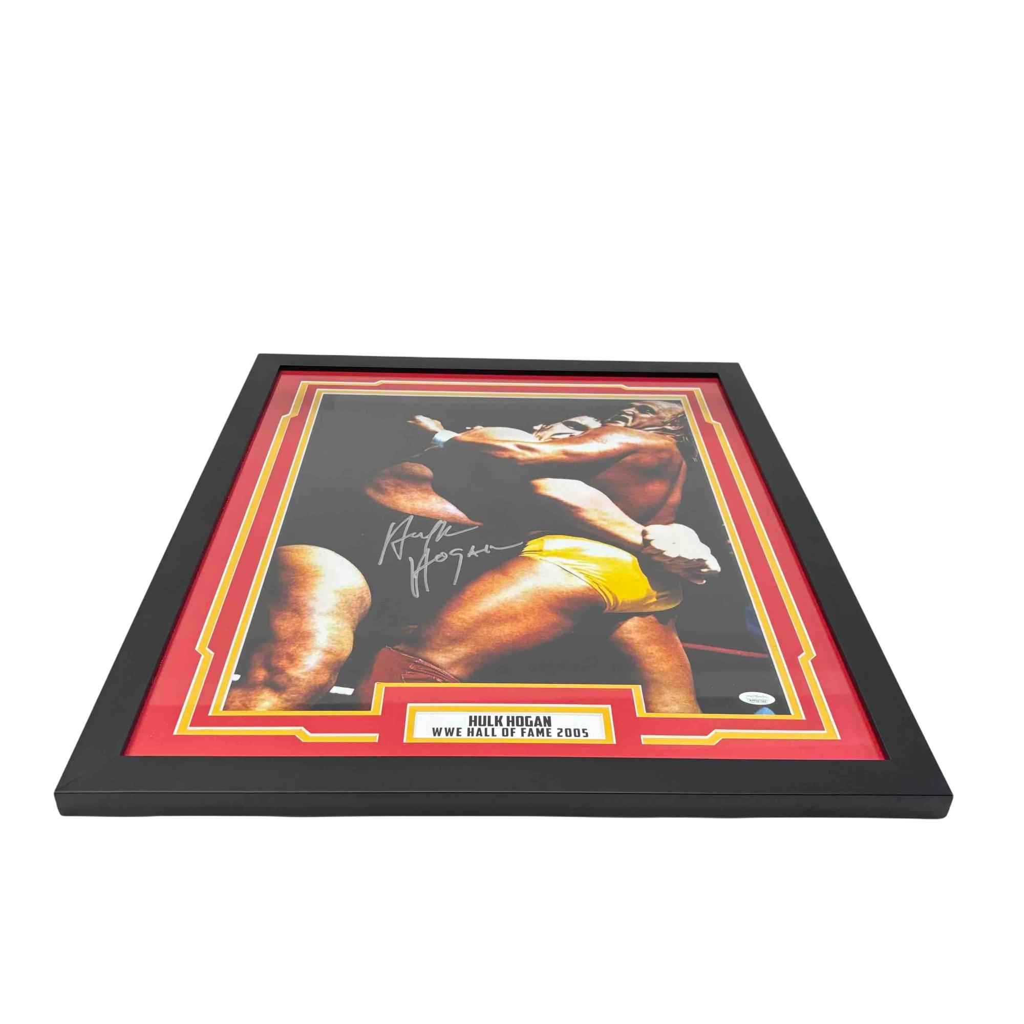 Own a piece of wrestling history with this autographed and framed 16x20 photo featuring legendary WWE Hall of Famer Hulk Hogan in an iconic wrestling moment. JSA certified for authenticity, this collectible features Hulk Hogans signature and honors his Hall of Fame induction in 2005, making it a must-have for any true wrestling fan or memorabilia collector.