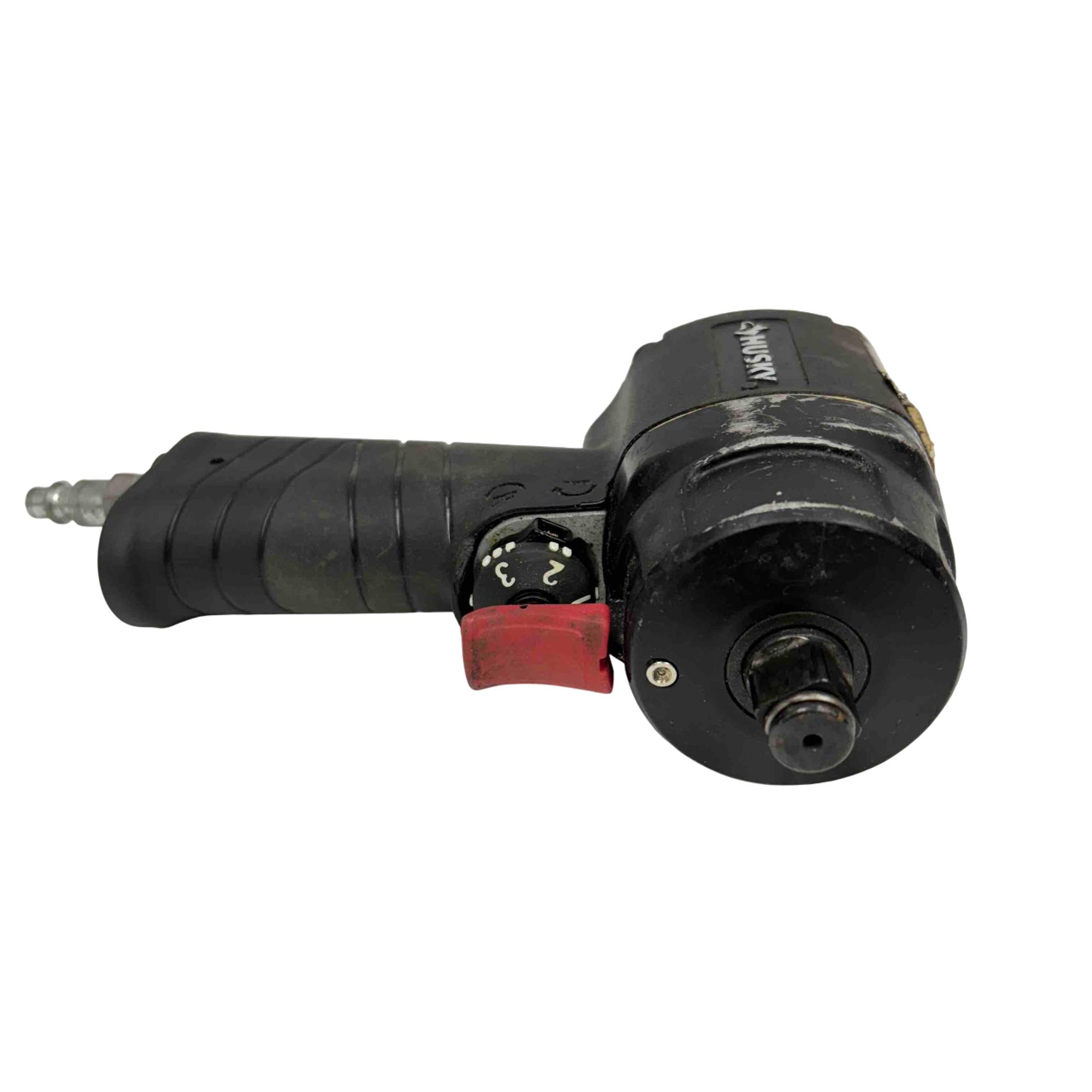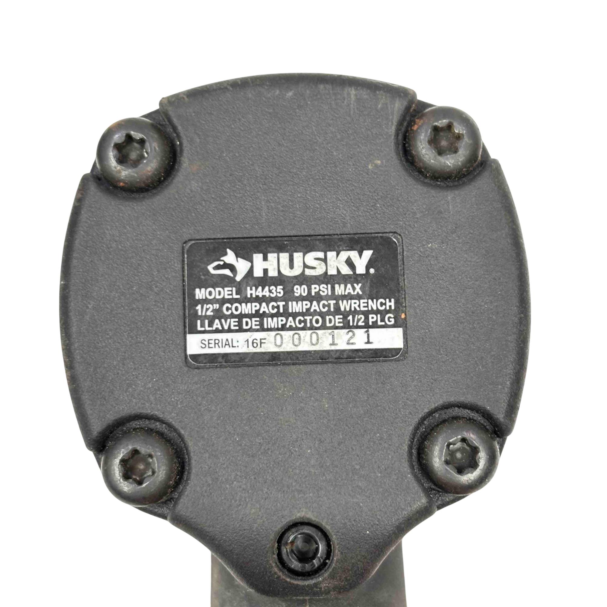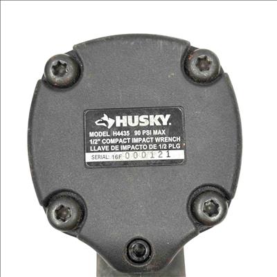 The Husky 1/2" Compact Impact Wrench Air Tool is a durable, professional-grade pneumatic tool designed for high-torque fastening and loosening. Featuring a compact design and ergonomic black and red handle, it is ideal for construction, automotive, and heavy-duty applications requiring reliable performance and impact power.