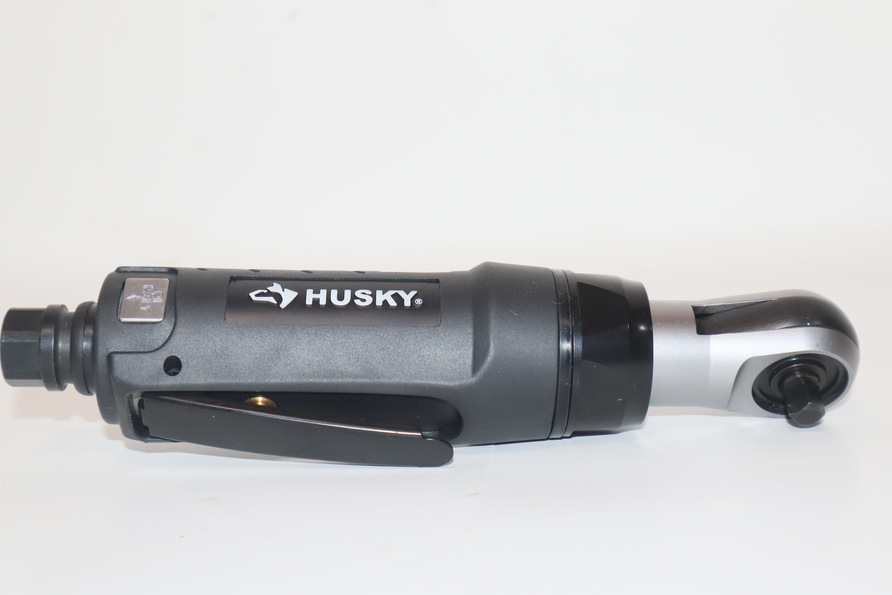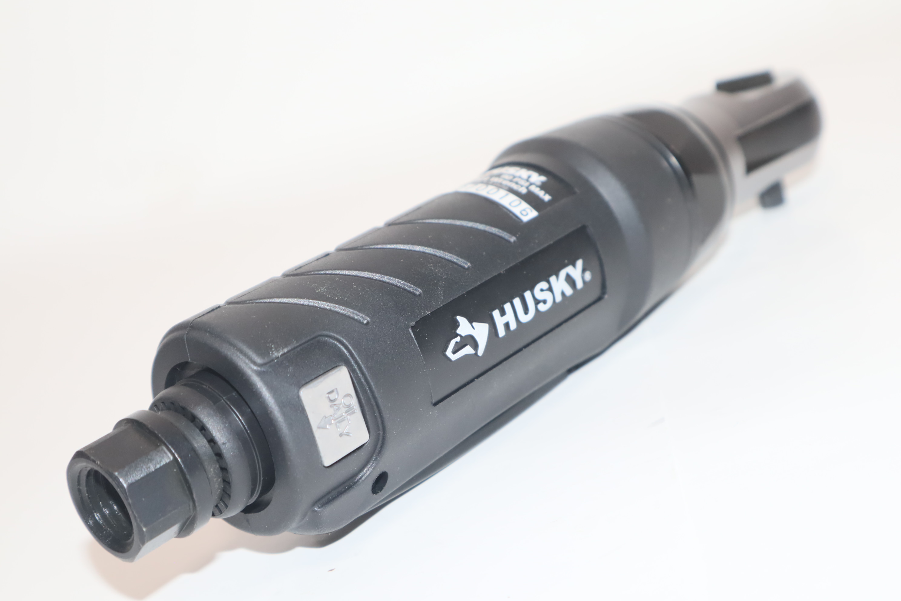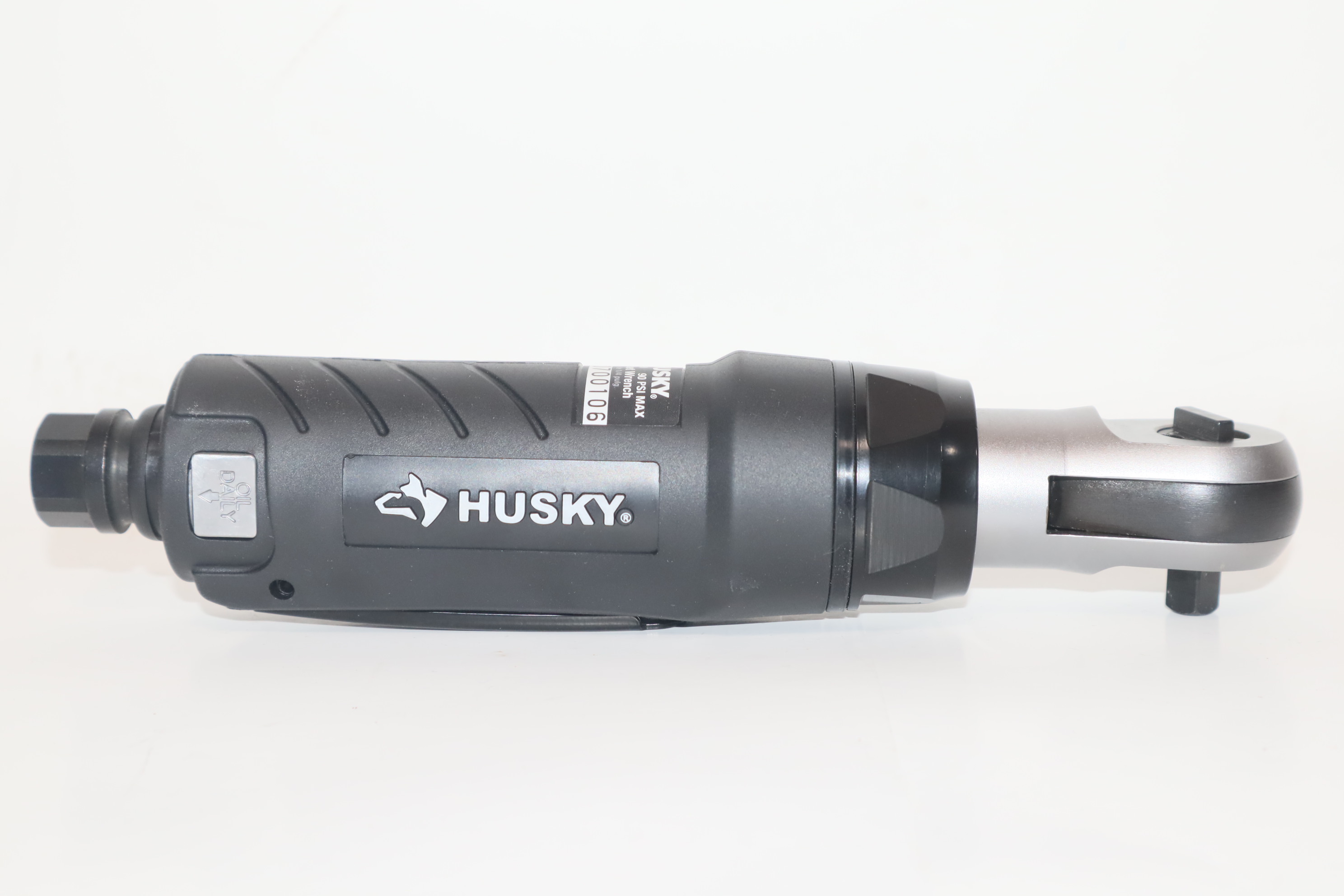 The new Husky air tool line is built to industrial standards for the professional user providing more power, less noise and longer life. This new Husky 1/4 in. Ratchet features low weight housing with composite over mold. The tools compact design and 30 ft. lb. of torque provides plenty of torque for those smaller, tough to get to fasteners. Internal silencing greatly reduces tool noise and the convenient forward/reverse switch in the ratchet-head for quick and easy directional changes. Designed for removing hard to get to fastener found in motorcycles, lawn equipment and car interiors under the dash.