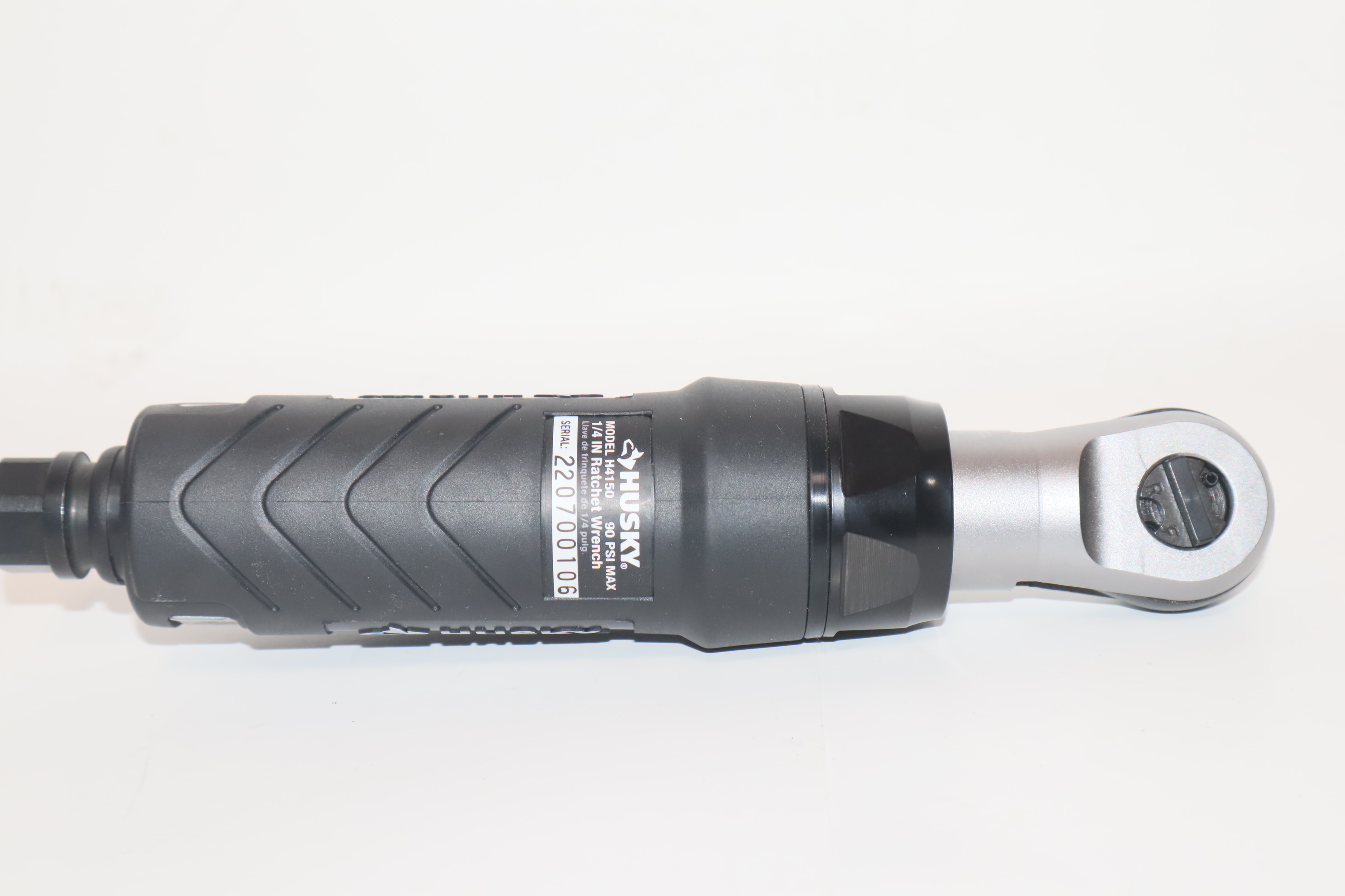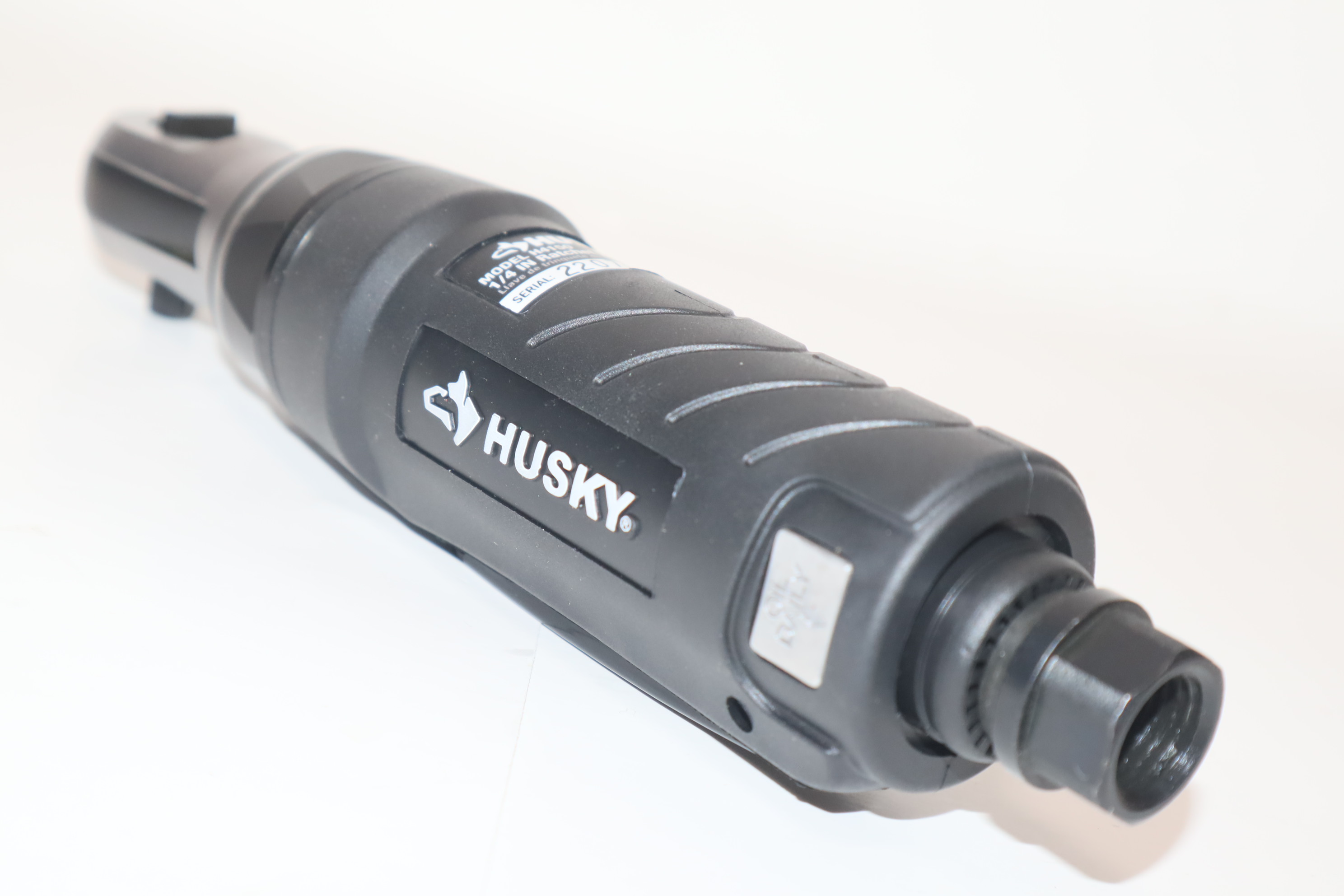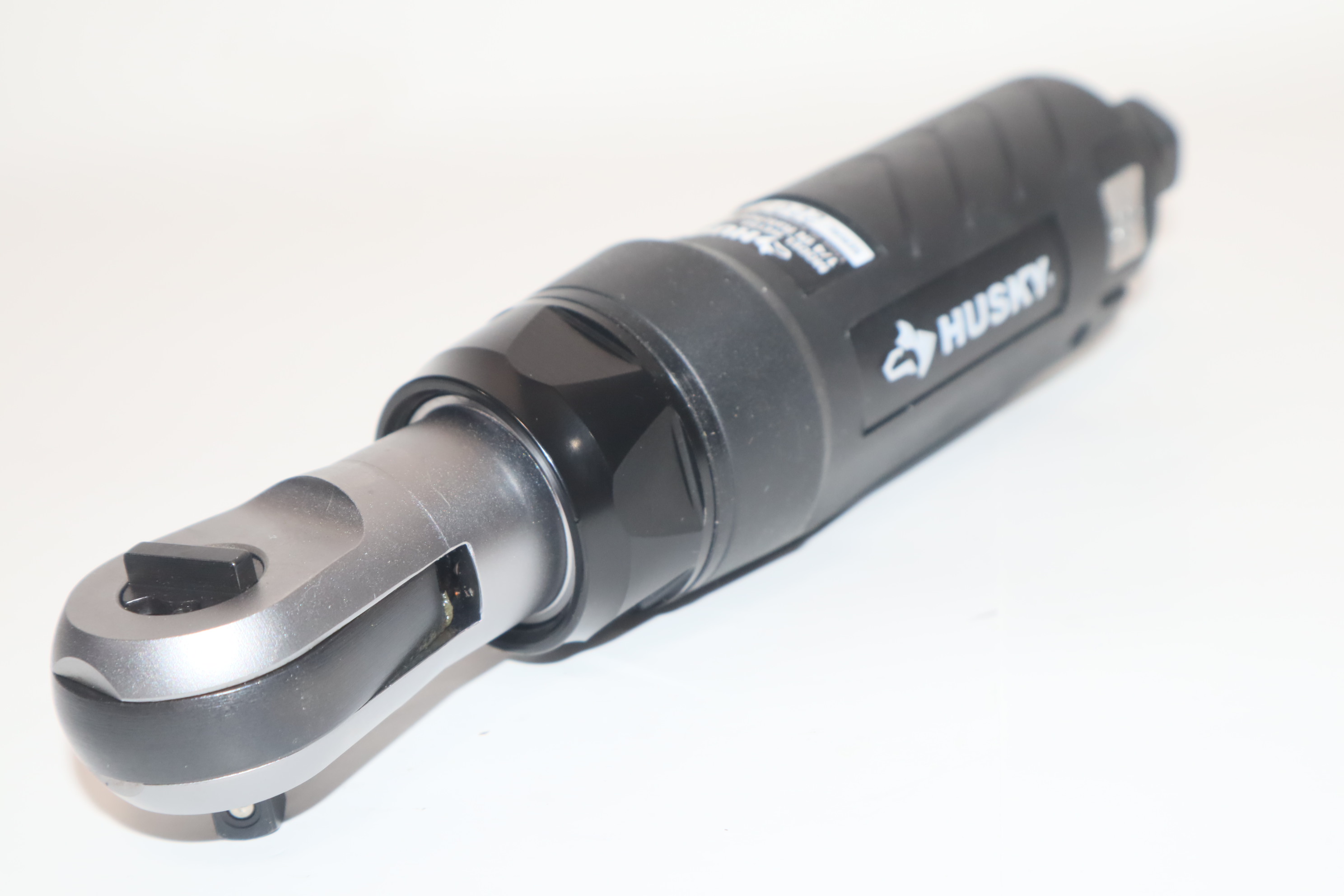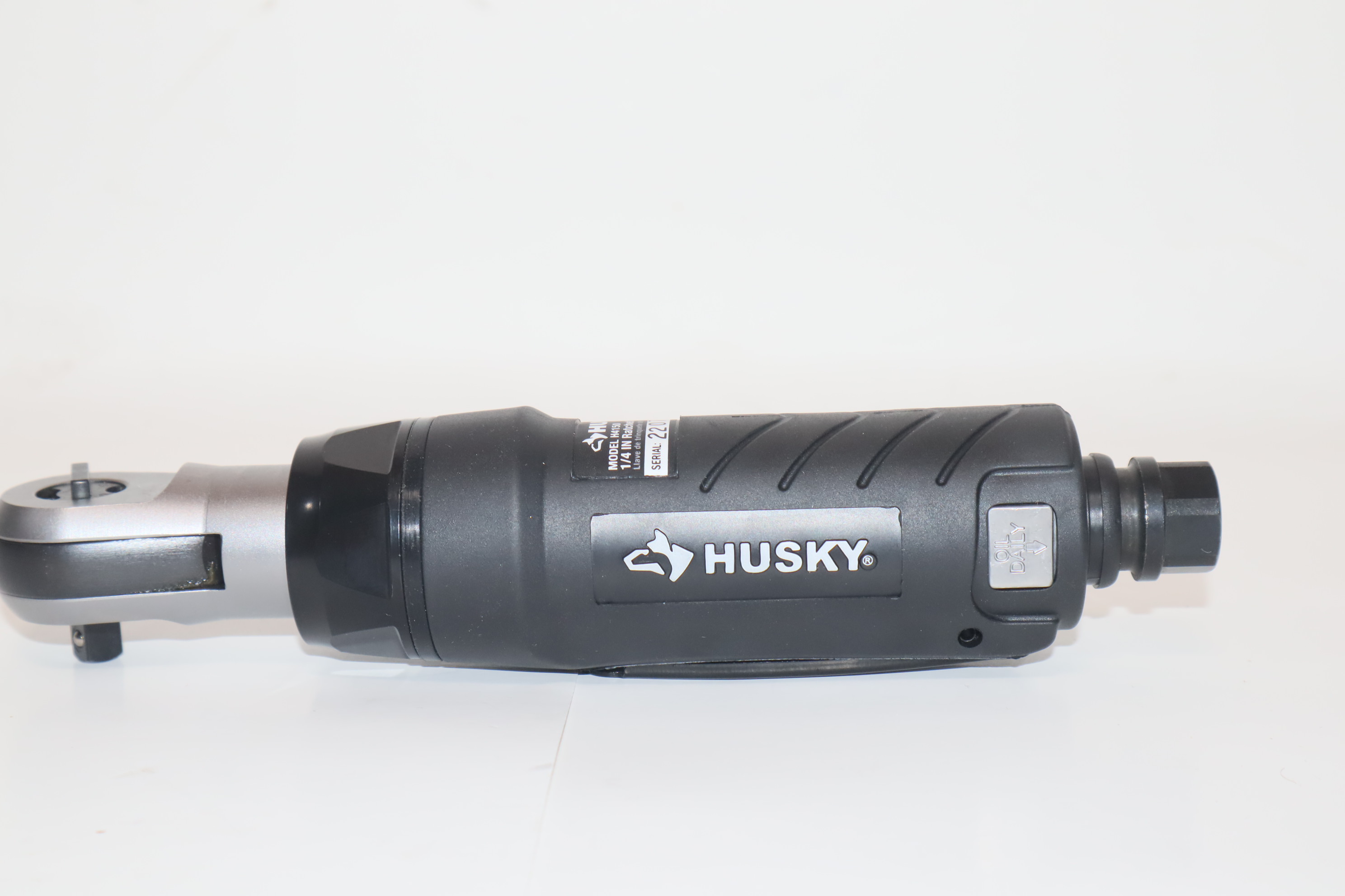 The new Husky air tool line is built to industrial standards for the professional user providing more power, less noise and longer life. This new Husky 1/4 in. Ratchet features low weight housing with composite over mold. The tools compact design and 30 ft. lb. of torque provides plenty of torque for those smaller, tough to get to fasteners. Internal silencing greatly reduces tool noise and the convenient forward/reverse switch in the ratchet-head for quick and easy directional changes. Designed for removing hard to get to fastener found in motorcycles, lawn equipment and car interiors under the dash.