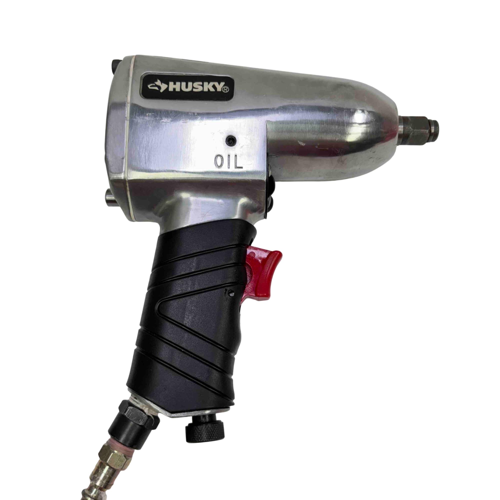 Boost your toolkit with the reliable Husky H4430 1/2" Air Impact Wrench. This pneumatic tool boasts a robust silver and black design, offering exceptional performance for various heavy-duty applications. Its ergonomic build ensures comfort and precision, making it a must-have for both professionals and DIY enthusiasts.