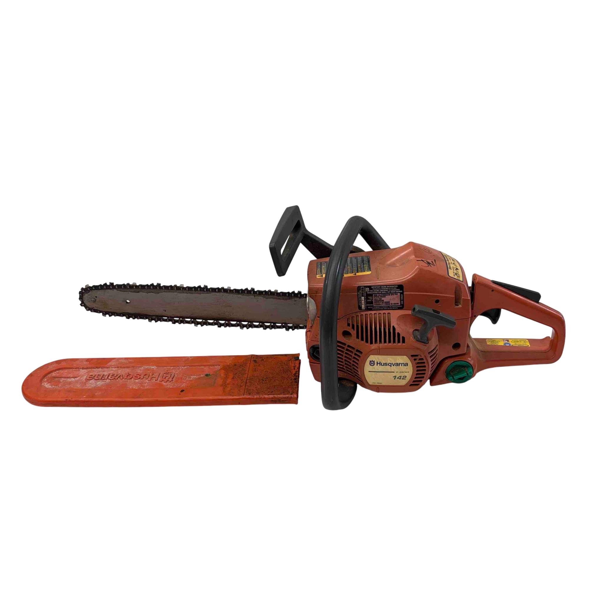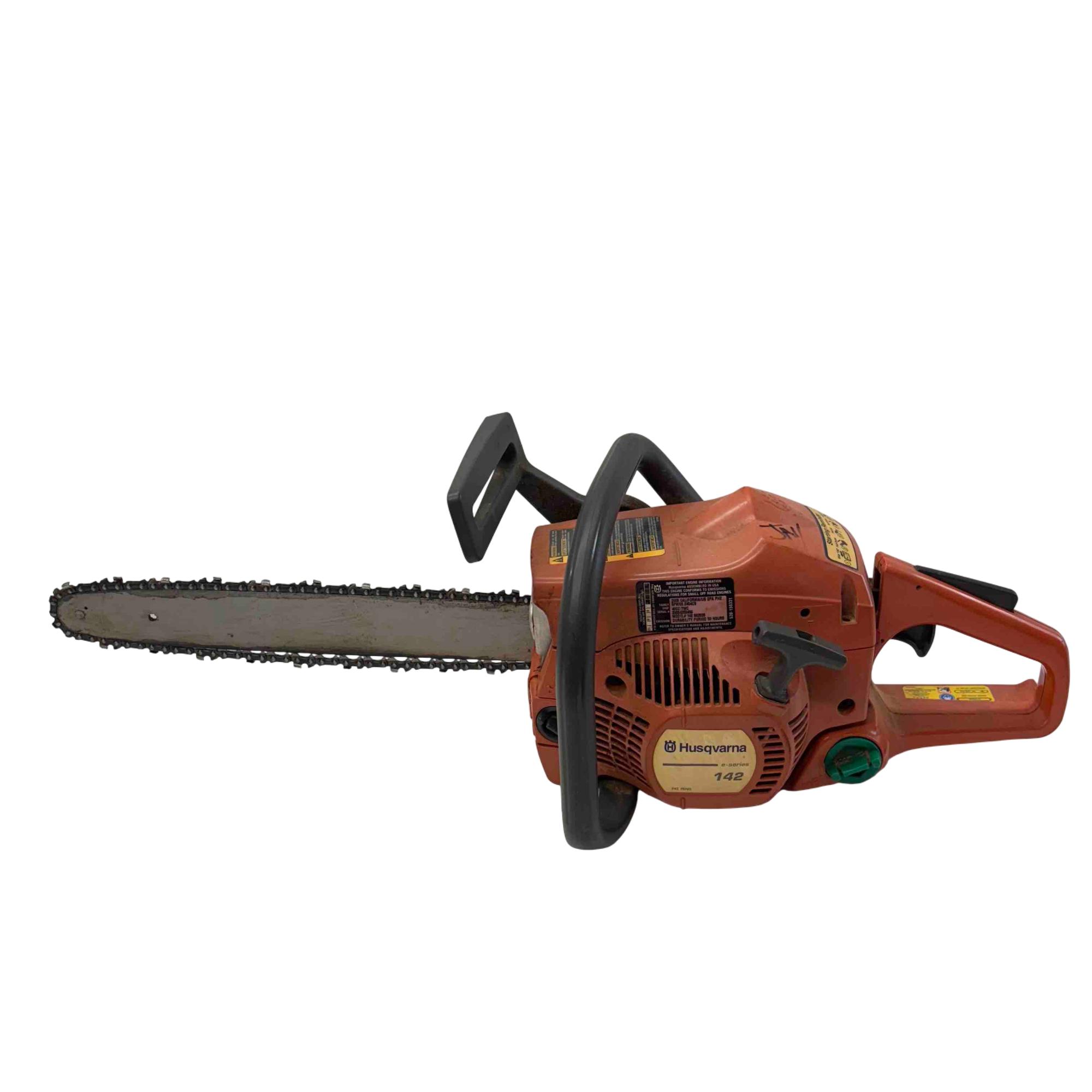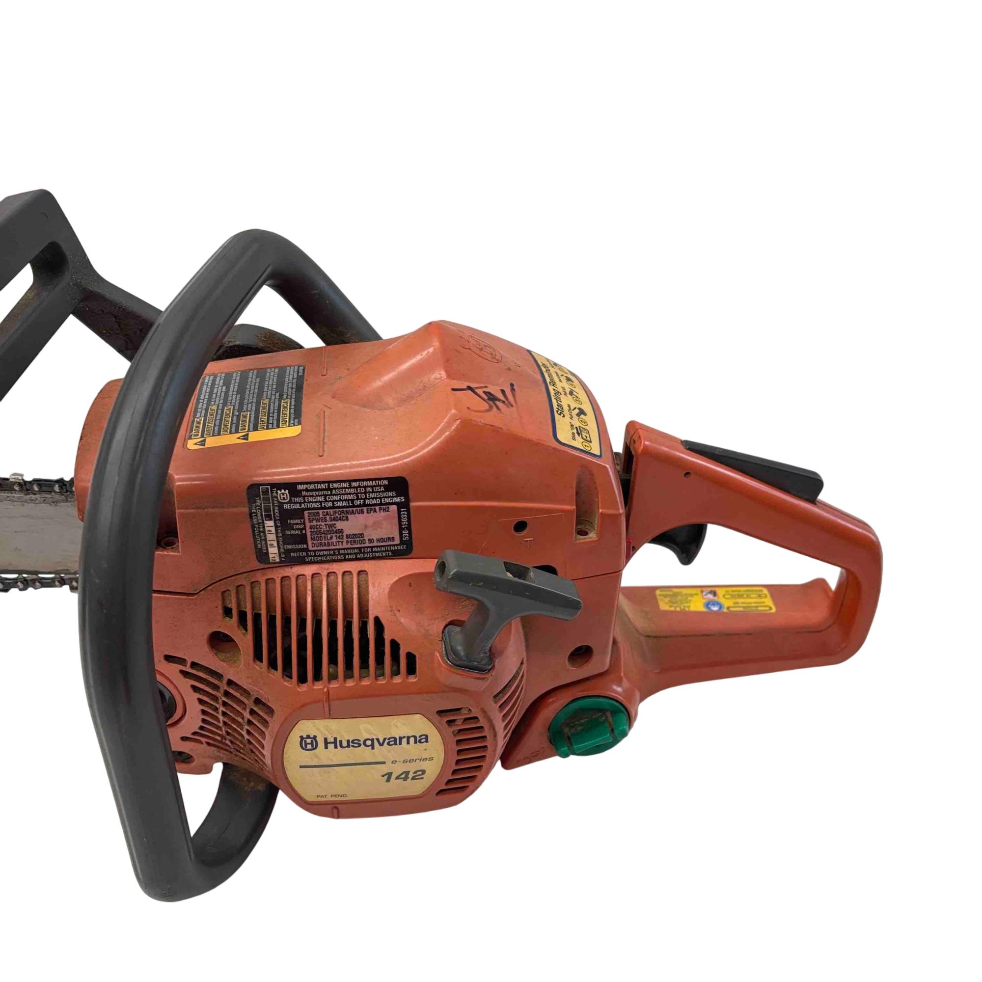 Experience reliable cutting power with the Husqvarna e-series 142 chainsaw, a robust 40cc gas-powered tool designed for homeowners and professionals alike. With its iconic orange design, ergonomic black handle for control, and durable metal chain blade, this chainsaw is perfect for tough wood-cutting and outdoor projects. Trust in Husqvarnas renowned performance and safety features for efficient results every time.