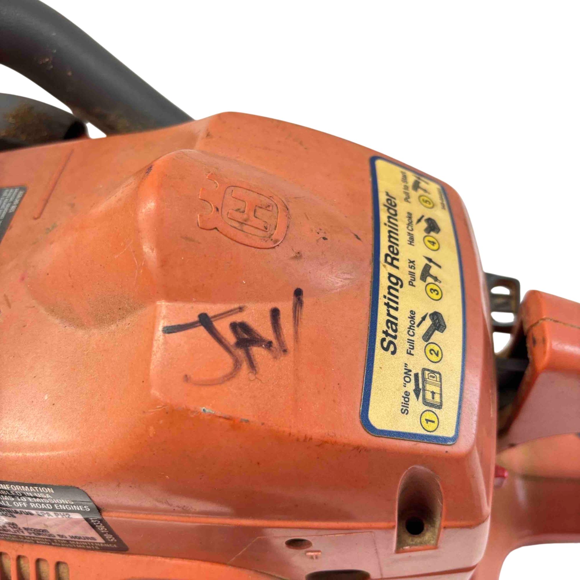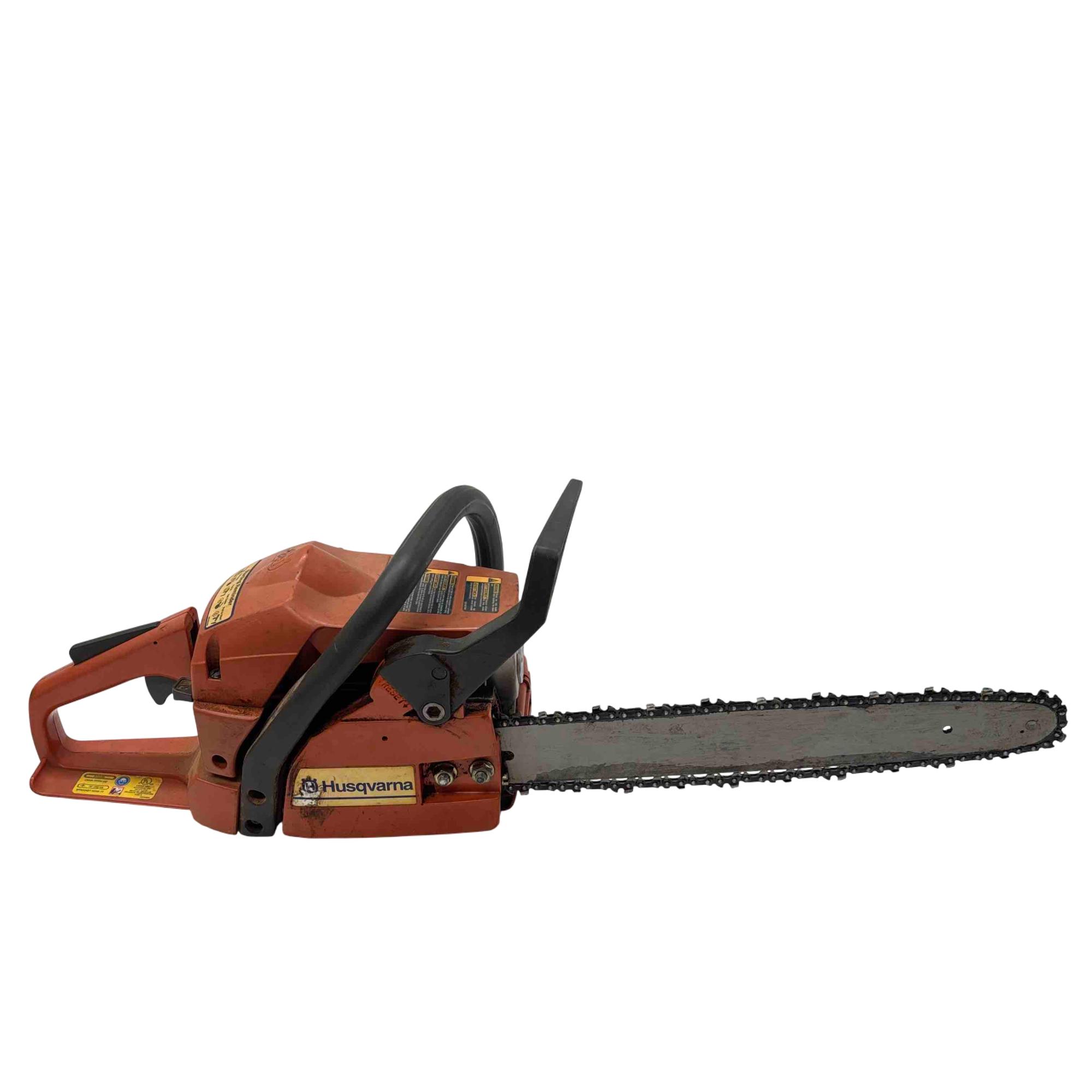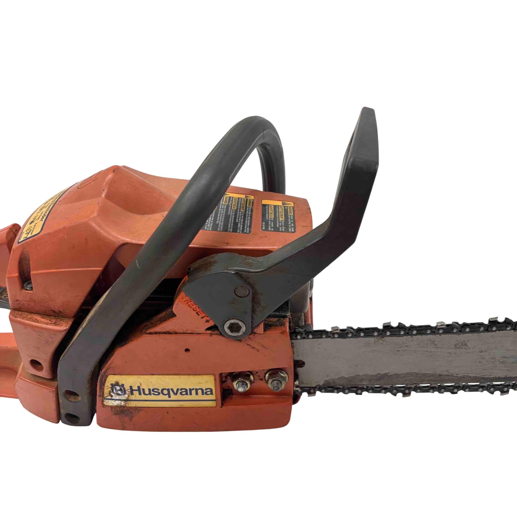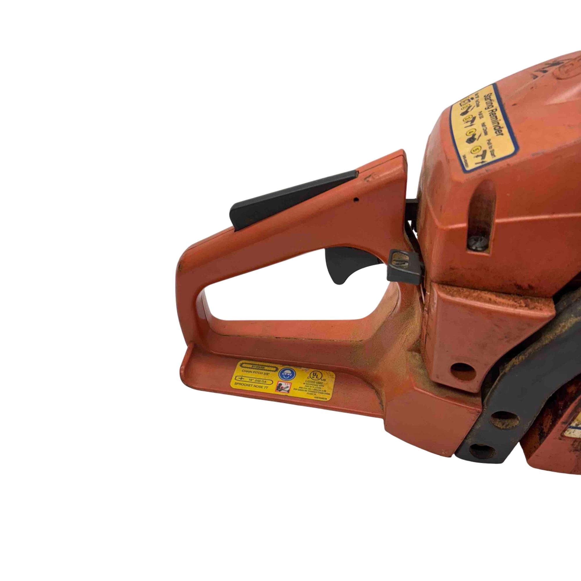 Experience reliable cutting power with the Husqvarna e-series 142 chainsaw, a robust 40cc gas-powered tool designed for homeowners and professionals alike. With its iconic orange design, ergonomic black handle for control, and durable metal chain blade, this chainsaw is perfect for tough wood-cutting and outdoor projects. Trust in Husqvarnas renowned performance and safety features for efficient results every time.
