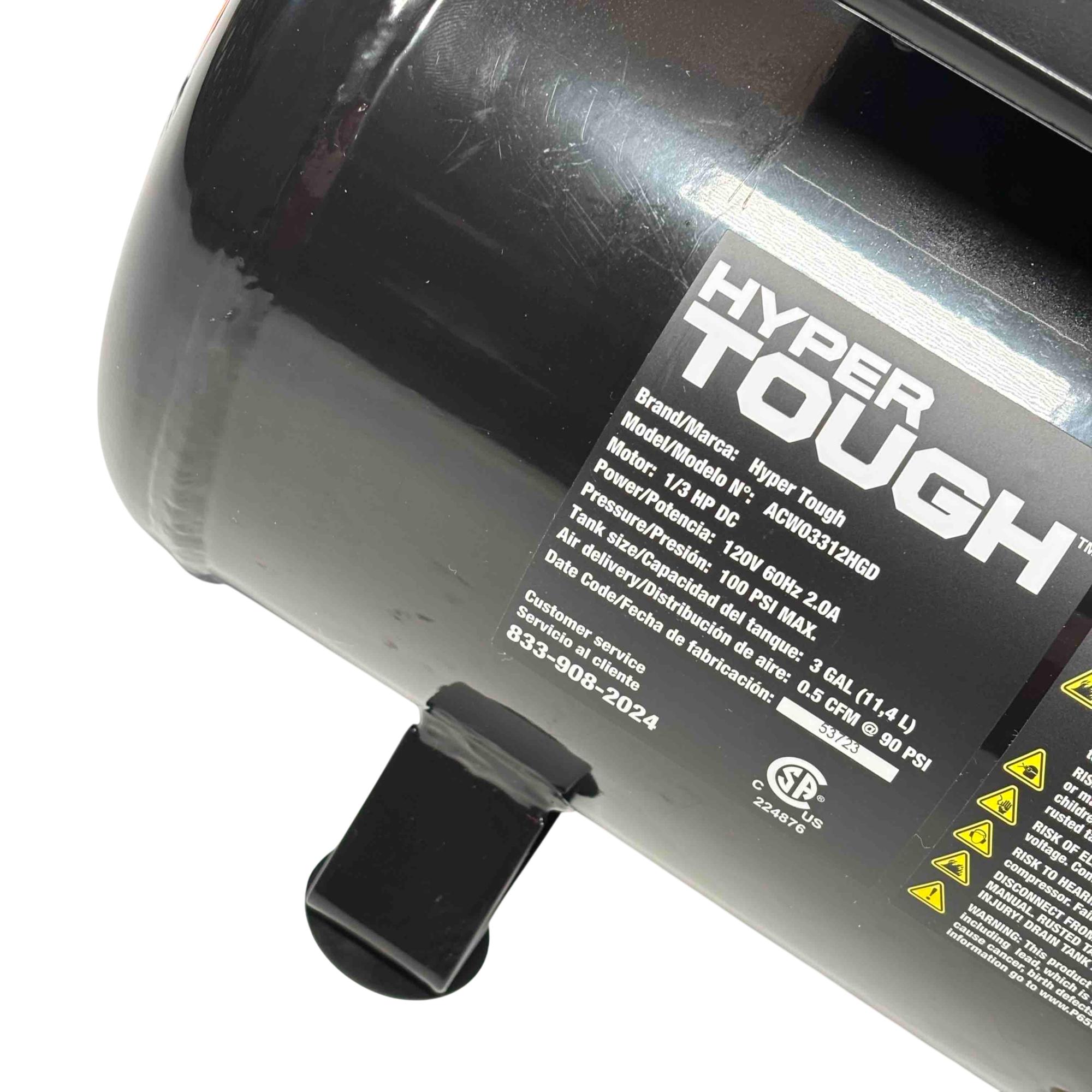 Hyper Tough SCW03312HGD Black 3-Gallon 100 PSI Oil-free Portable Air Compressor