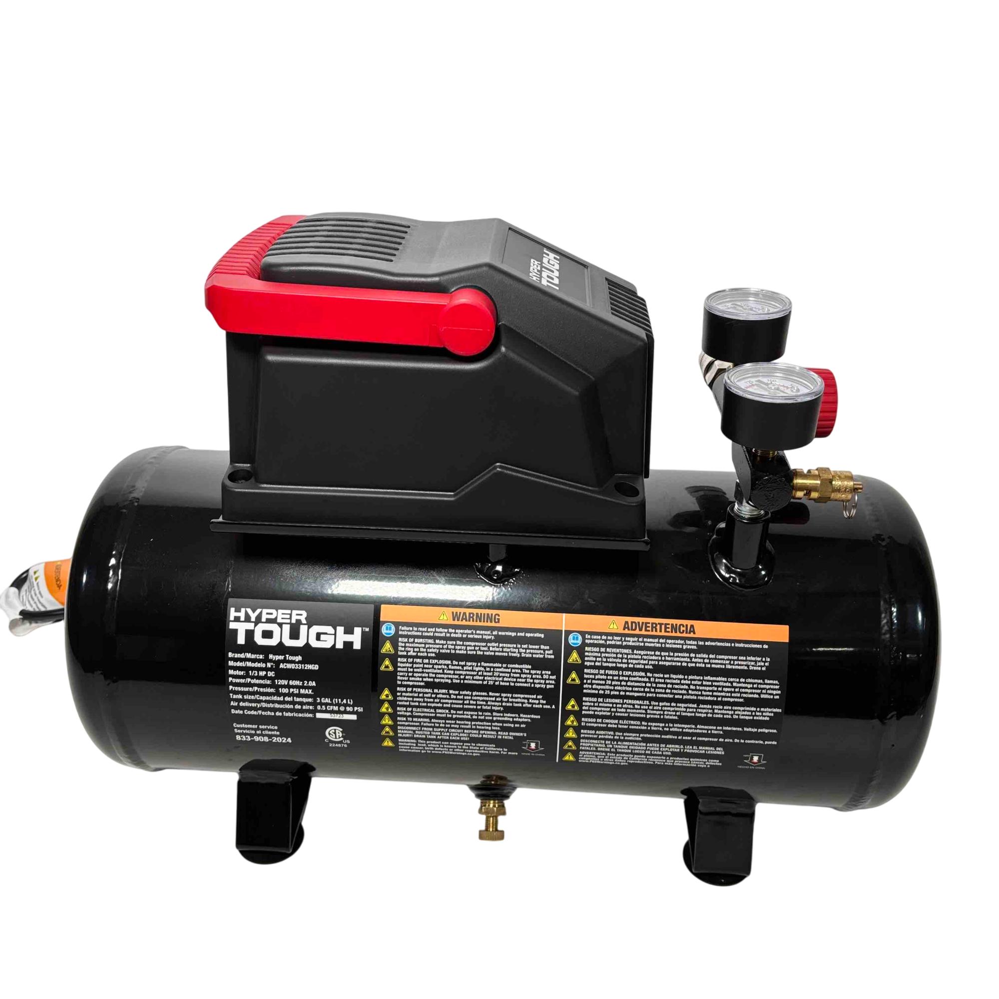 Introducing the Hyper Tough ACW03312HGD 3 Gallon Air Compressor, the perfect compact solution for all your air tool needs. With a robust 1/3 HP motor and a sleek black and red design, this compressor is not only powerful but also stylish. Ideal for DIY enthusiasts and professionals alike, it delivers reliable performance at a maximum of 100 PSI, making it essential for any workshop or garage.