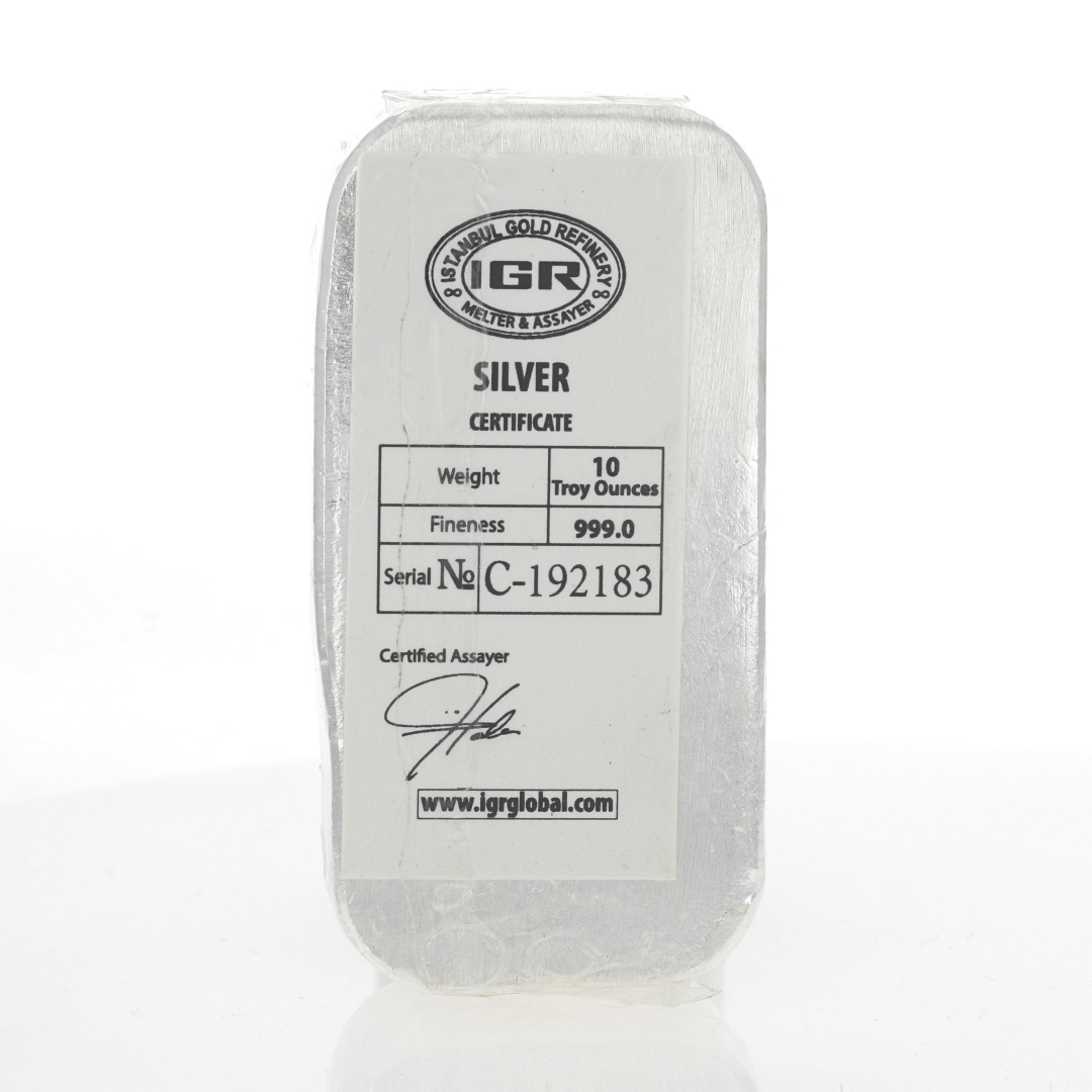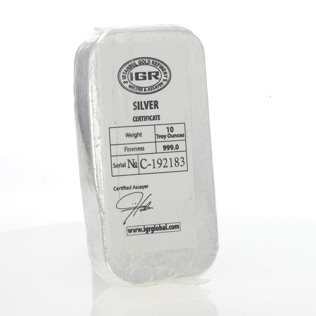 Model: IGR 10 oz .999 Fine Silver Casted Bar