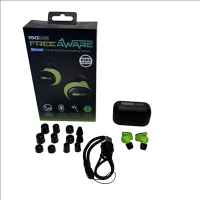 The ISOtunes FREE Aware True Wireless Bluetooth Noise-Isolating Earbuds deliver advanced hearing protection with integrated Bluetooth technology designed for industrial and everyday use. These earbuds feature effective noise isolation with a 25 decibel noise reduction rating to ensure compliance with OSHA standards while providing clear audio and environmental awareness through their specialized sound control and filtration system.