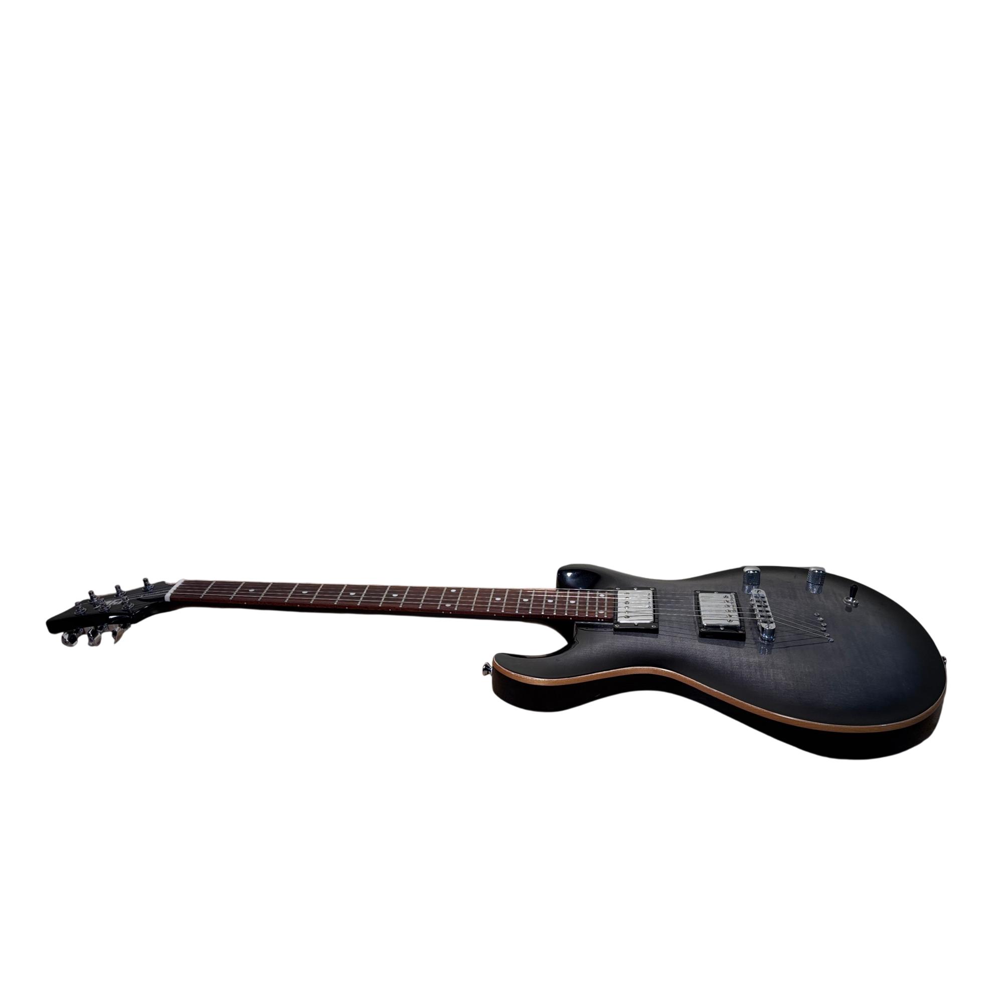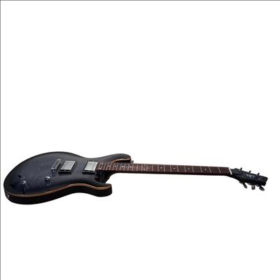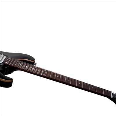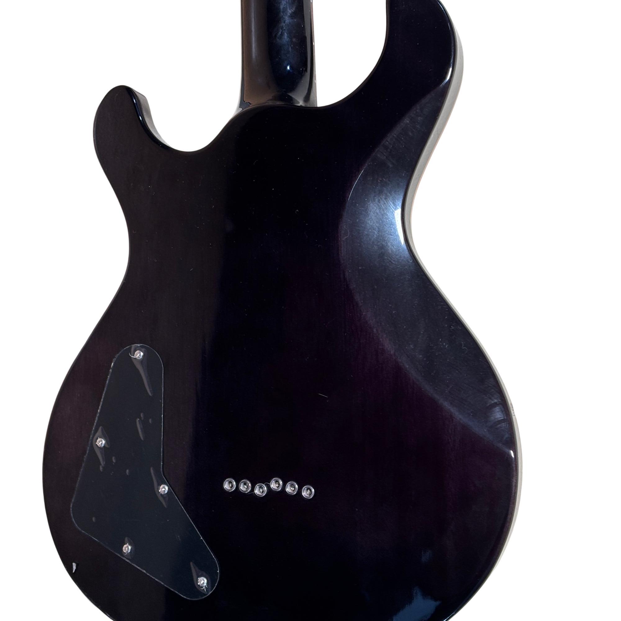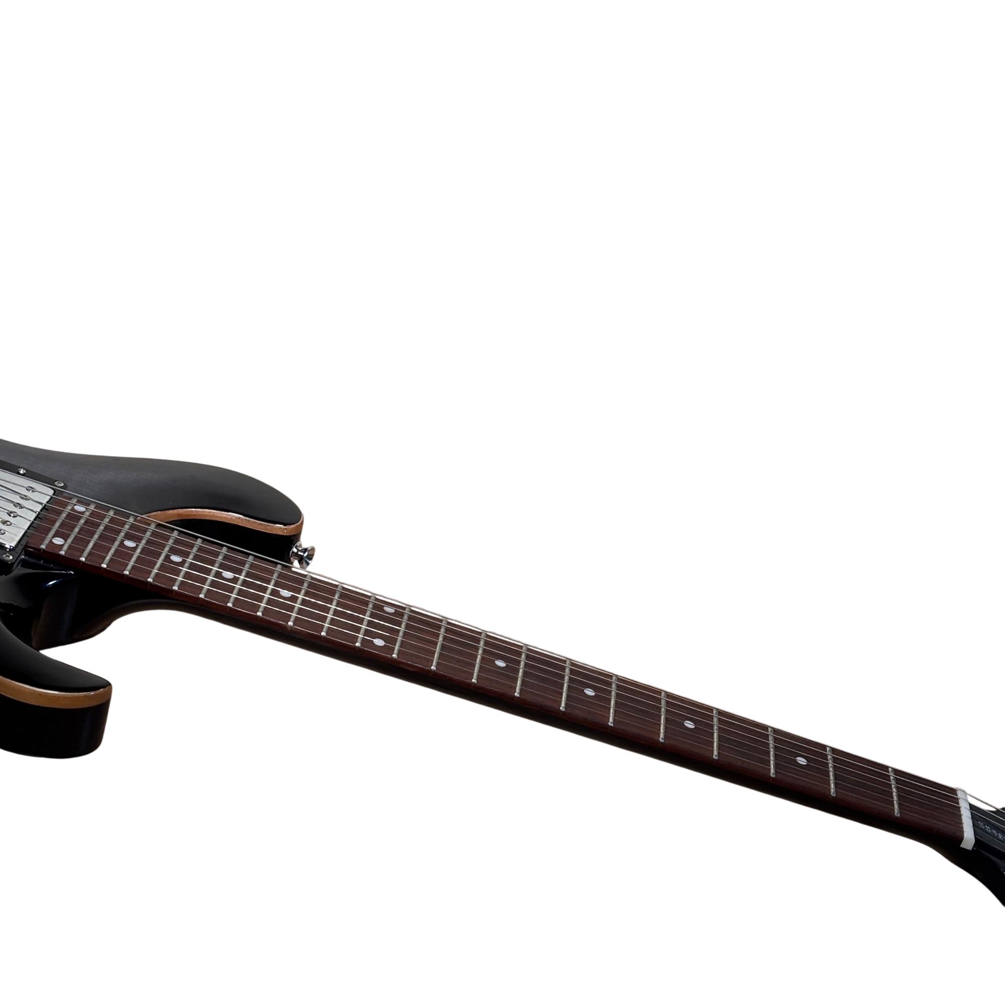 IYV 6 String IP-350 TBK PRS Solid-Body Electric Guitar, Trans Black features a sleek black finish with white dot inlays on the fretboard, combining classic design with modern playability. This solid-body electric guitar offers a smooth neck and precise string action, making it suitable for a variety of musical styles and performance settings.