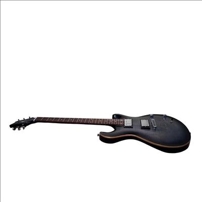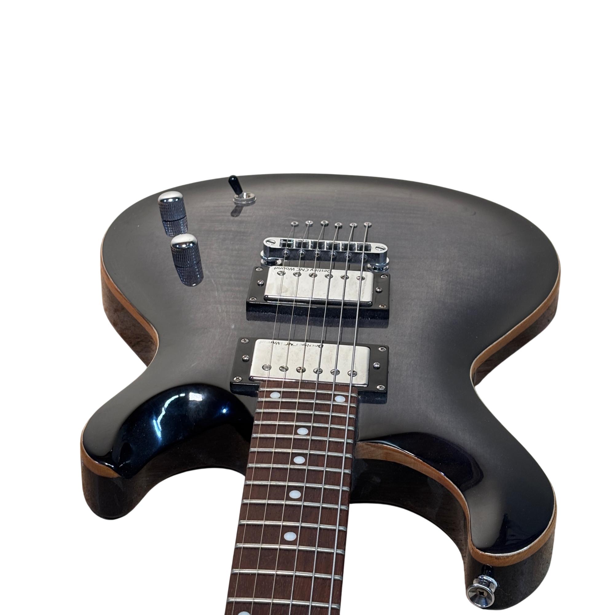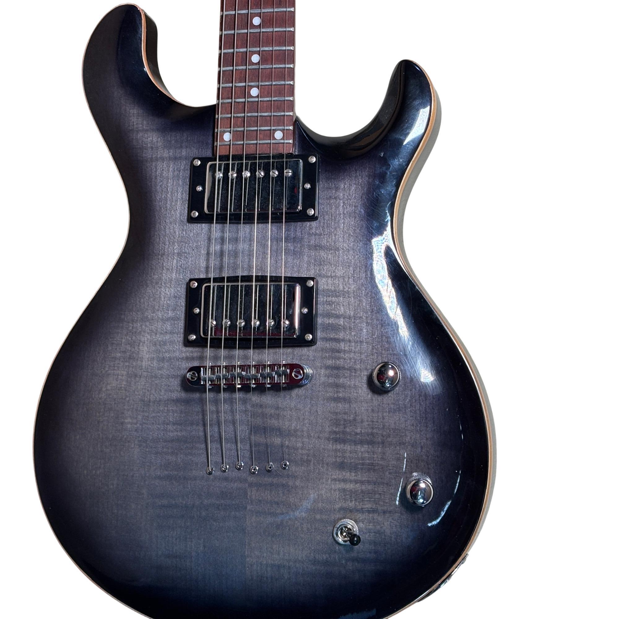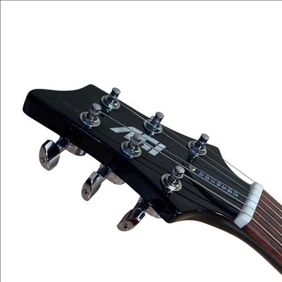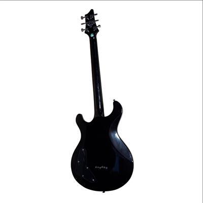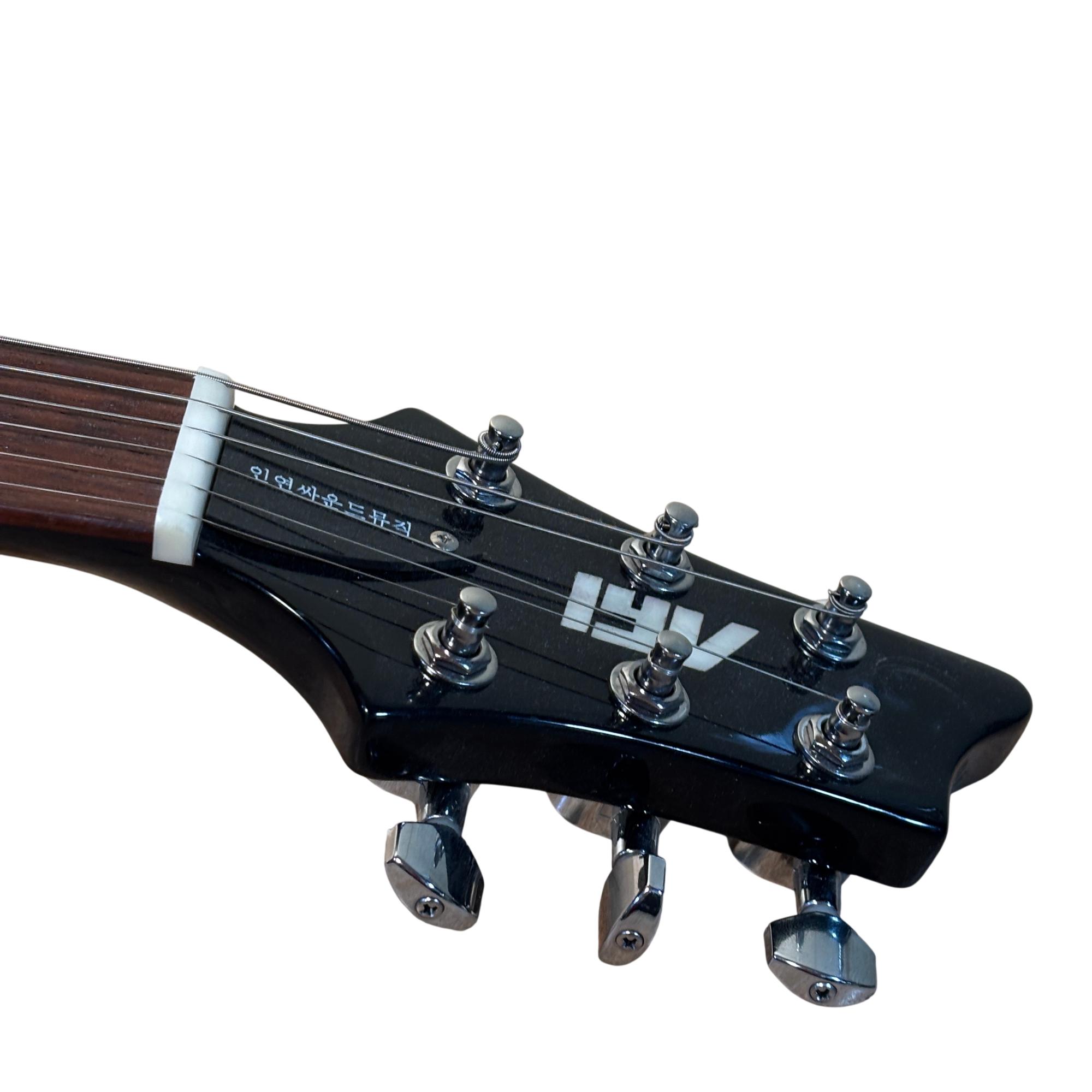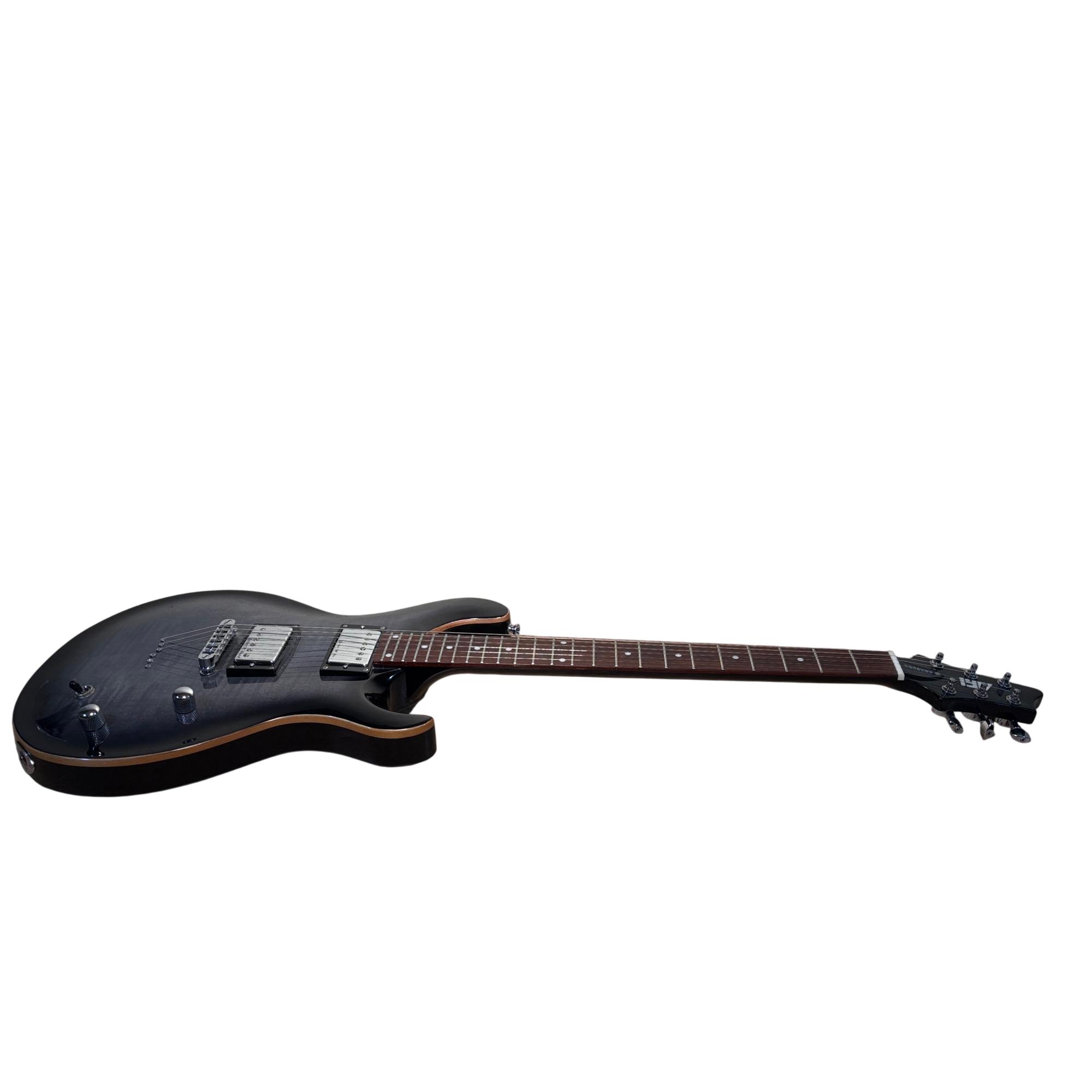 IYV 6 String IP-350 TBK PRS Solid-Body Electric Guitar, Trans Black features a sleek black finish with white dot inlays on the fretboard, combining classic design with modern playability. This solid-body electric guitar offers a smooth neck and precise string action, making it suitable for a variety of musical styles and performance settings.