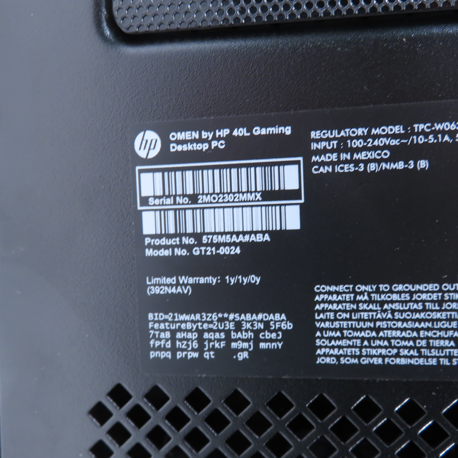 Model: OMEN 40L GT21-0024