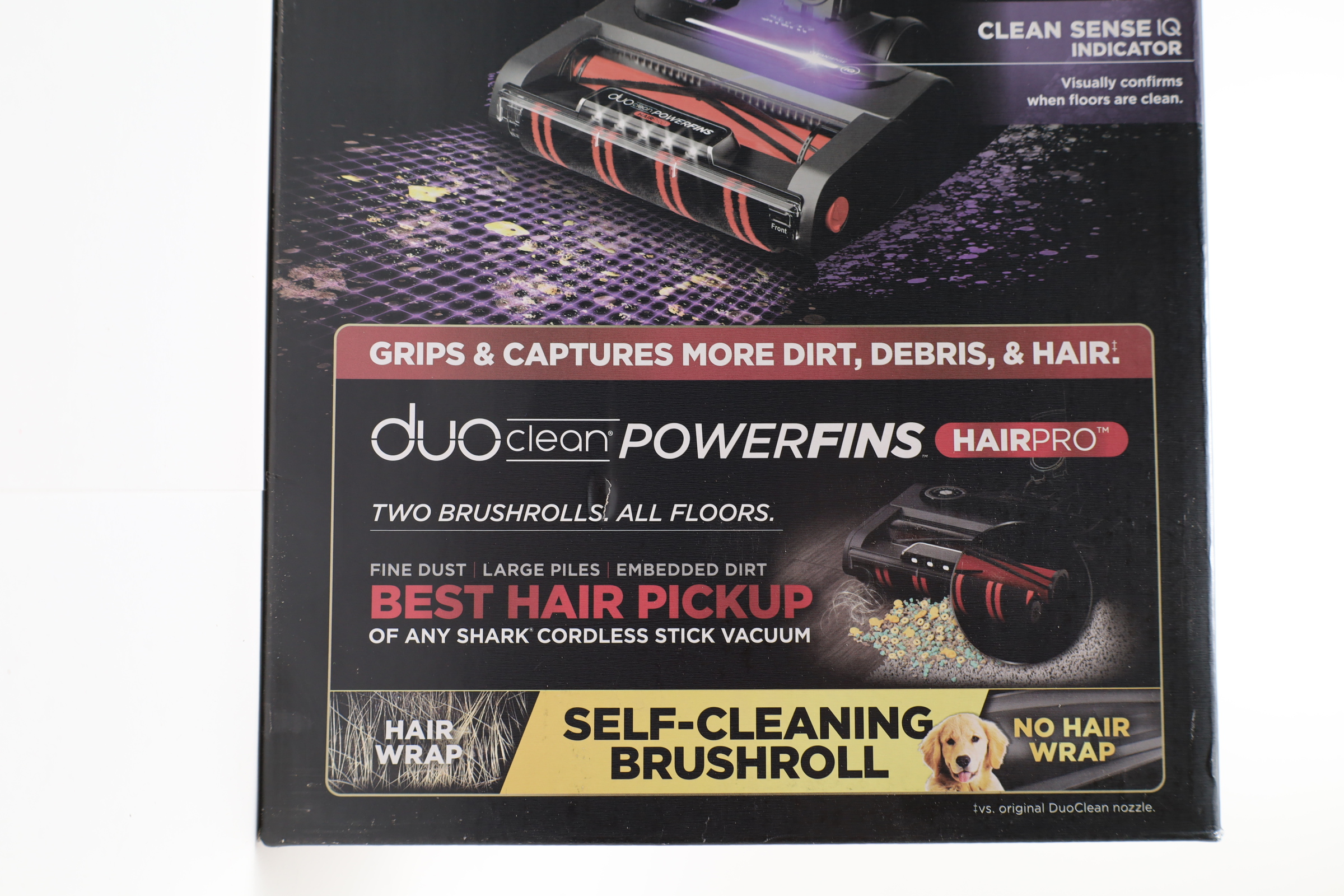 Features Clean Sense IQ technology that uses an infrared sensor to detect hidden dirt and automatically boost power for more effective cleaning. It claims to have the most powerful suction among Shark cordless vacuums, thanks to its HyperVelocity Plus technology. The vacuum also incorporates Odor Neutralizer Technology to combat unpleasant smells, and a DuoClean PowerFins HairPro nozzle designed for superior hair pickup. Additional features include a self-cleaning brushroll for pet hair, a flexible wand with MultiFLEX technology for easy maneuverability, and an LED display for real-time monitoring of battery and settings.