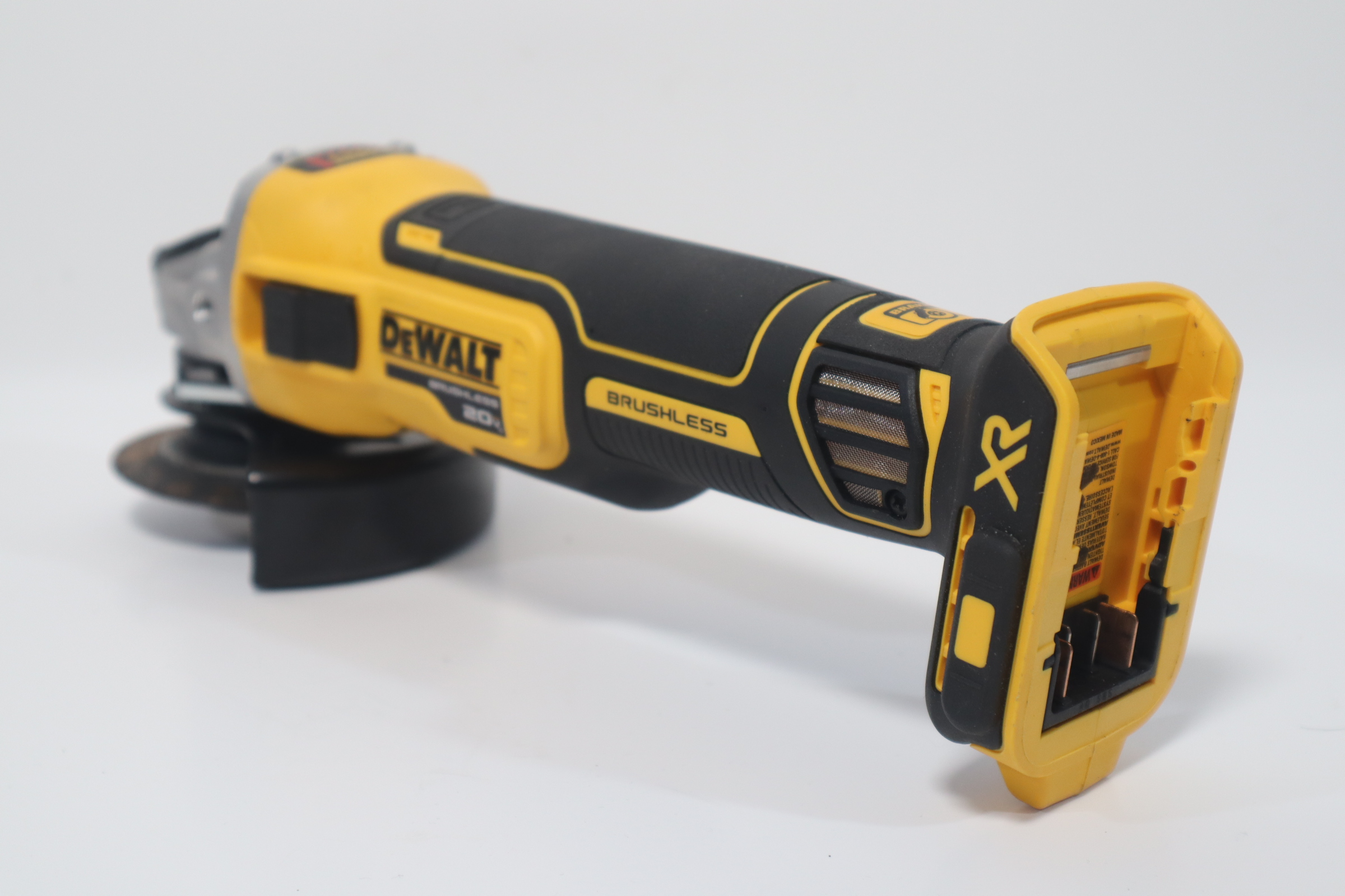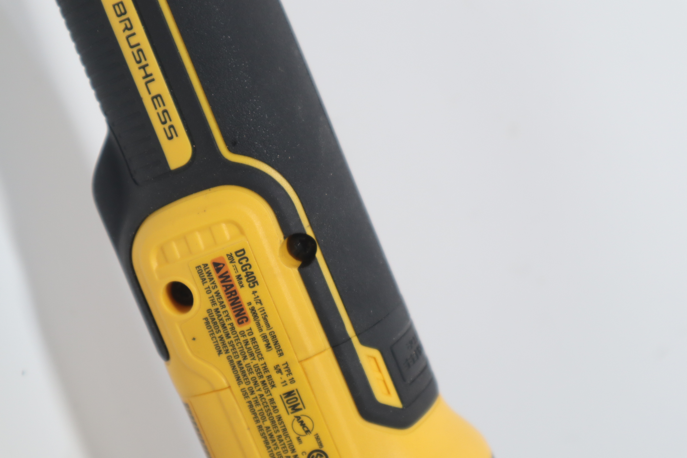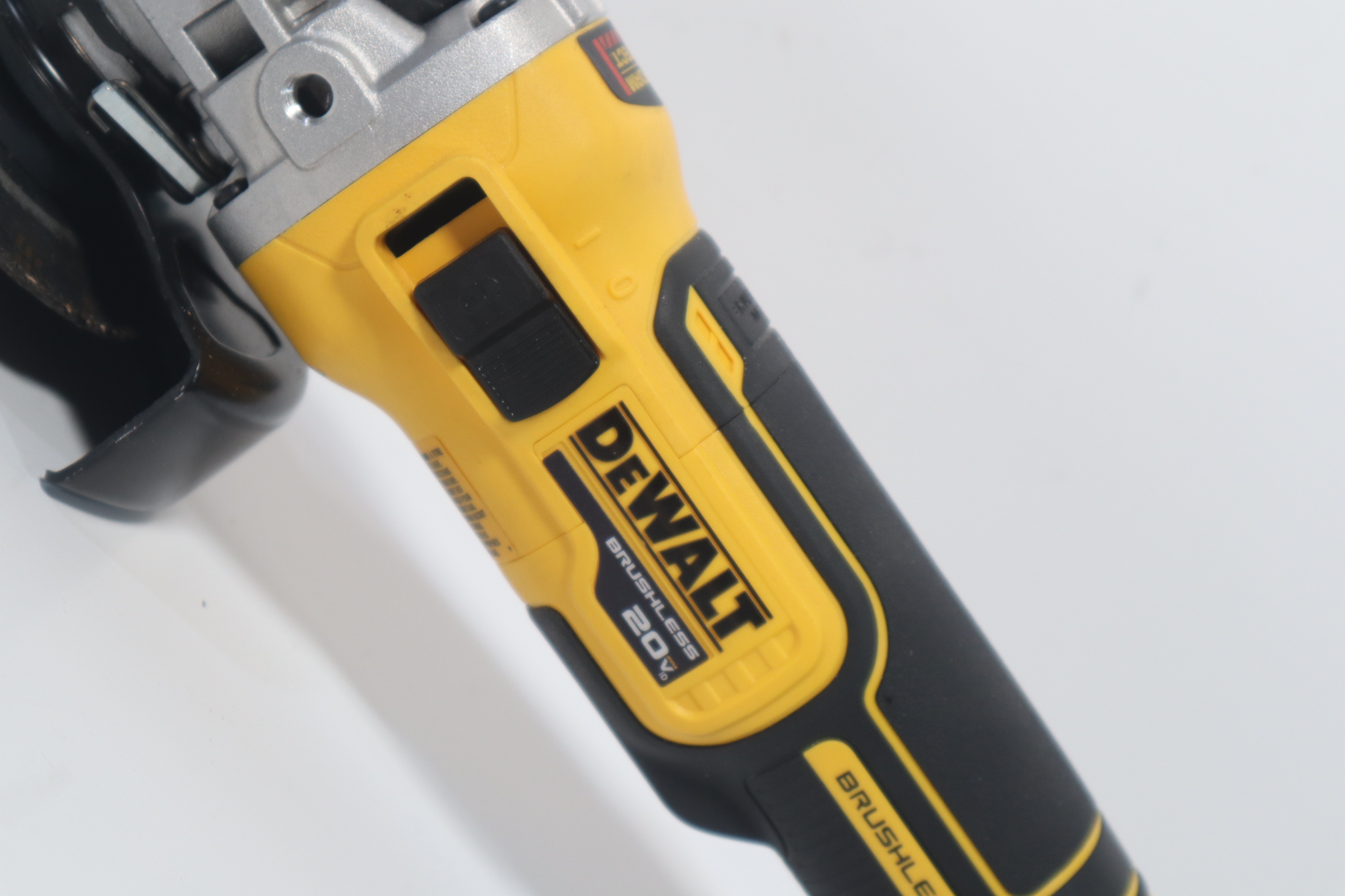 Experience Power on challenging jobs with the 20V MAX XR 4.5 in. Slide Switch Small Angle Grinder with Kickback Brake. As a part of the PERFORM & PROTECT line of products, this tool is equipped with KICKBACK BRAKE which engages with maximum force to stop the wheel when a pinch, stall, or bind-up is detected.