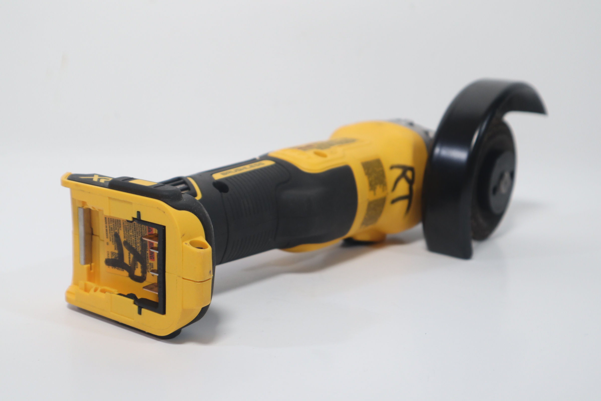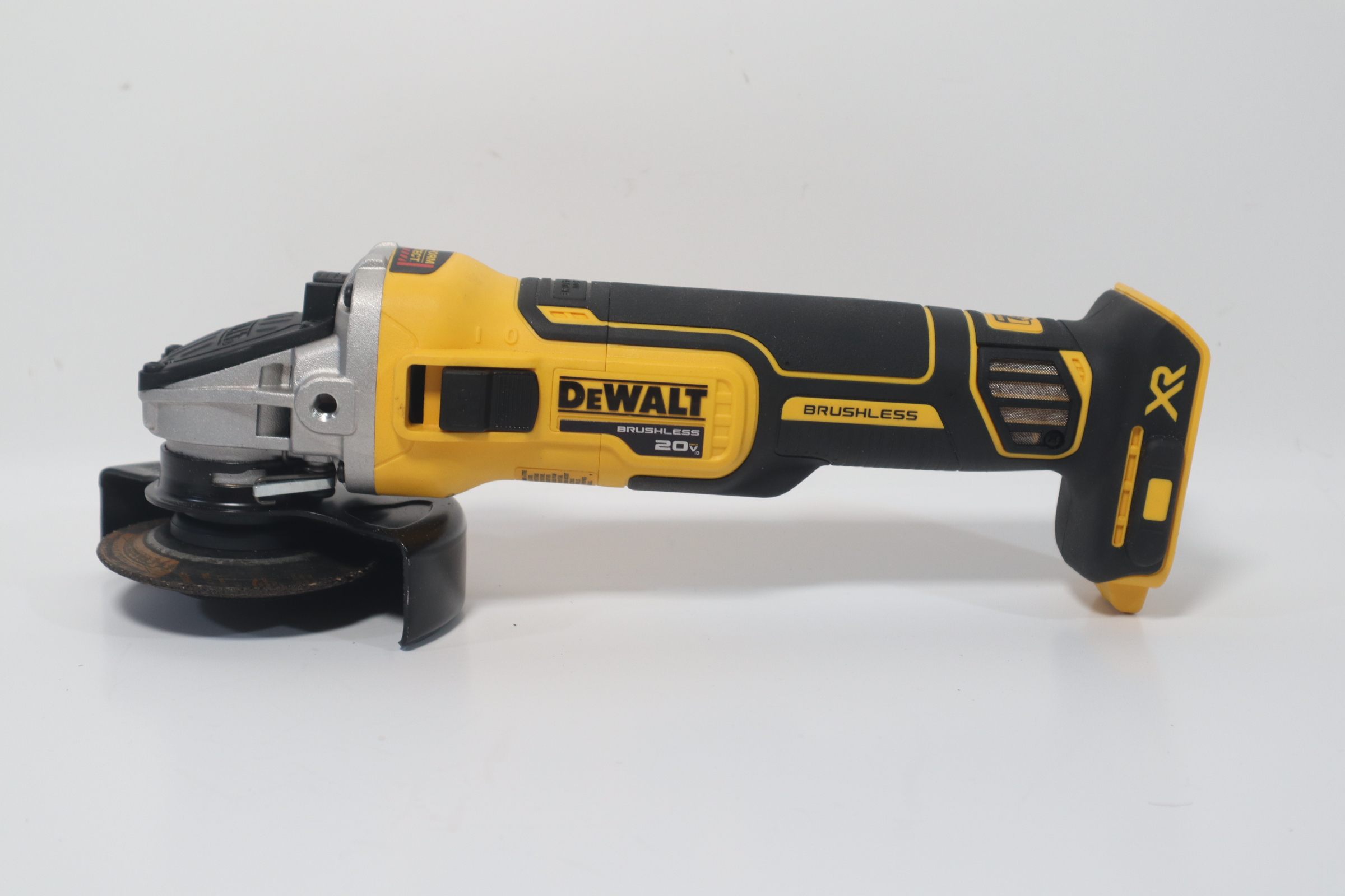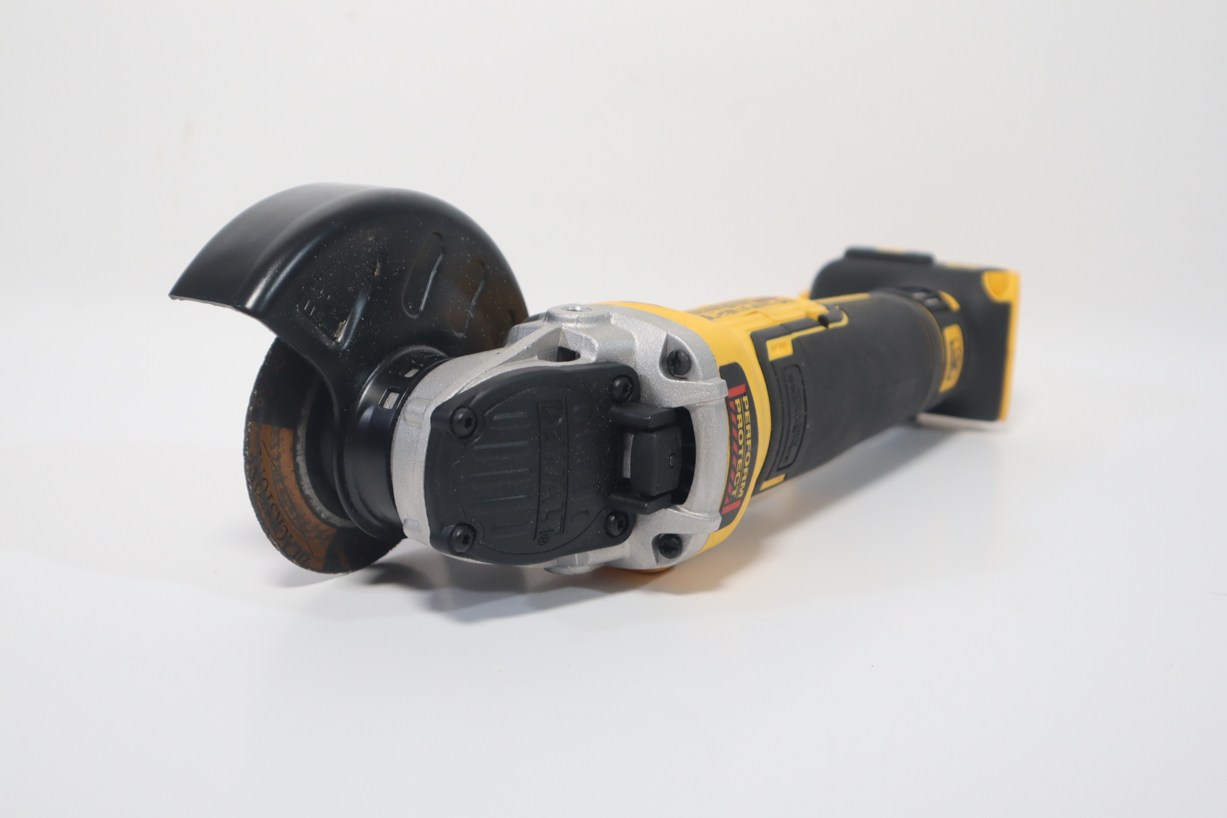 Experience Power on challenging jobs with the 20V MAX XR 4.5 in. Slide Switch Small Angle Grinder with Kickback Brake. As a part of the PERFORM & PROTECT line of products, this tool is equipped with KICKBACK BRAKE which engages with maximum force to stop the wheel when a pinch, stall, or bind-up is detected.