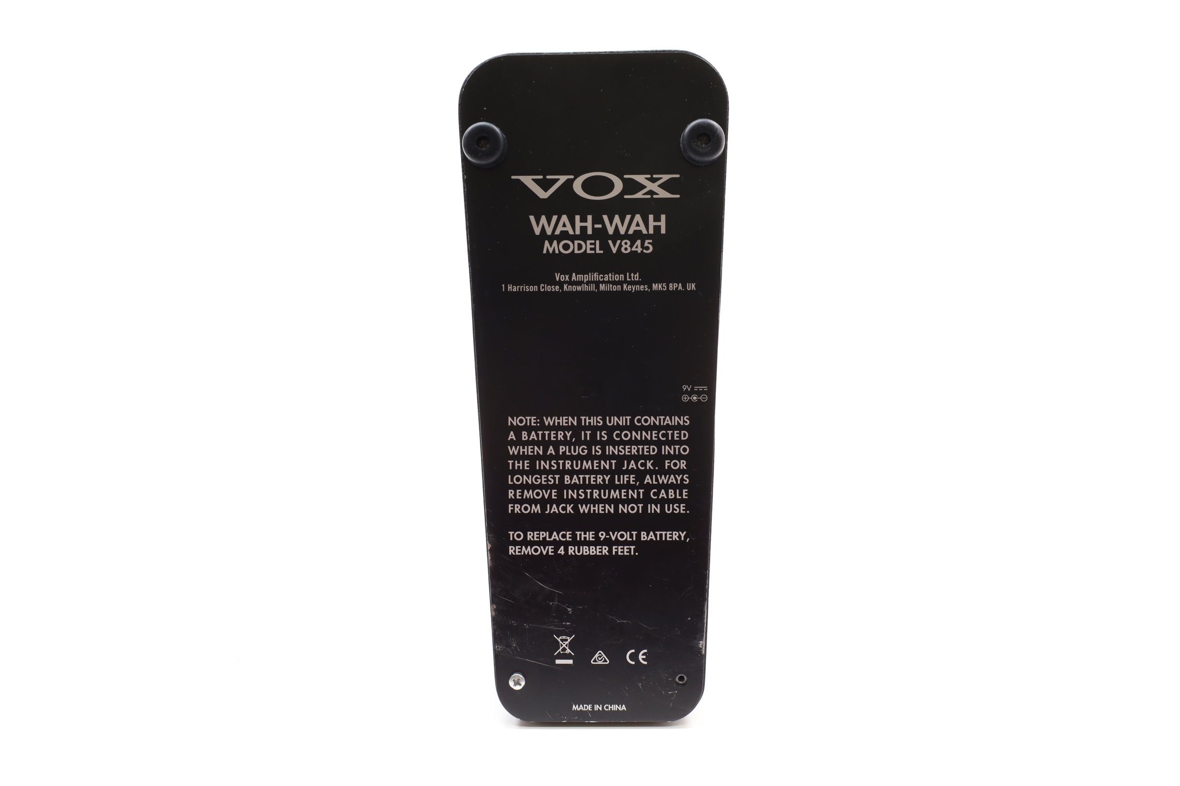 A pedalboard staple designed to emulate Vox's '60s-era original, delivering classic Cream- and Hendrix-esque wah-wah effects. It features a 9-volt power supply input, eliminating the need for a battery, and is built with a durable all-black coated finish to withstand extensive use. Ideal for guitarists seeking authentic vintage wah tones, the Vox V845 combines reliability and performance in a compact, robust design.