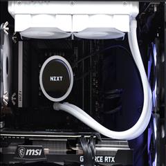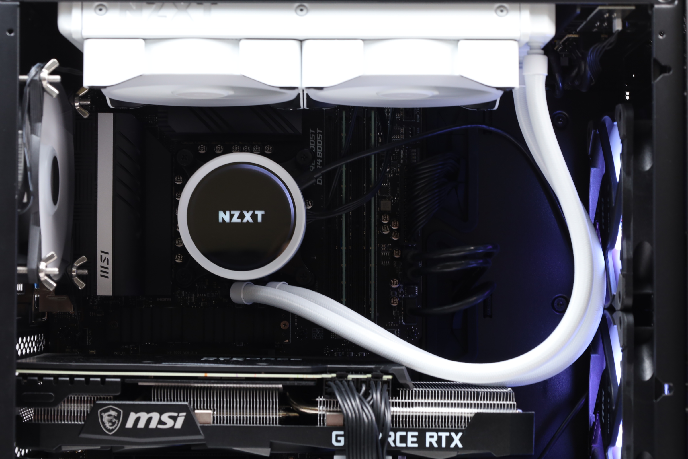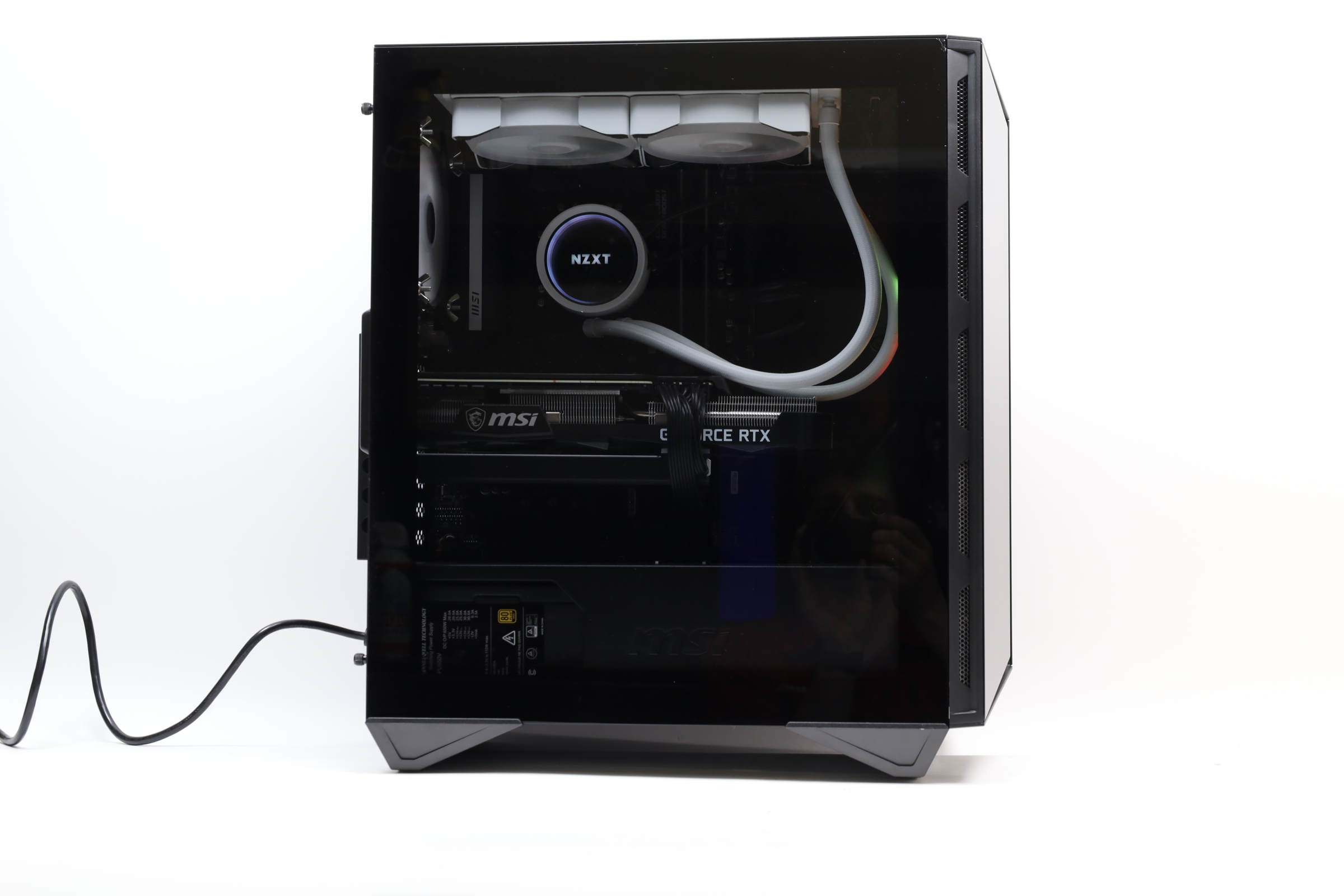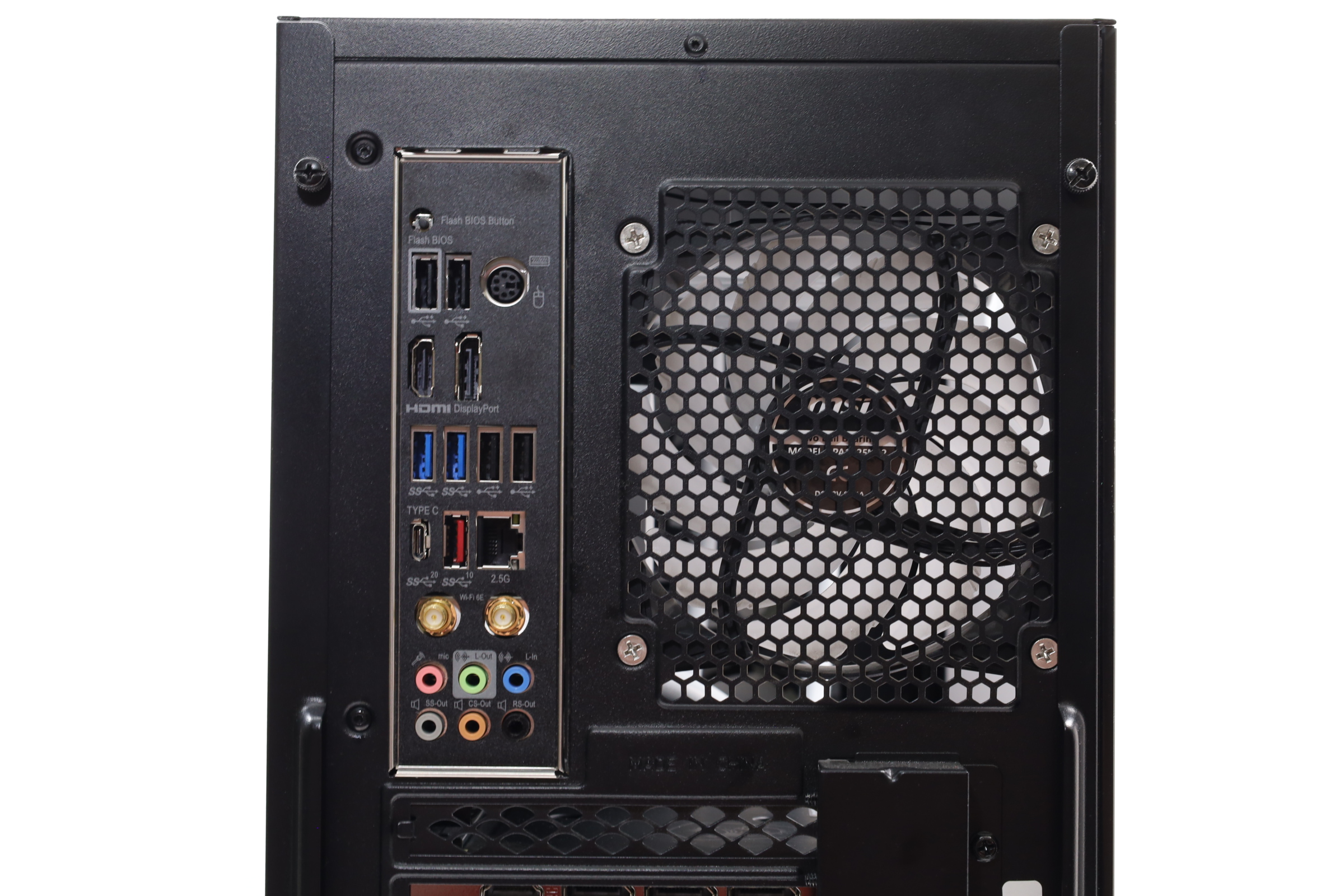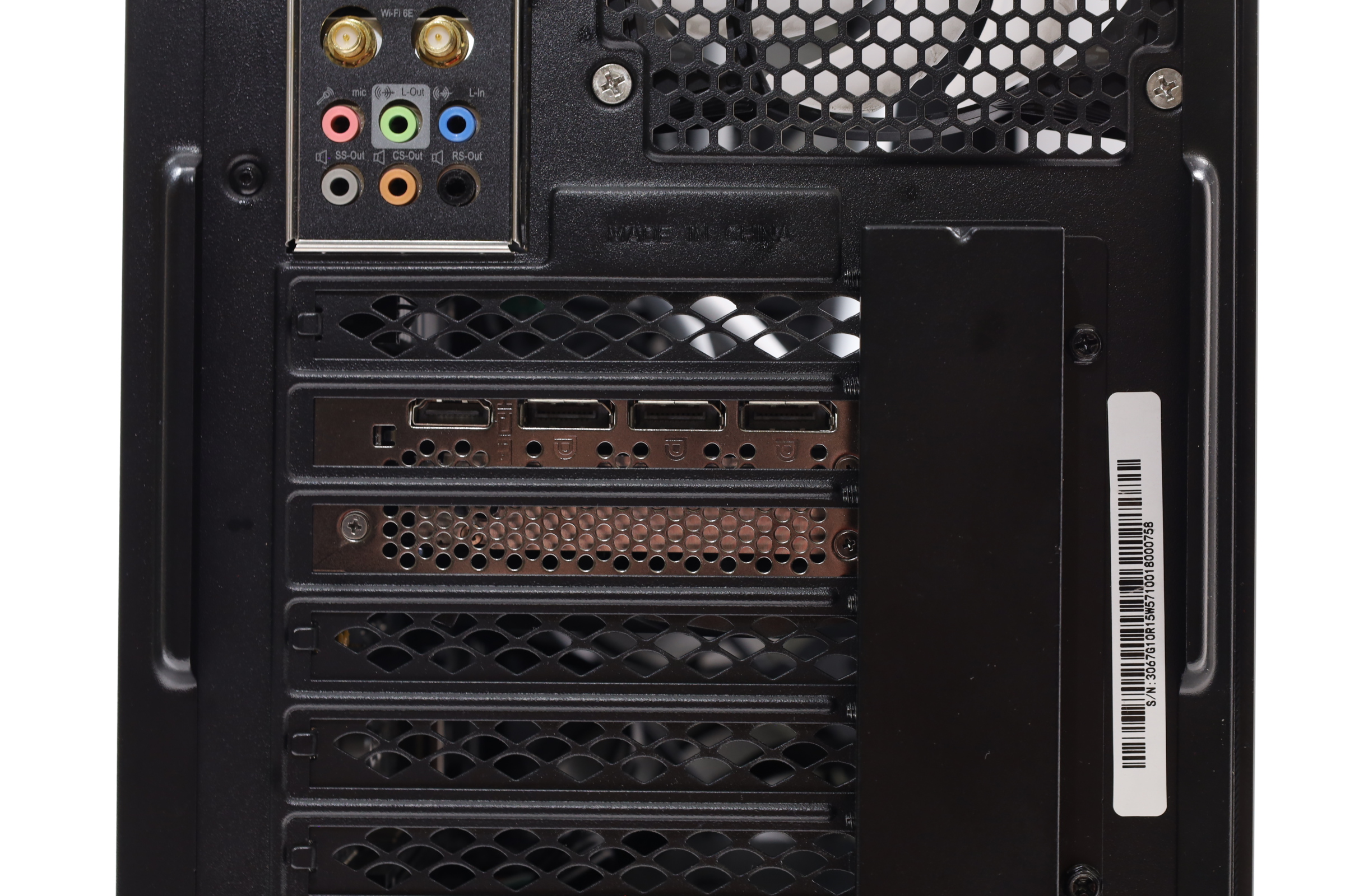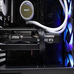 A high-performance desktop PC built for demanding tasks. It sports an 11th Gen Intel Core i7-11700K 8-Core processor with 3.6GHz base clock speed and boosts up to 4.9 GHz, paired with a generous 64GB of DDR4 RAM for smooth multitasking. The processor is cooled with a NXZT all-in-one liquid cooler. Storage includes a speedy 1TB solid state drive (SSD). The Nvidia GeForce RTX 3070 graphics card with 8GB of GDDR6X memory tackles heavy-duty graphics processing for gaming and professional applications. Wireless connectivity options include Bluetooth 5.2 and the latest Wi-Fi 6E standard. For connecting peripherals, the front panel offers two USB 3.2 Gen 1 Type-A ports, a USB 3.2 Gen 1 Type-C port, a headphone jack, and a microphone jack. The rear panel provides additional expandability with two USB 3.2 Gen 1 Type-A ports, a USB 3.2 Gen 2 Type-A port, a USB 3.2 Gen 2 Type-C port, and two USB 2.0 ports.