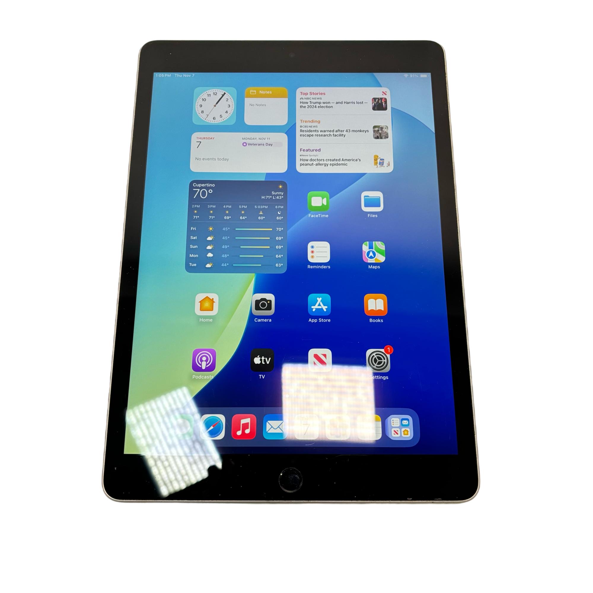 All iPad (9th Gen) tablets -- including this Wi-Fi-only model -- are housed in white and silver colored or black and medium toned "Space Gray" cases and feature a 10.2" 2160x1620 (264 ppi) LED-backlit IPS touch-sensitive "Retina" display with True Tone capability. Each has a "Touch ID" fingerprint sensor, supports the original Apple Pencil (A1603, MK0C2AM/A), and has a "Smart Connector" for use with an Apple Smart Keyboard, as well.