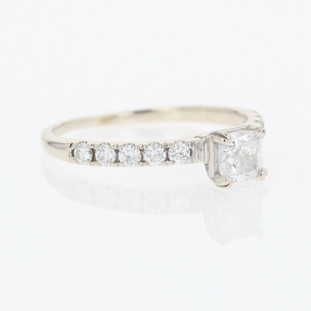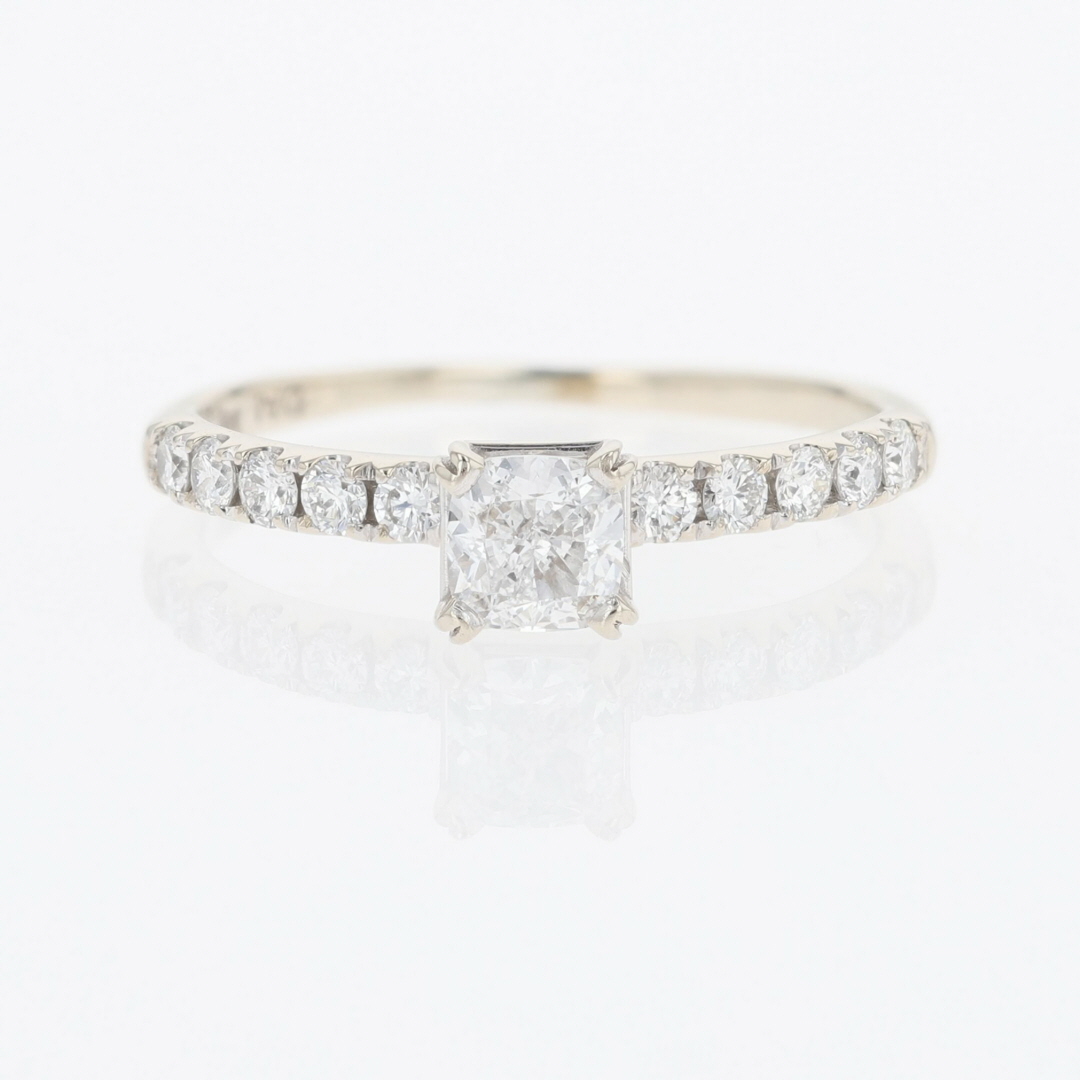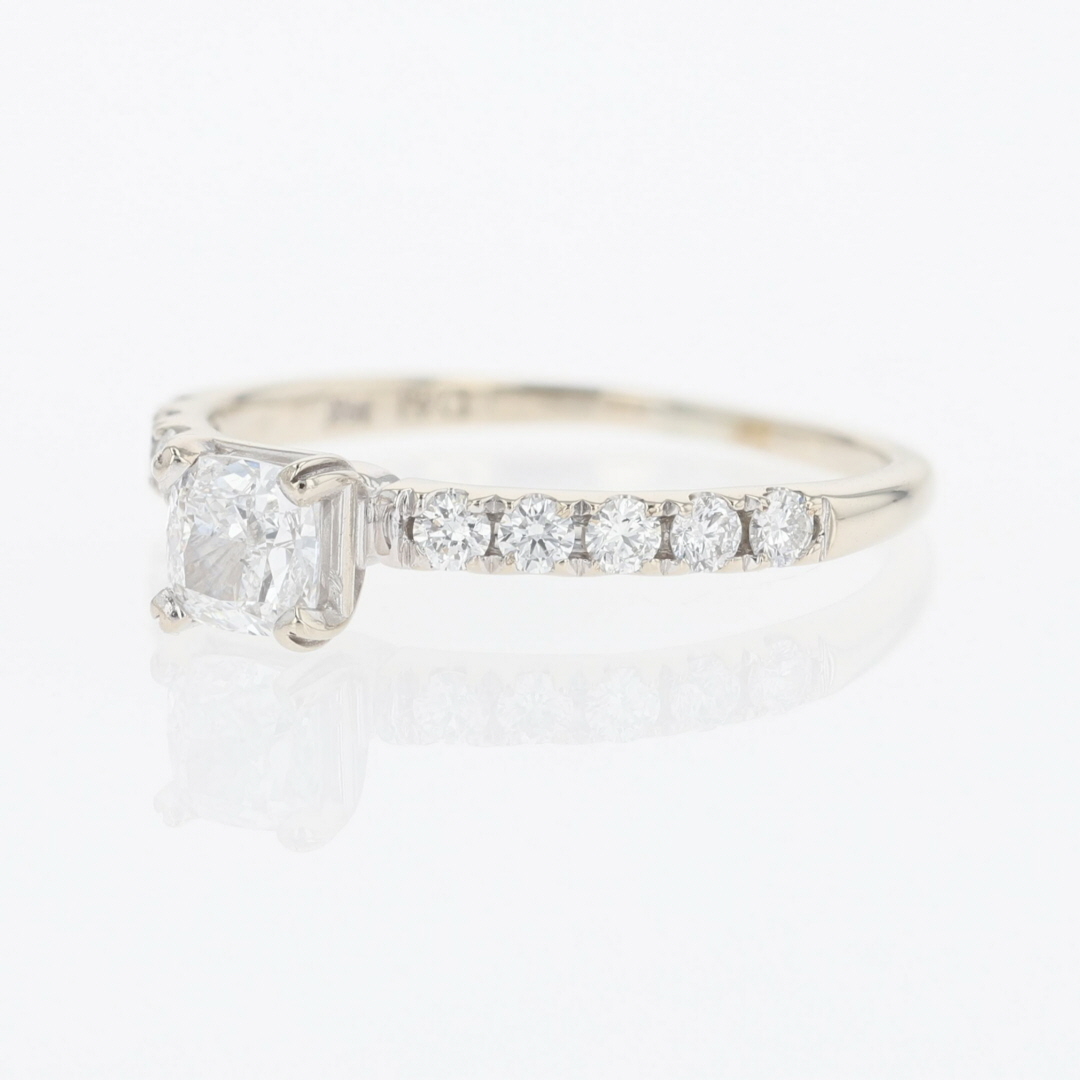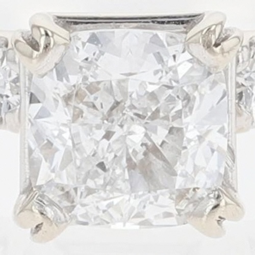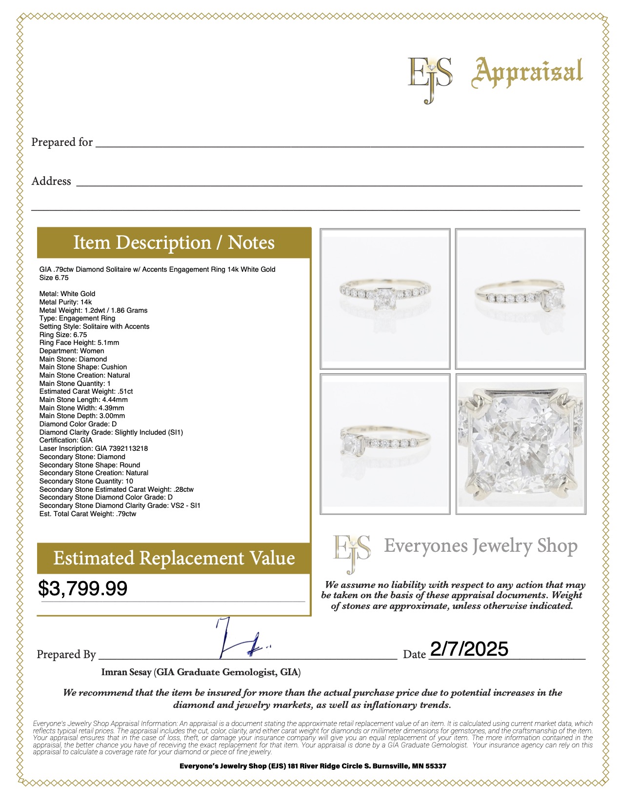 The primary diamond is laserscribed with GIA 7392113218 on the girdle.