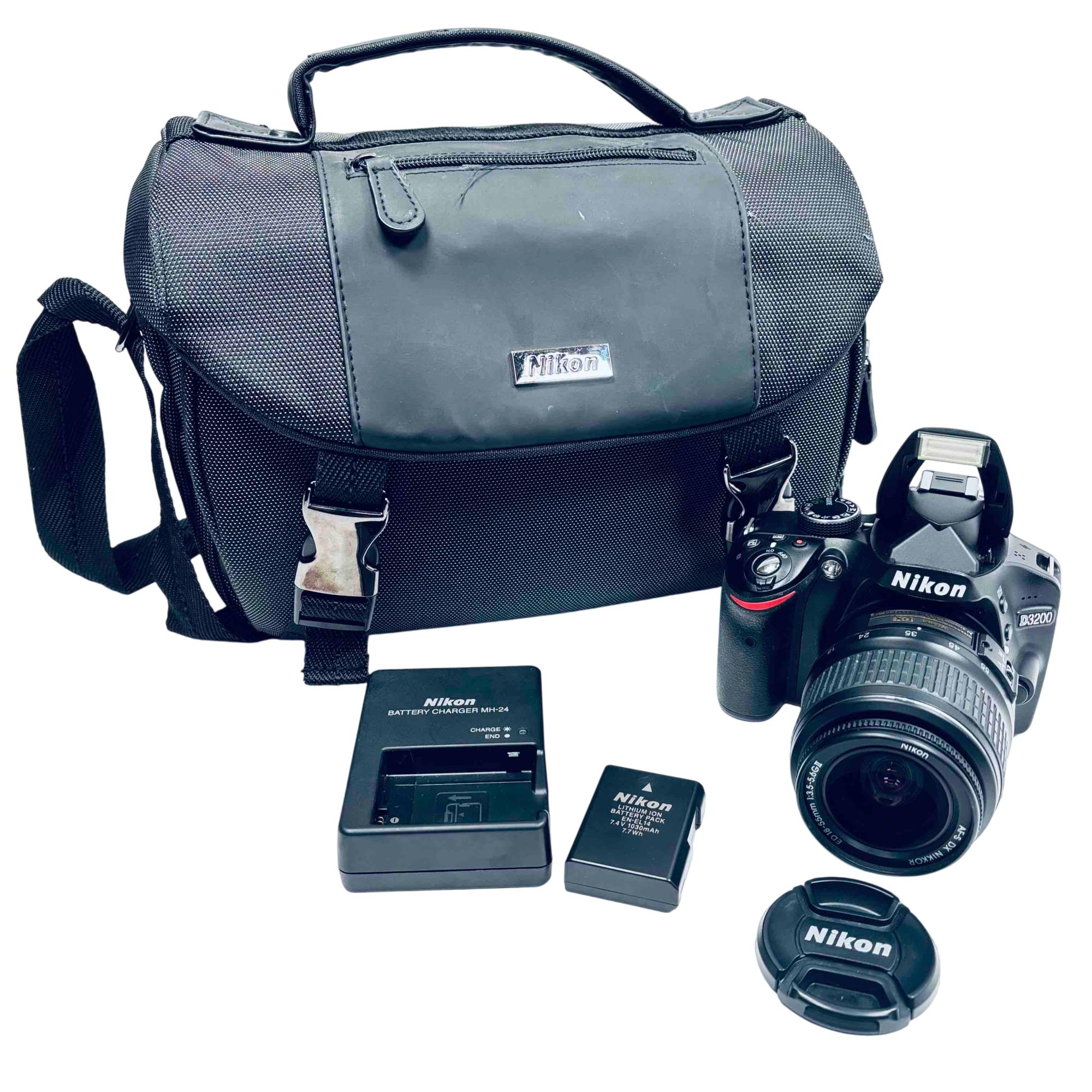 Capture stunning photos with the Nikon D3200 DSLR Camera, paired with an 18-55mm lens for versatile shooting options. This bundle comes with a reliable battery charger and a stylish Nikon camera bag, making it perfect for photography enthusiasts on the go. Experience superior image quality and ease of use with this well-maintained set.