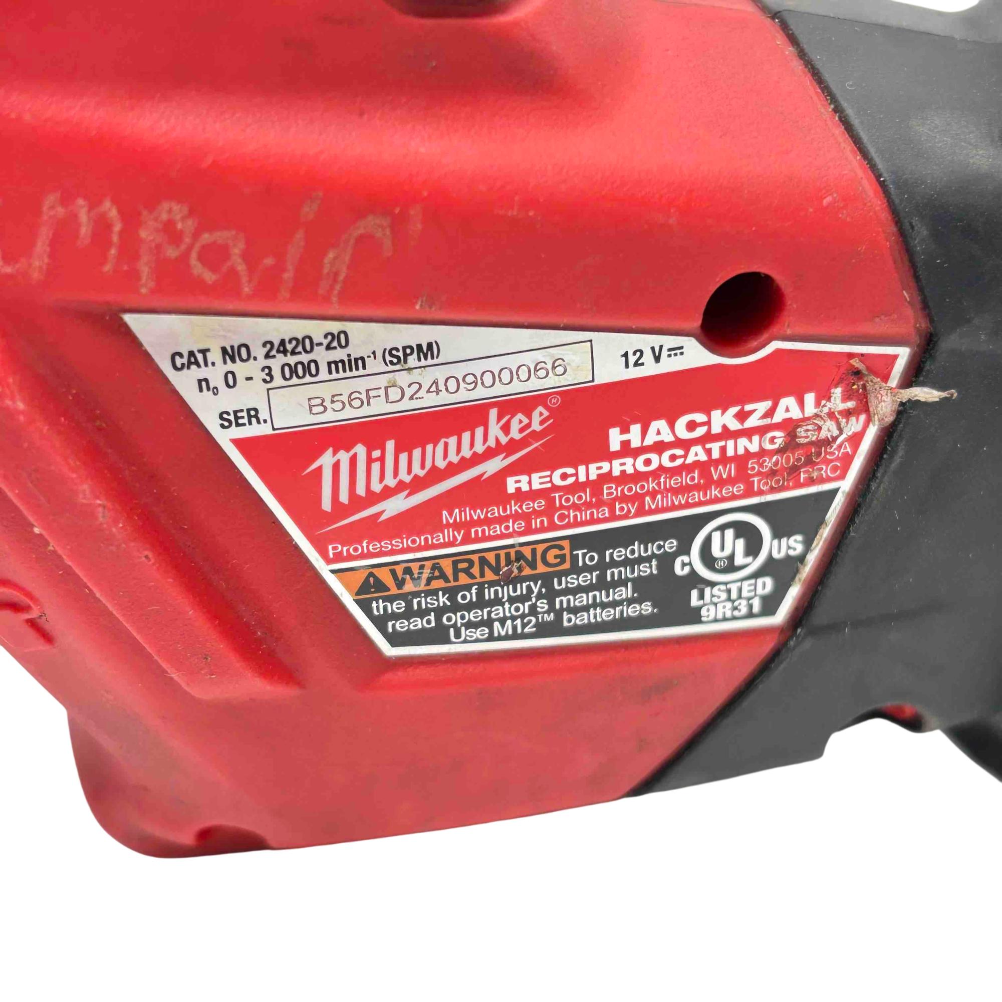 Unleash the power of precision cutting with the Milwaukee 2420-20 M12 HACKZALL Cordless Reciprocating Saw. Ideal for both professional and DIY tasks, this compact and versatile tool offers the convenience of cordless operation, making it perfect for any job site. Equipped with a reliable battery, it provides powerful performance without the hassle of cords, while its ergonomic design ensures comfortable use during extended periods. Please note that the charger is not included.