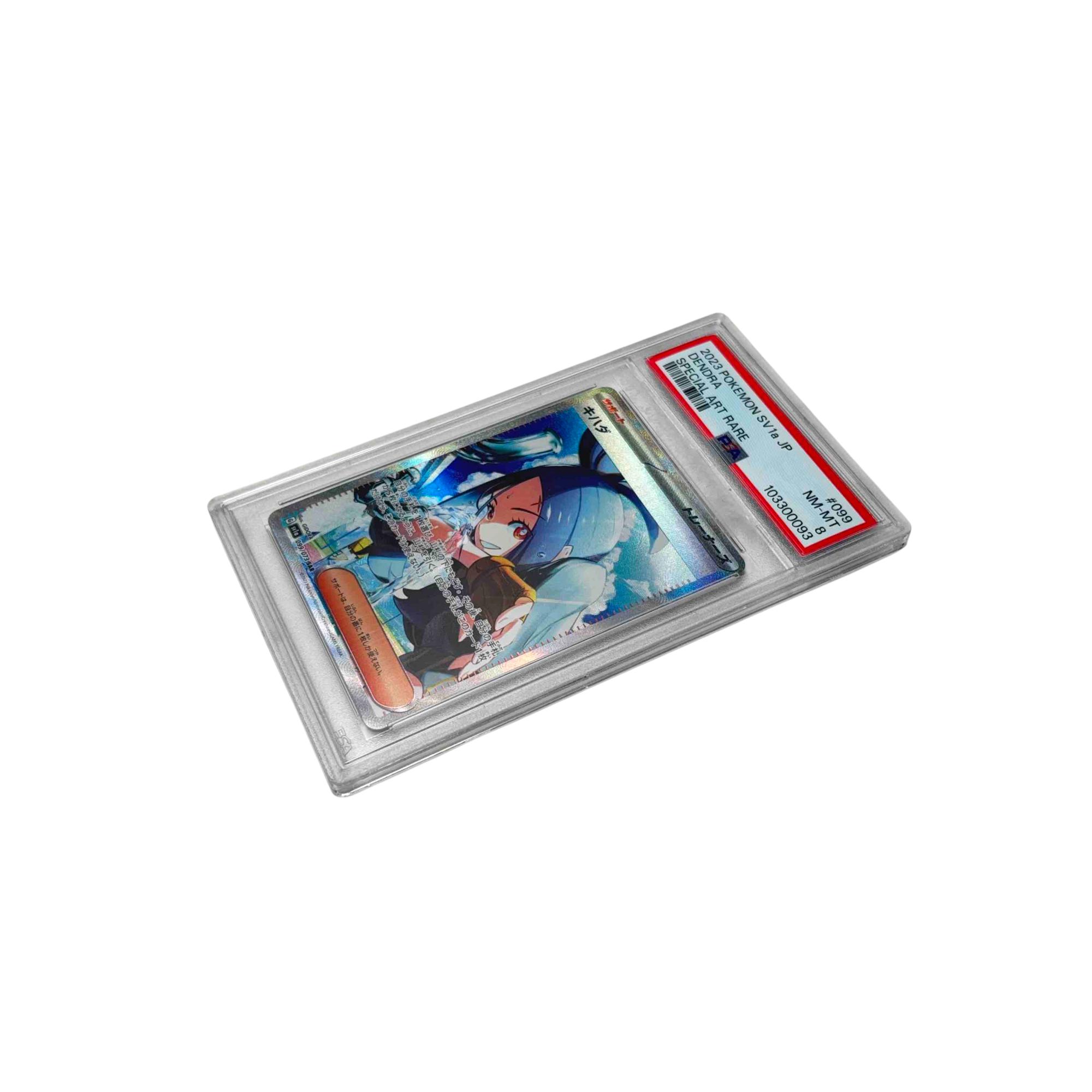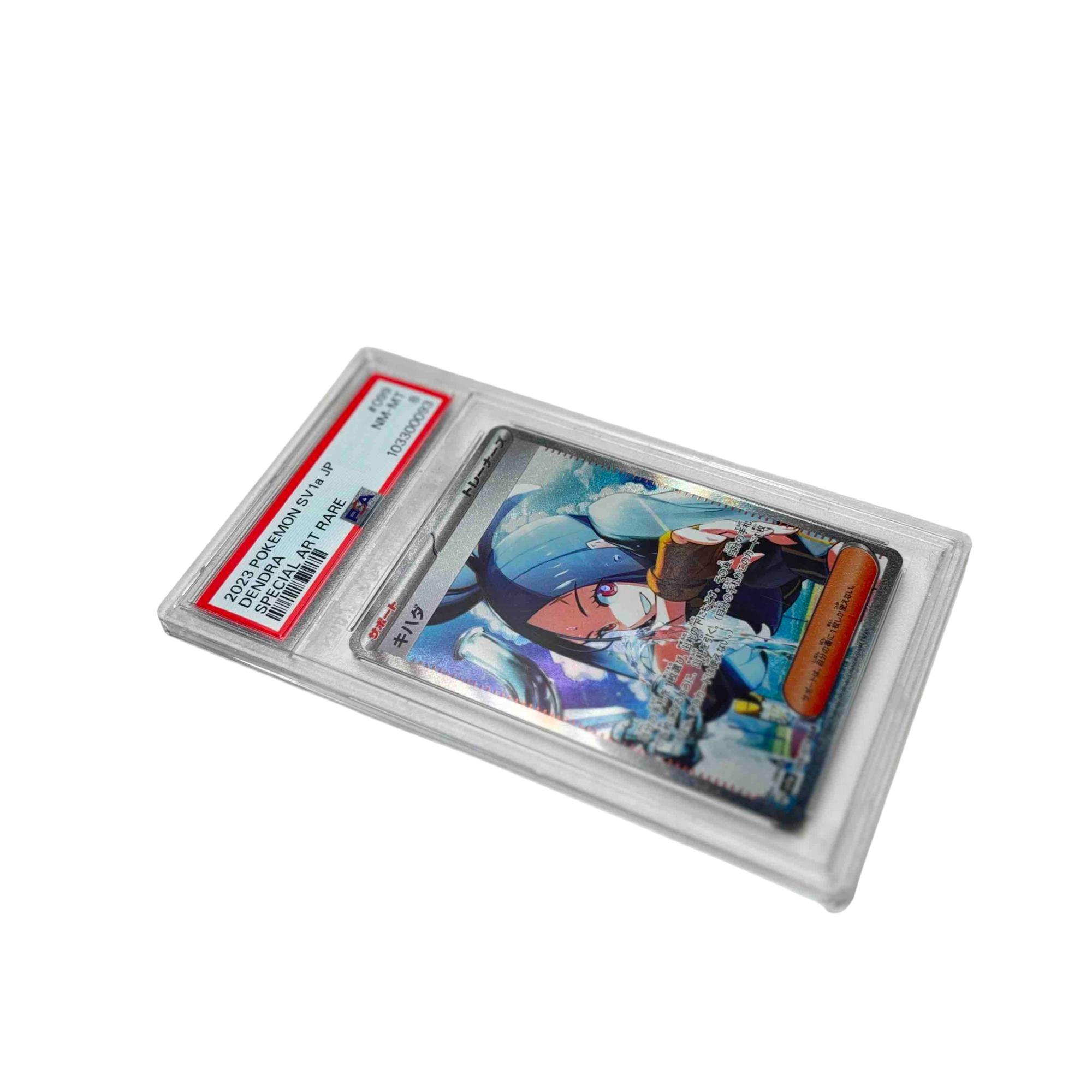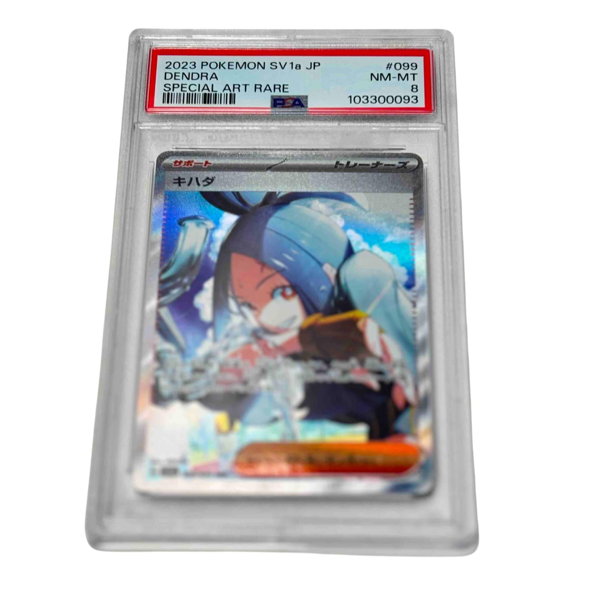 Capture a piece of the Pokémon universe with this 2023 SV1a JP Dendra #099 Special Art Rare card, graded NM-MT by PSA with an 8 rating. Featuring stunning artwork and housed in a protective plastic case, this collectible is a must-have for any Pokémon enthusiast aiming to enhance their collection with a rare gem.