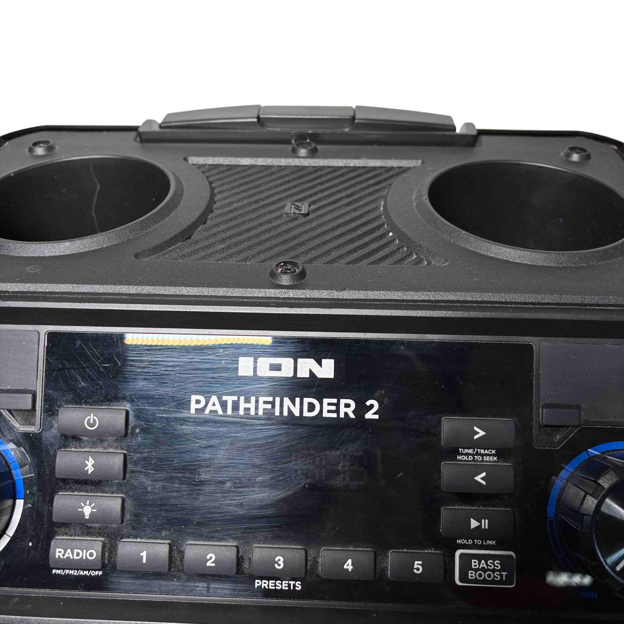 Experience premium sound quality with the ION Audio Pathfinder 2 iPA105C Bluetooth Speaker. This versatile speaker not only connects wirelessly via Bluetooth but also includes built-in radio functionalities. Its rugged design and weather resistance make it perfect for outdoor adventures. Whether youre hosting a party or enjoying a solo listening session, the Pathfinder 2 delivers powerful audio and impressive bass to elevate your music experience.