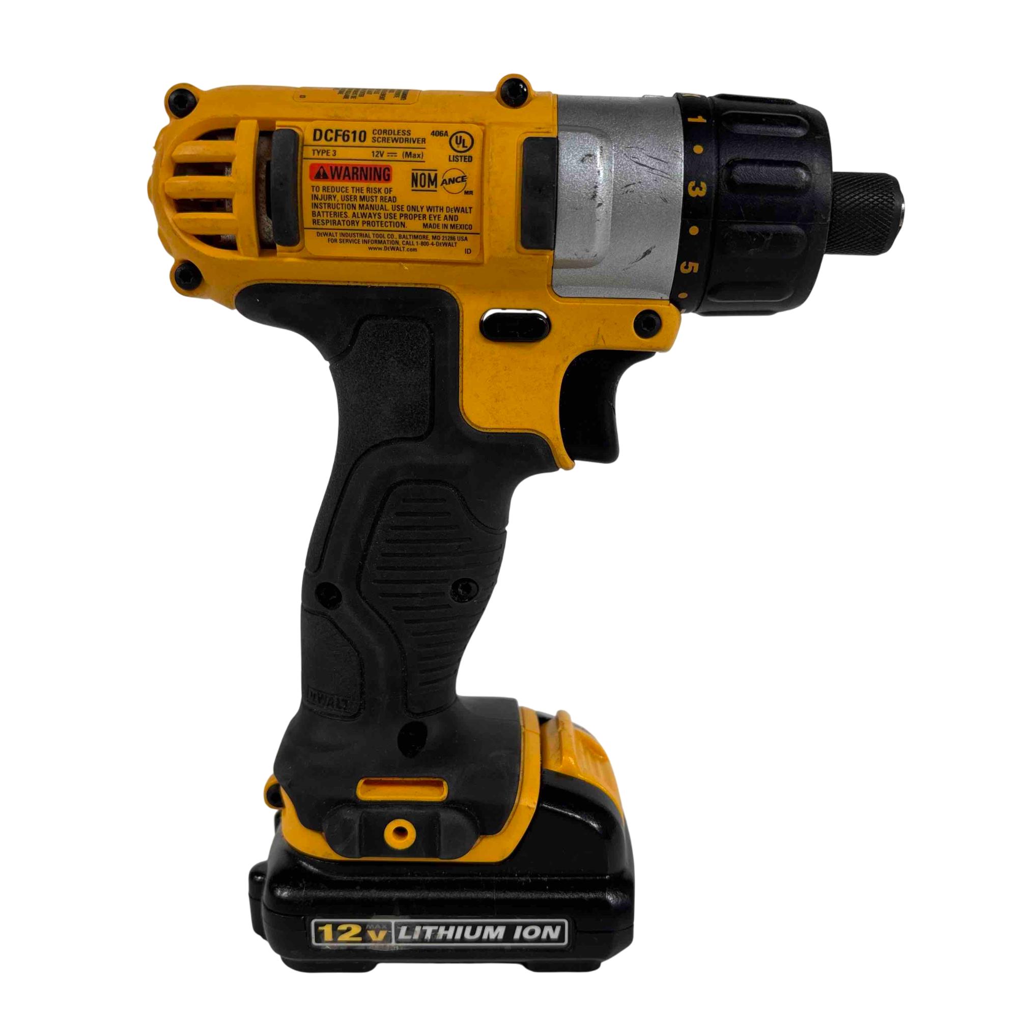 The DCF610 12 V MAX 1/4-in screwdriver kit is essential for any professional to have as it is compact for reaching tight spaces, lightweight to increase productivity, and has three LED lights to allow users to work in dark spaces.