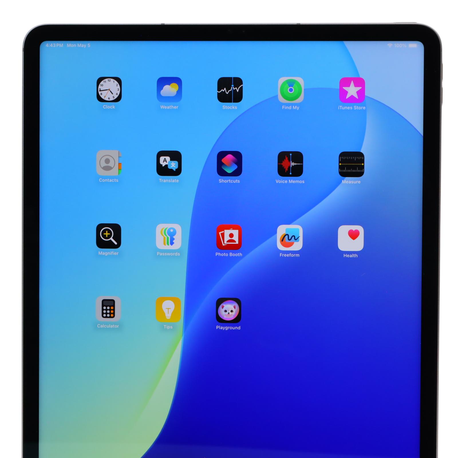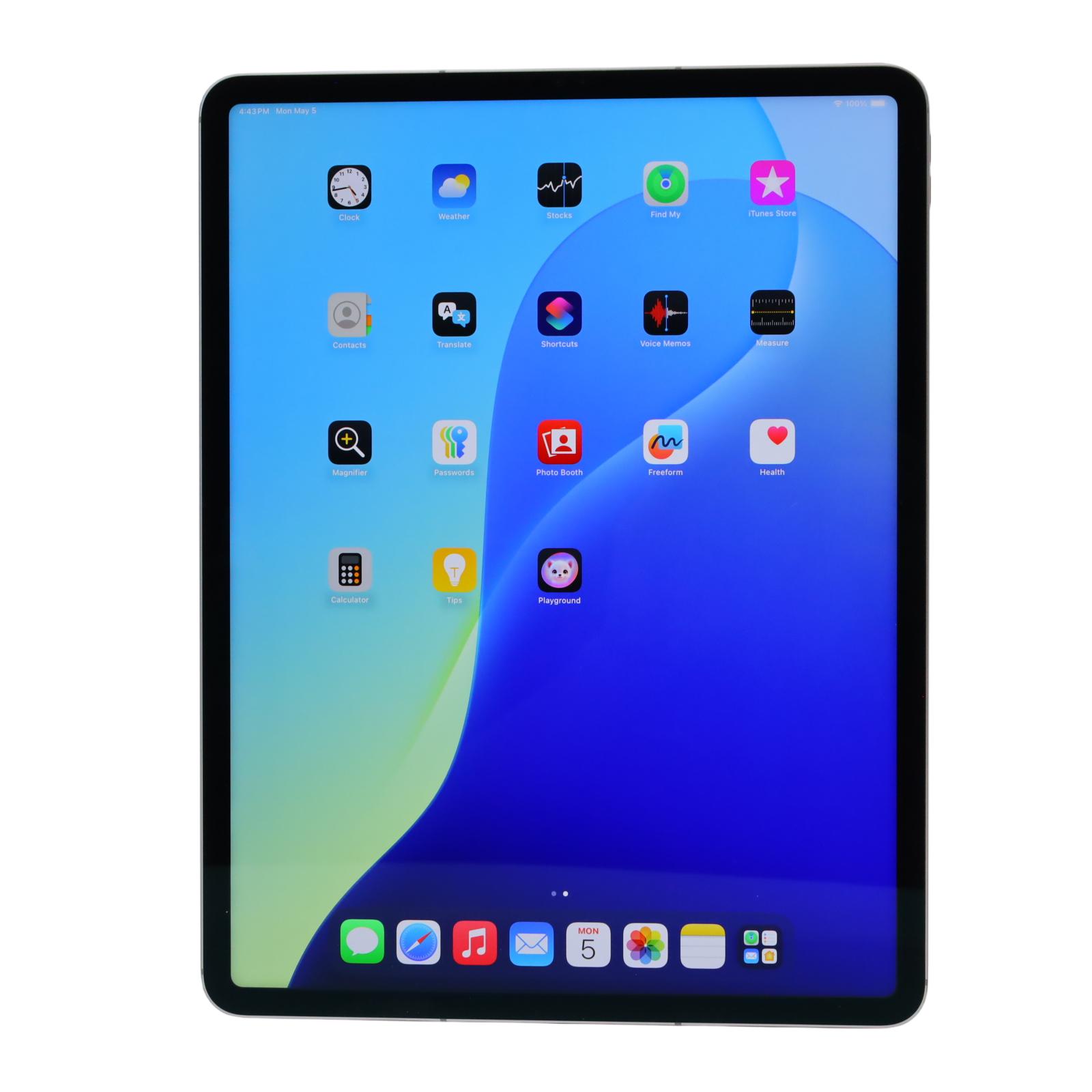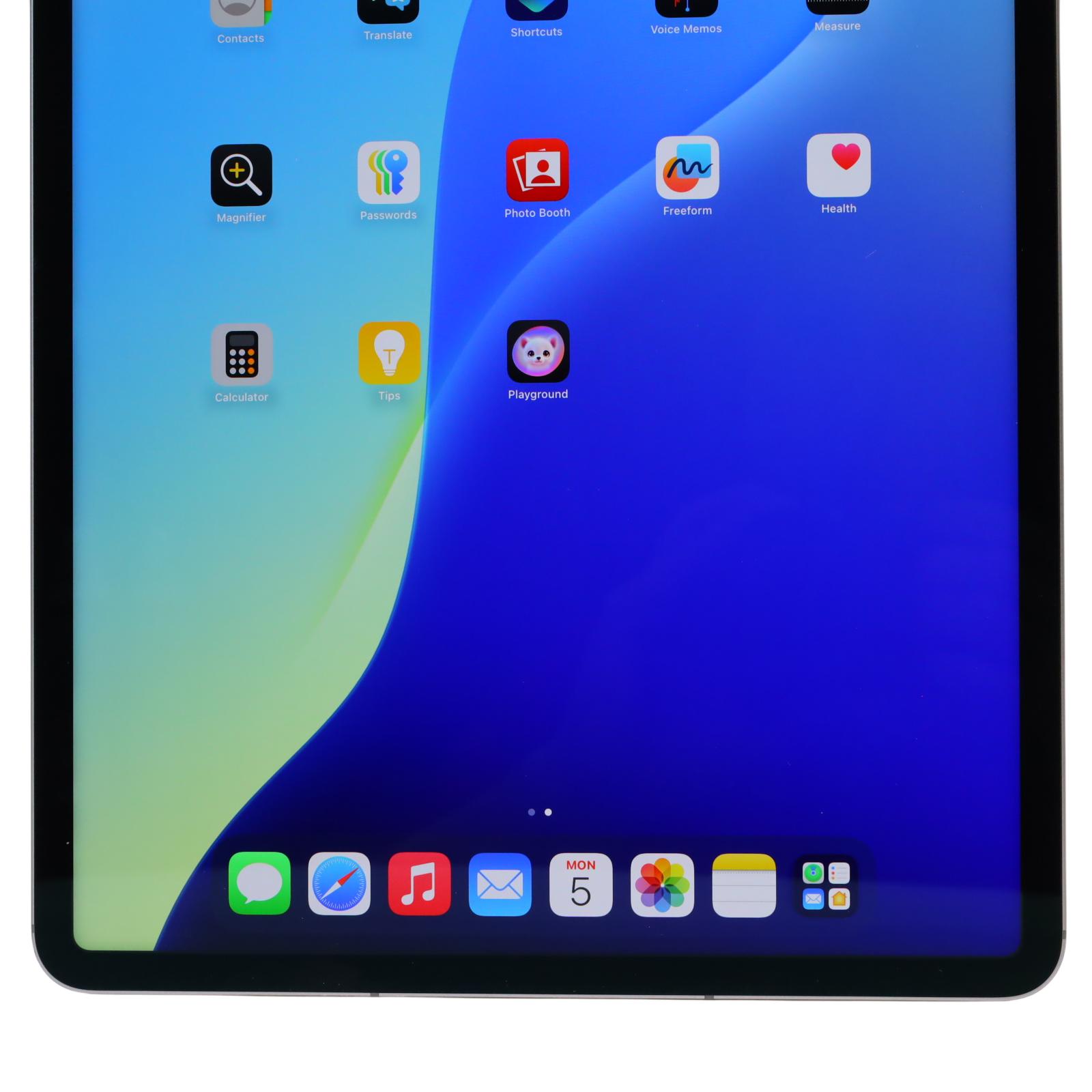 A versatile tablet featuring a 12.9-inch Liquid Retina XDR display with ProMotion, True Tone, and P3 wide color for vivid visuals. It is powered by an M2 chip, which includes an 8-core CPU and a 10-core GPU, delivering robust performance for a variety of tasks. The device is equipped with a 12MP Wide and 10MP Ultra Wide back camera, along with a LiDAR Scanner for augmented reality experiences, and a 12MP Ultra Wide front camera with Center Stage technology. It offers superfast Wi-Fi 6E and 5G cellular connectivity, a USB-C connector that supports Thunderbolt / USB 4, and Face ID for secure authentication and Apple Pay.