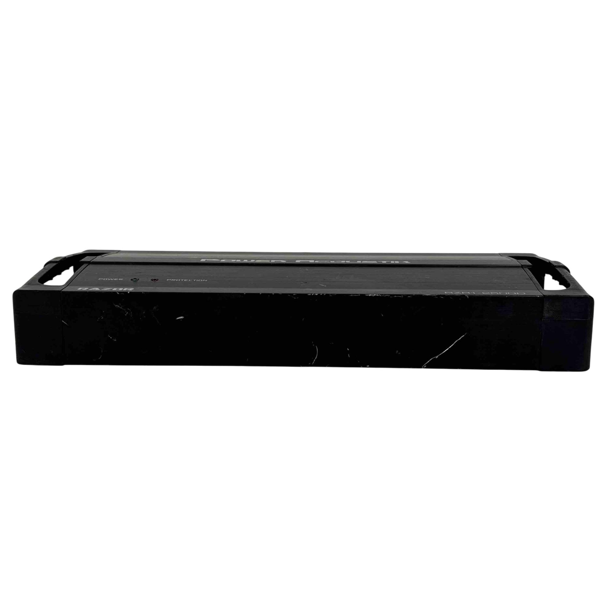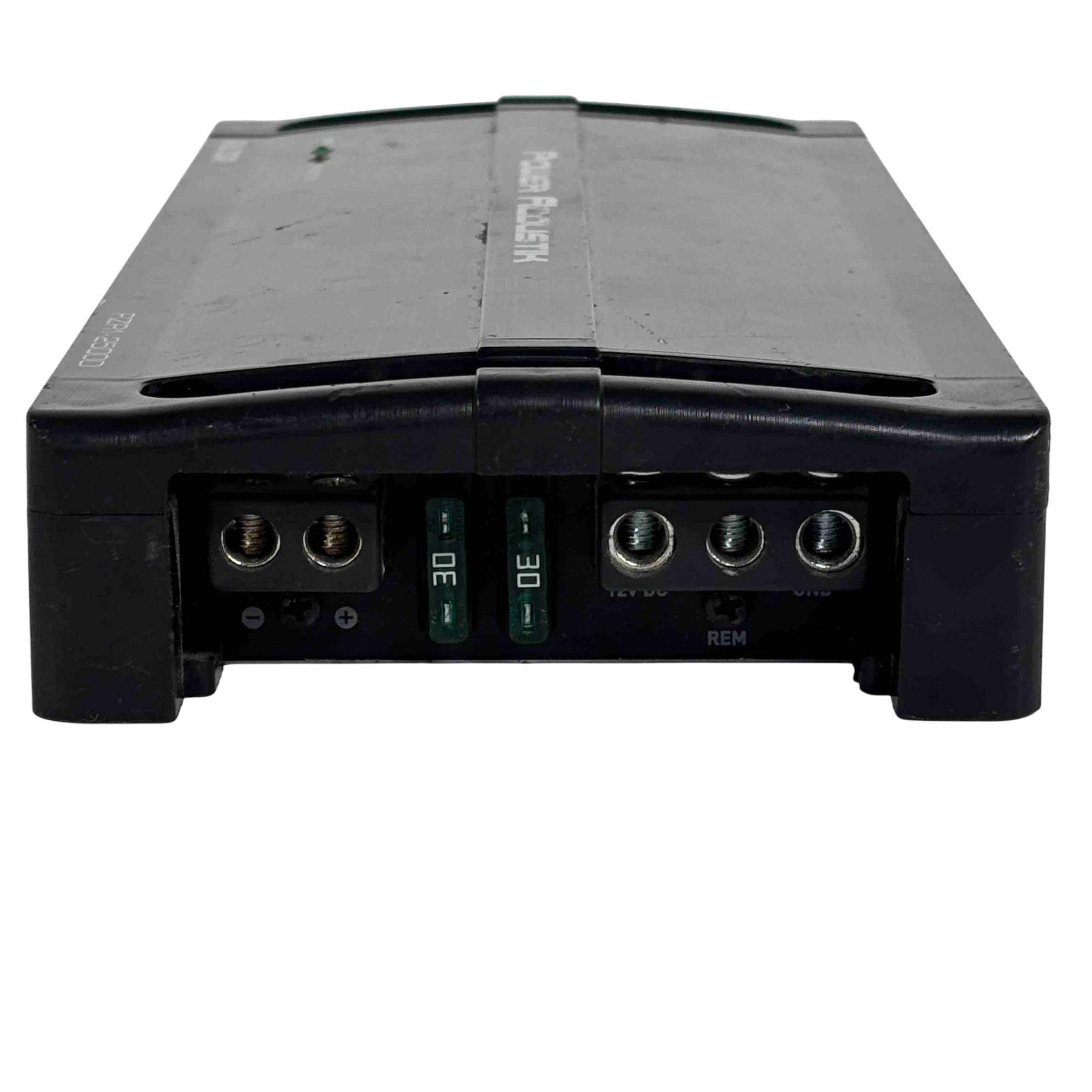 A 2500 Watt Class D Monoblock Subwoofer Amplifier known for its compact design, with a chassis width of 4.75 inches, allowing for versatile installation options. It features a MOSFET power supply enhanced by audiophile-grade IRTM transistors, and its construction includes a military-grade SMT PCB that ensures sustained dynamic performance. This amplifier is stable at a minimum impedance of 2 ohms and includes built-in circuits to protect against direct shorts, thermal issues, and overloads. It is equipped with 200mV-6V low-level RCA inputs and also supports high-level input with a signal sense auto function, facilitating flexible connection options for various audio setups.