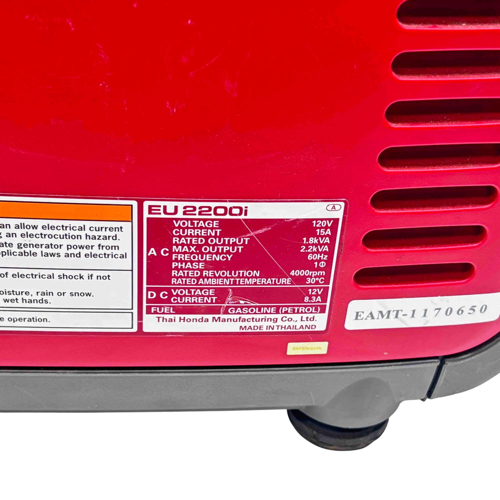 2200 watts (18.3 A) of Honda Inverter 120V AC Power