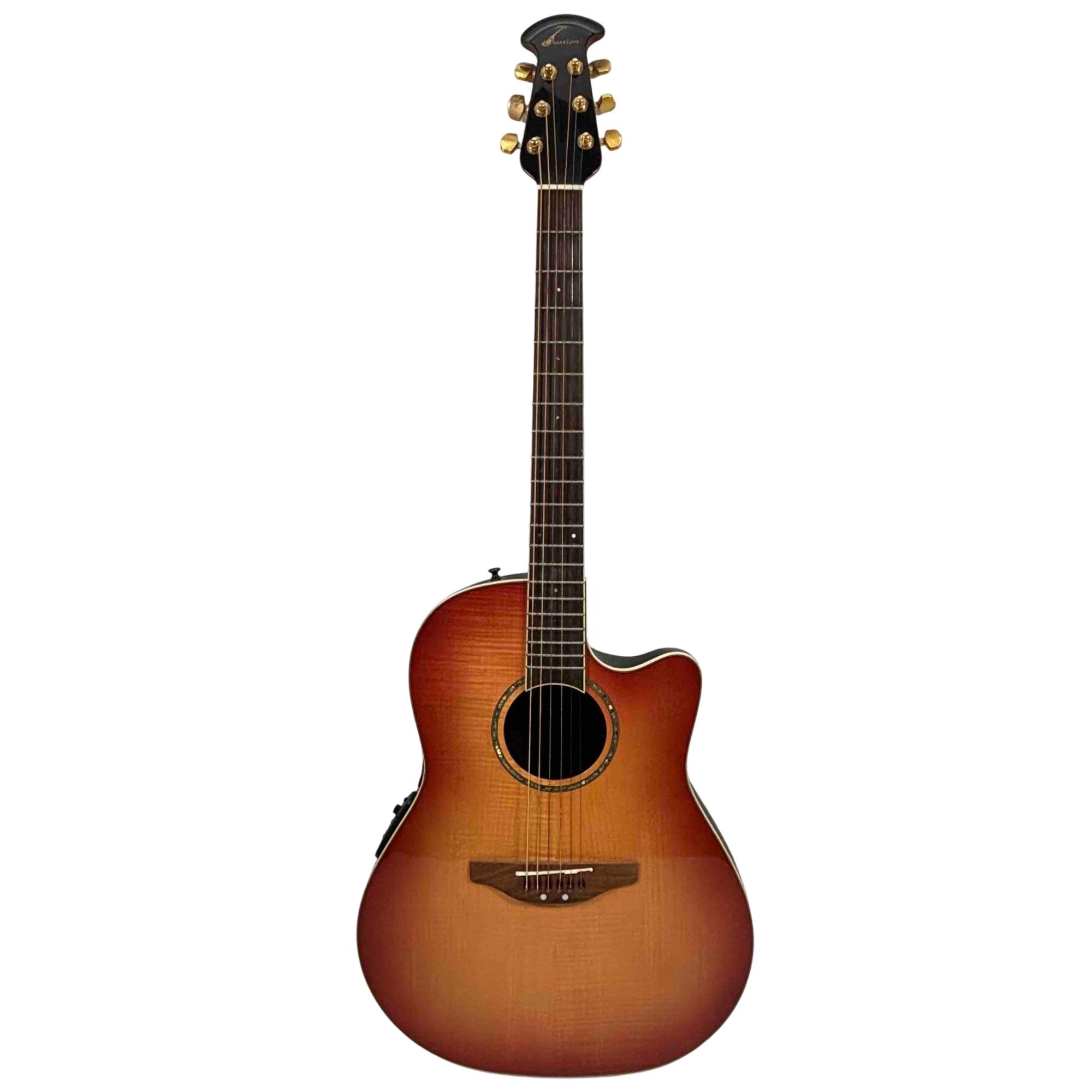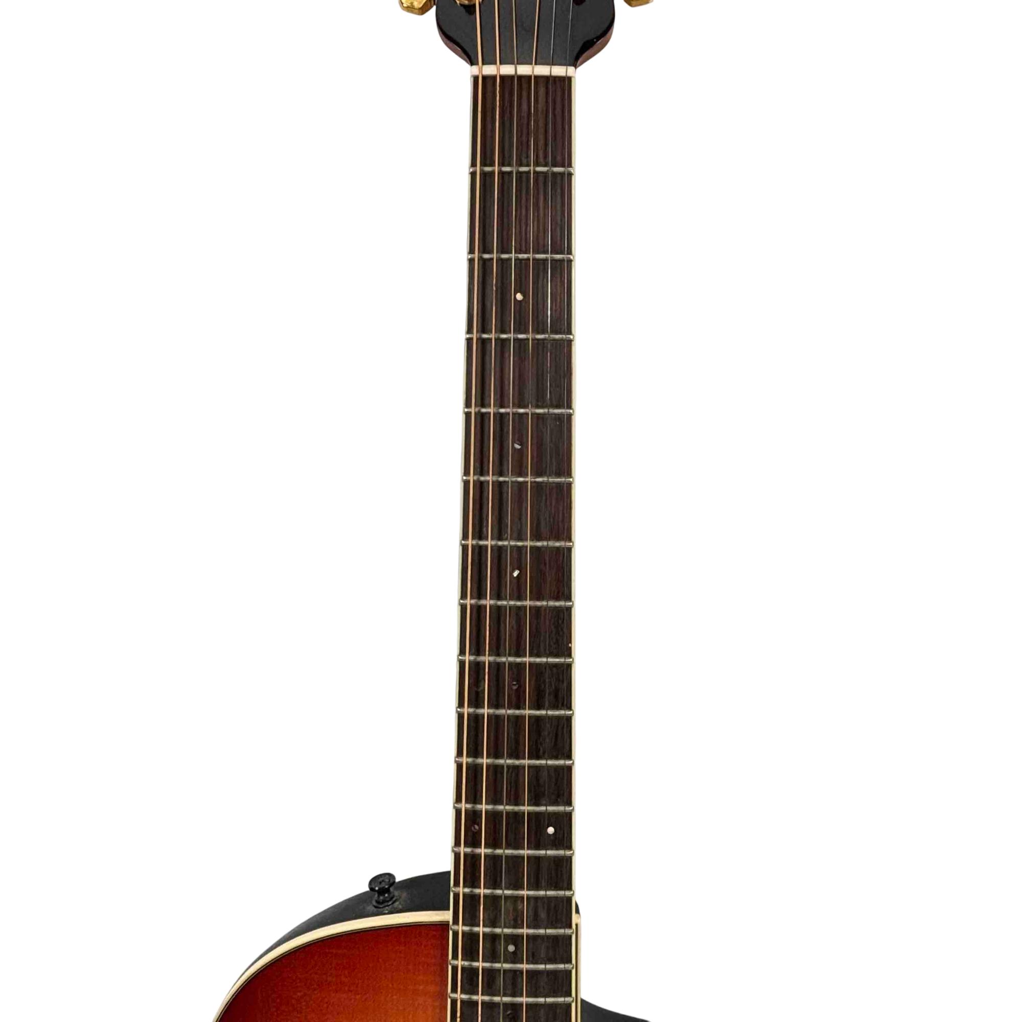 Experience the legendary Ovation sound with the Celebrity CC28, featuring a sunburst wood finish, distinctive mid-depth cutaway lyrachord body for comfortable playability, and elegant gold tuning pegs. This acoustic-electric guitar boasts Ovation’s signature round back design for enhanced projection and a built-in pickup system, making it perfect for both studio and stage performances.