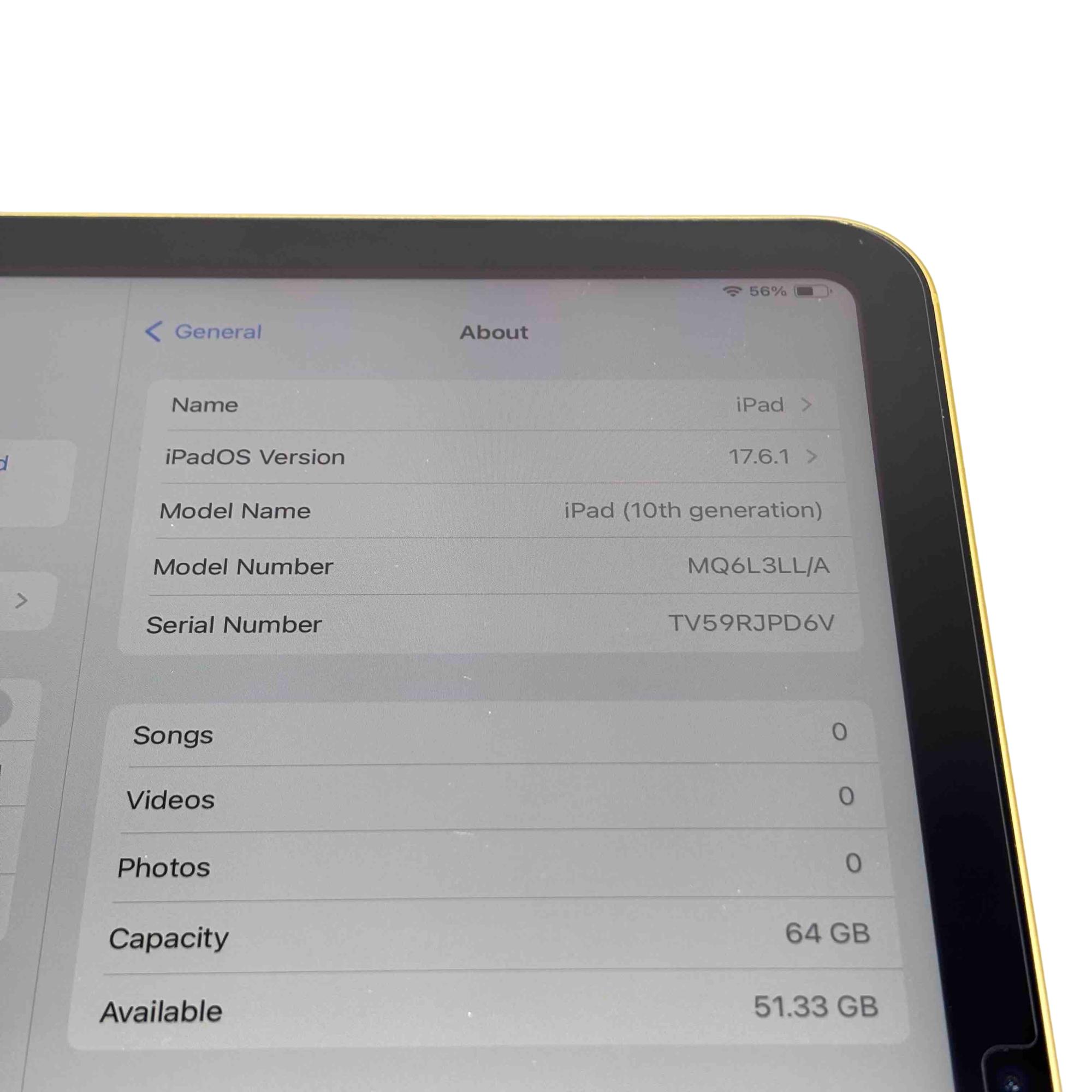 Model: iPad 10th Gen A2757 MQ6L3LL/A