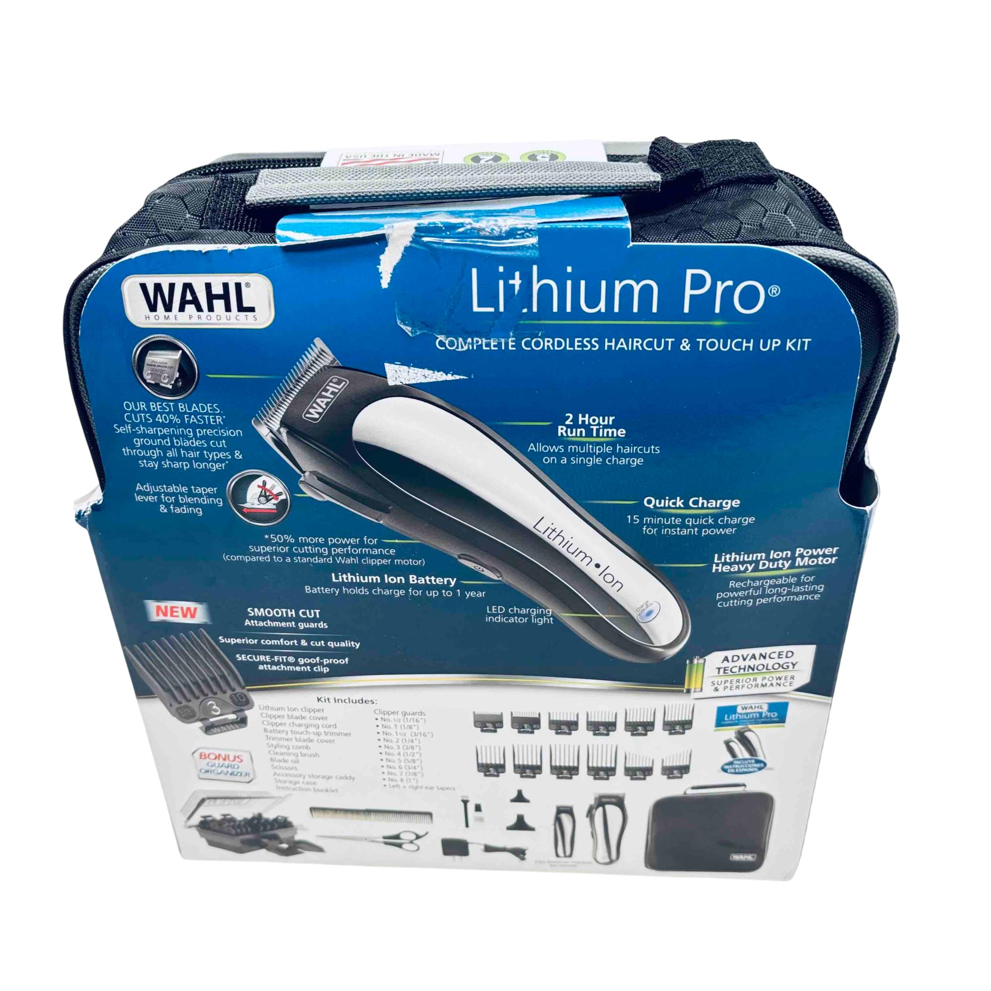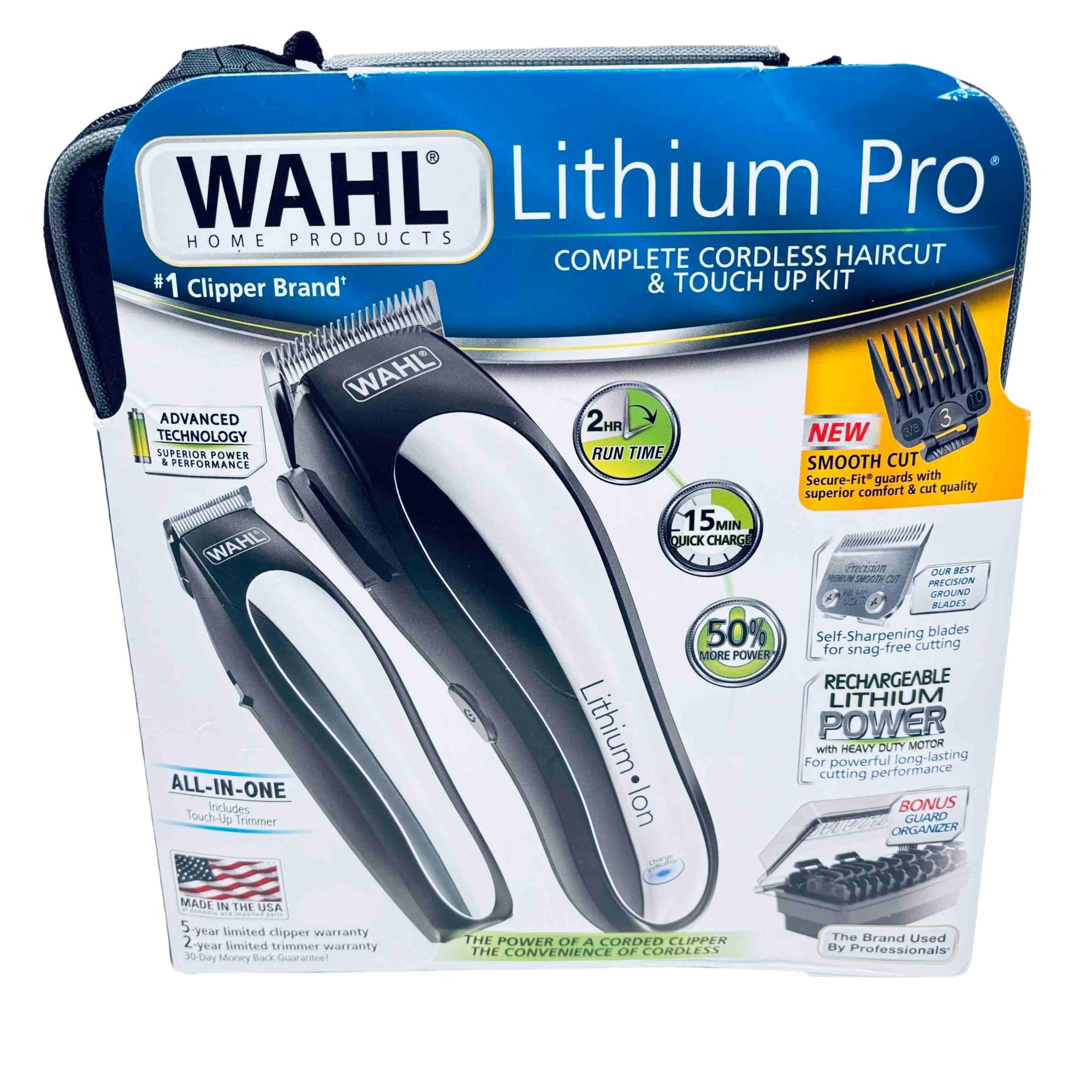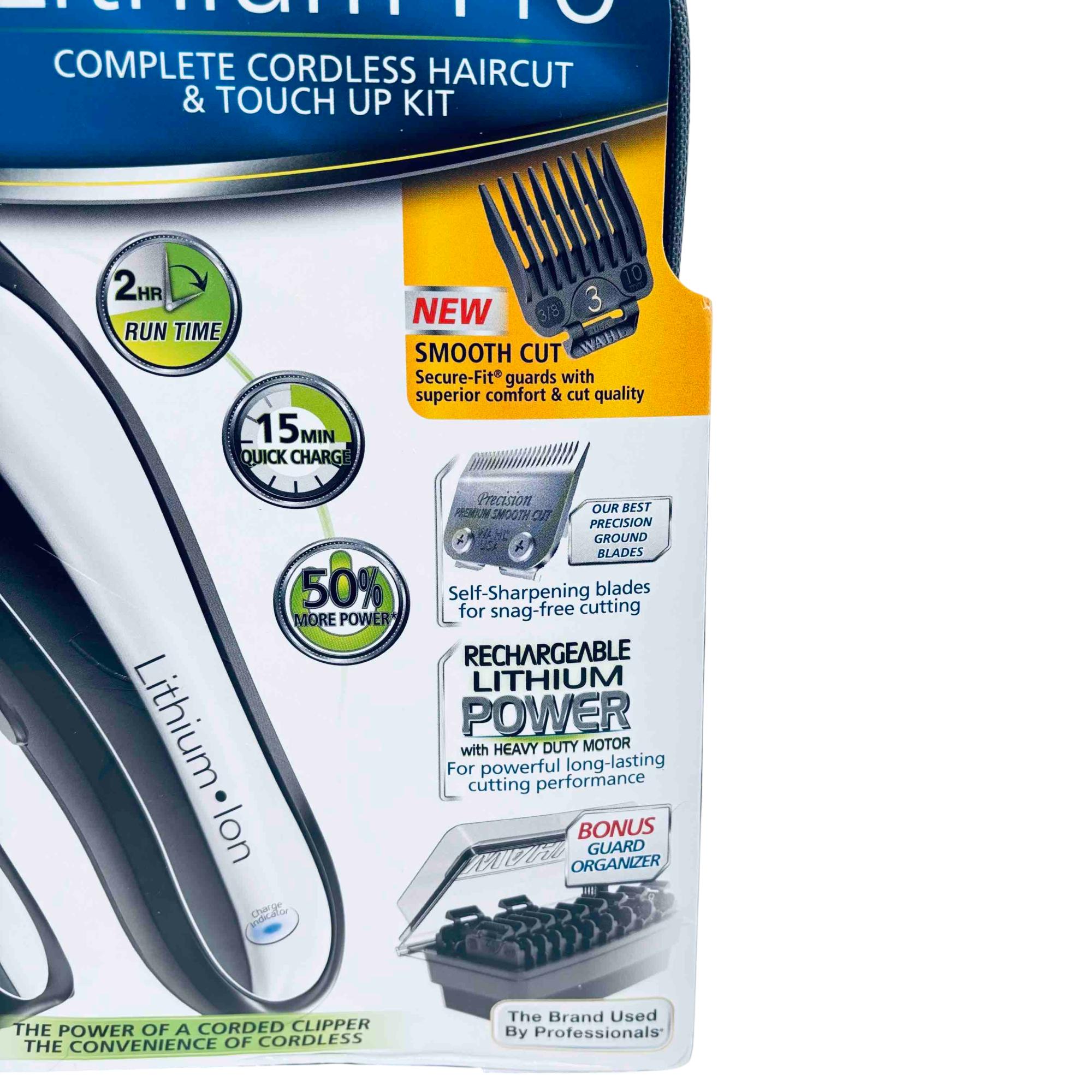 Experience professional-grade haircuts at home with the WAHL Lithium Pro Complete Cordless Haircut & Touch-Up Kit. This all-in-one grooming set features a powerful lithium-ion clipper and touch-up trimmer, delivering up to 2 hours of cordless run time, a 15-minute quick charge, and 50% more power for snag-free, precision cutting. With premium self-sharpening blades, smooth cut guards, and a bonus guard organizer, it’s the ultimate choice for reliable, comfortable grooming.