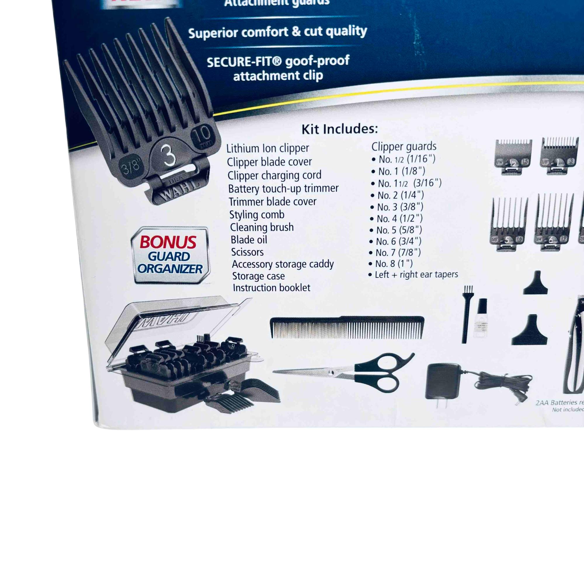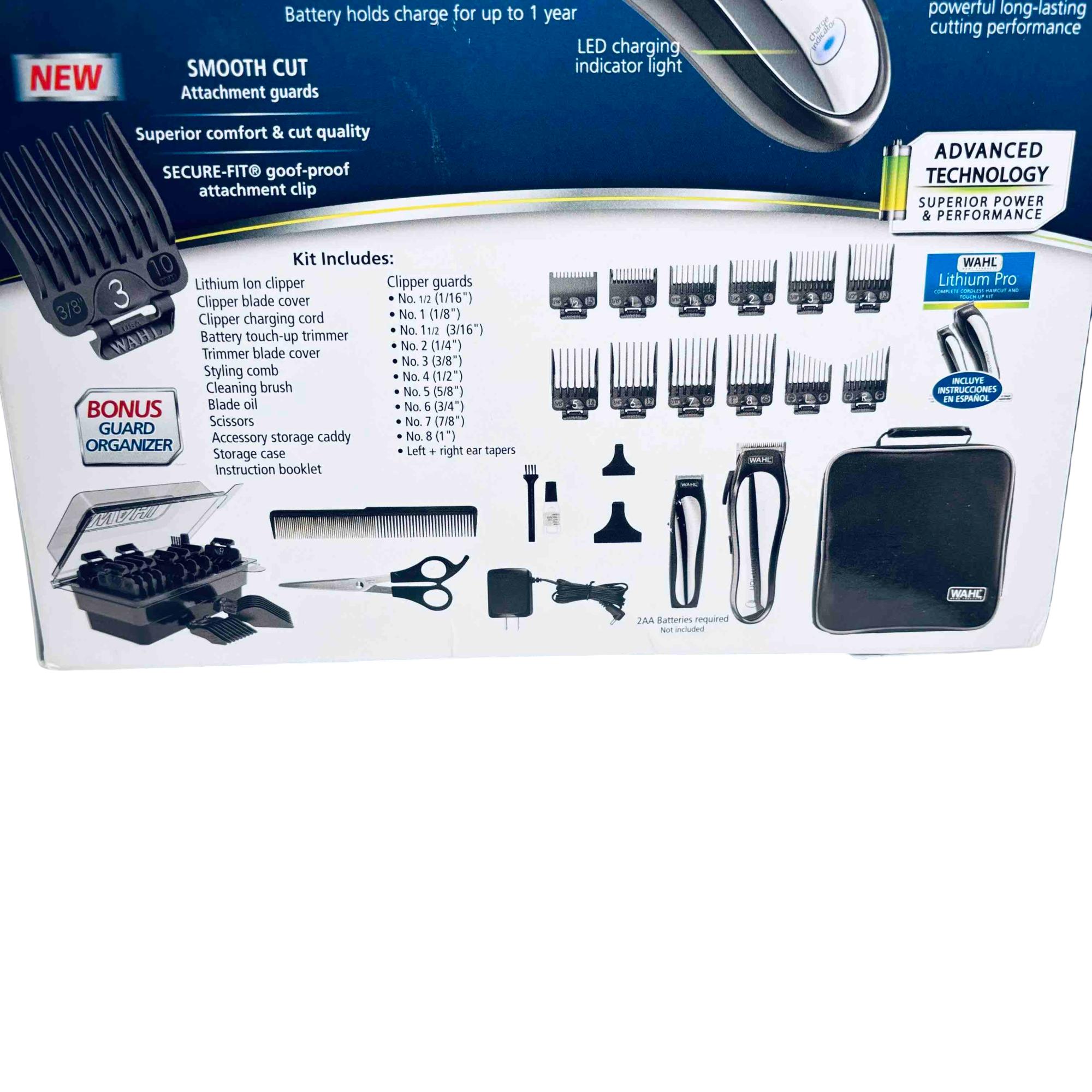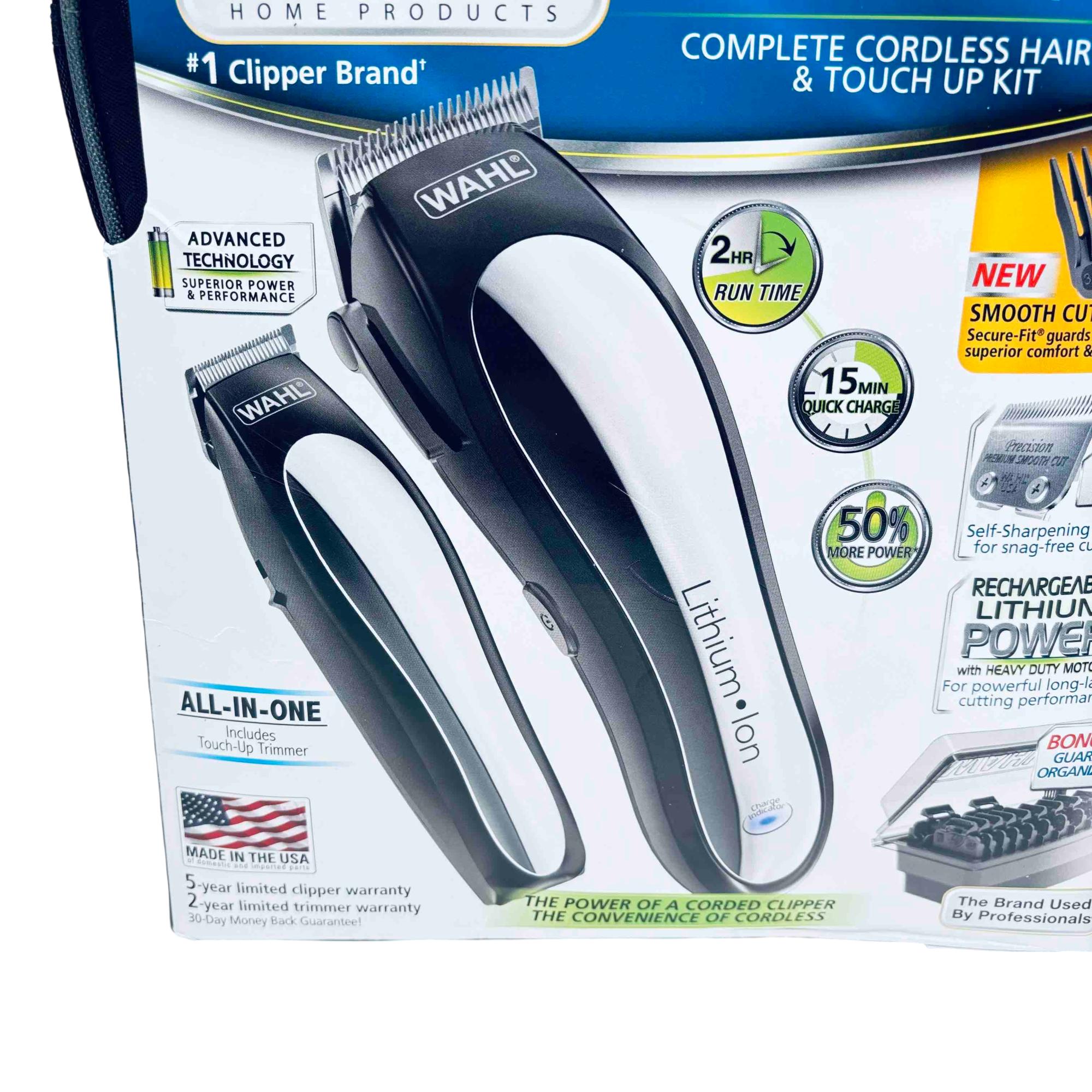 Experience professional-grade haircuts at home with the WAHL Lithium Pro Complete Cordless Haircut & Touch-Up Kit. This all-in-one grooming set features a powerful lithium-ion clipper and touch-up trimmer, delivering up to 2 hours of cordless run time, a 15-minute quick charge, and 50% more power for snag-free, precision cutting. With premium self-sharpening blades, smooth cut guards, and a bonus guard organizer, it’s the ultimate choice for reliable, comfortable grooming.