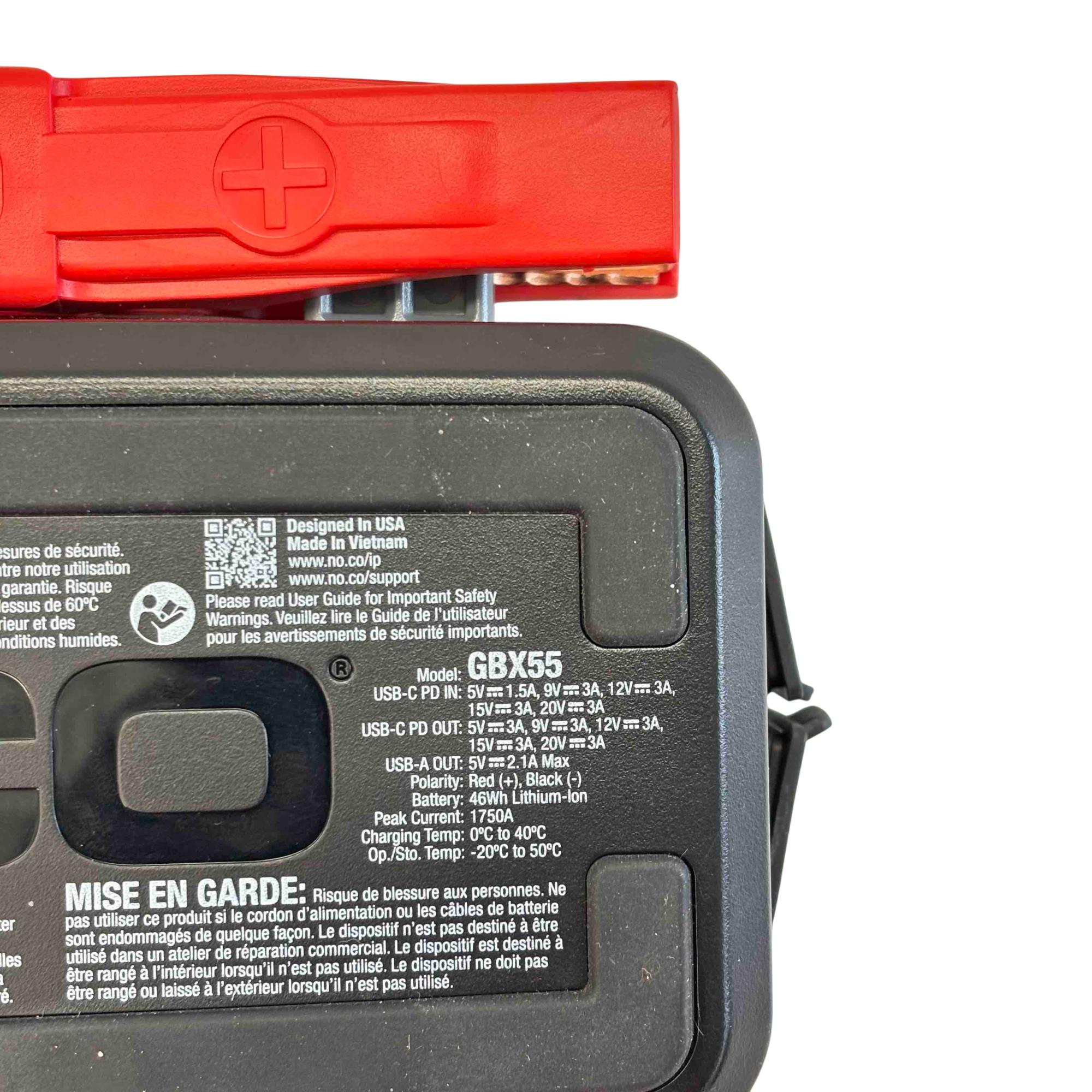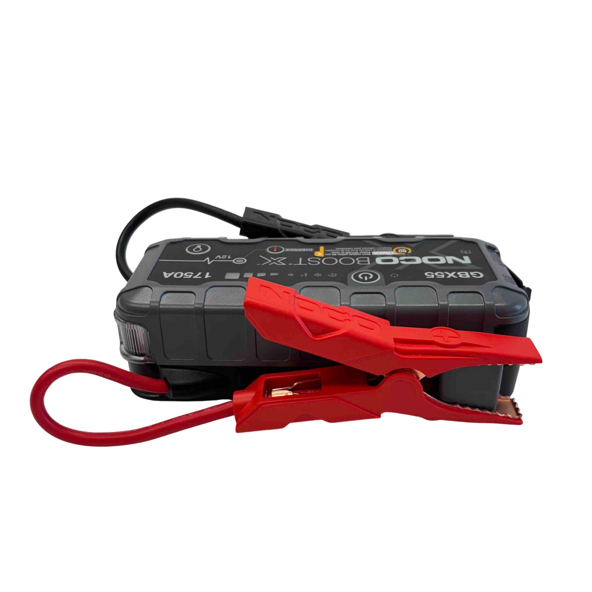 Revive your dead battery instantly with the NOCO Boost X GBX55, delivering an impressive 1750 Amps to jump start 12V vehicles in seconds. Compact yet powerful, this premium portable jump starter features rugged construction, heavy-duty clamps, multiple USB charging ports, and advanced safety technology to make emergency starts safer and easier. Designed for reliability on the road, it’s perfect for cars, trucks, boats, and powersports vehicles.