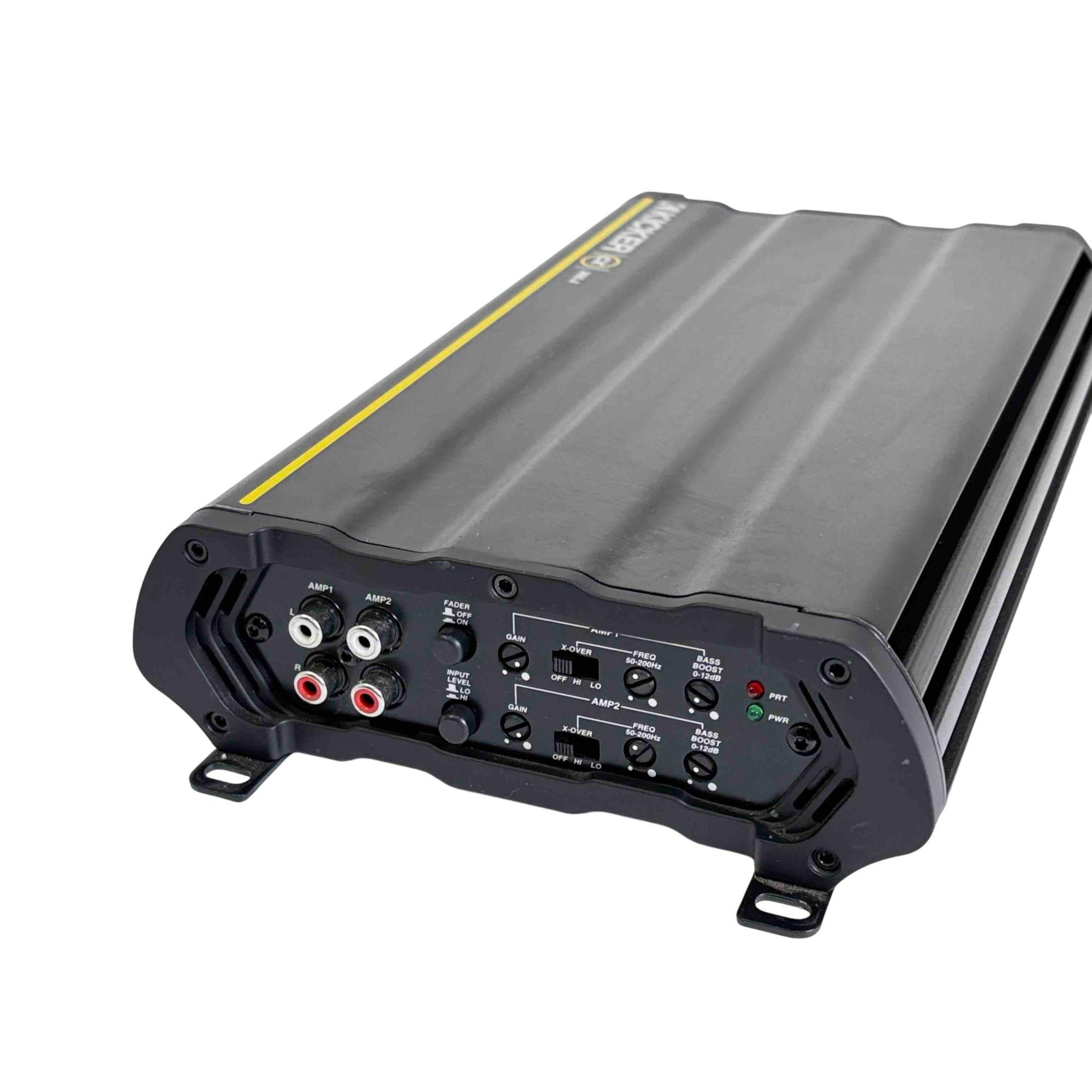 150 watts RMS x 2 at 4 ohms (4-ohm stable in bridged mode)