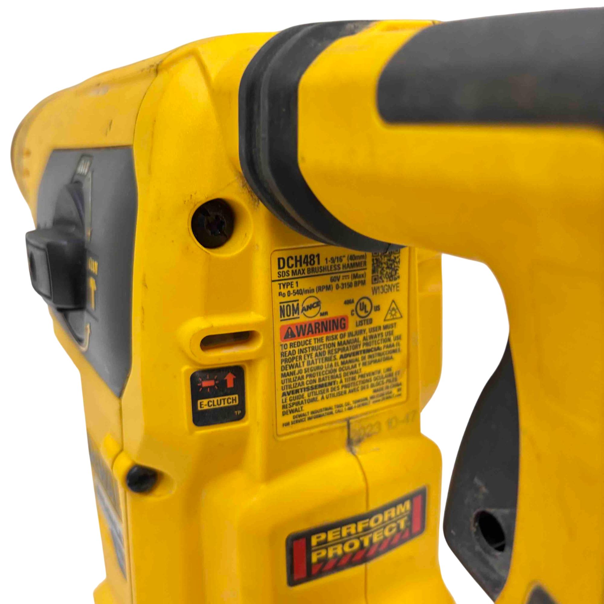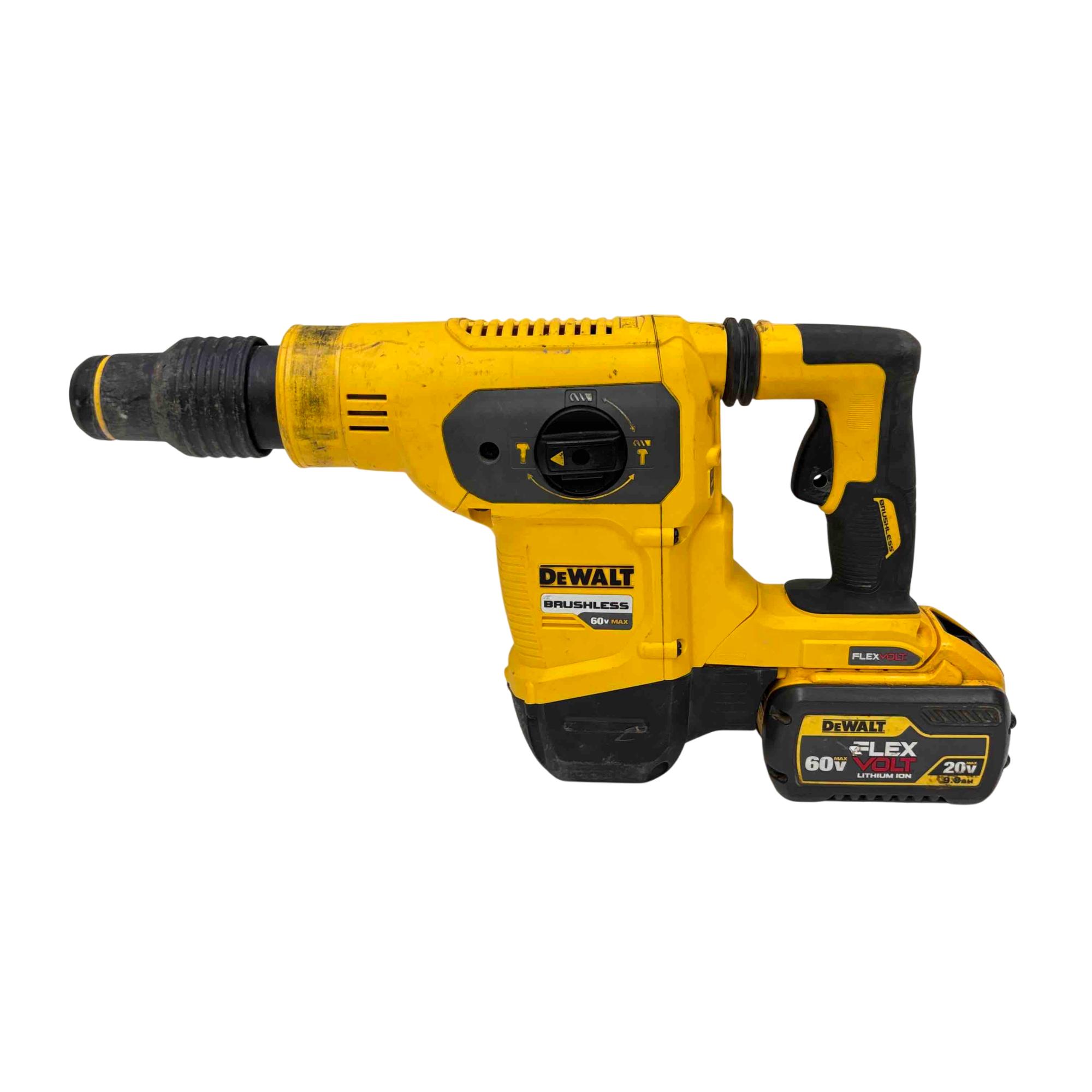 Take on the toughest jobs with the DEWALT DCH481 60V MAX FLEXVOLT Brushless Rotary Hammer Drill. Engineered with a powerful 1-9/16" SDS MAX chuck, advanced brushless motor, and FLEXVOLT lithium-ion battery system, this heavy-duty tool delivers outstanding performance, making it ideal for demanding drilling and chiseling tasks in concrete and masonry. Designed for professionals, it offers longer runtime, less maintenance, and the ultimate in cordless jobsite flexibility.