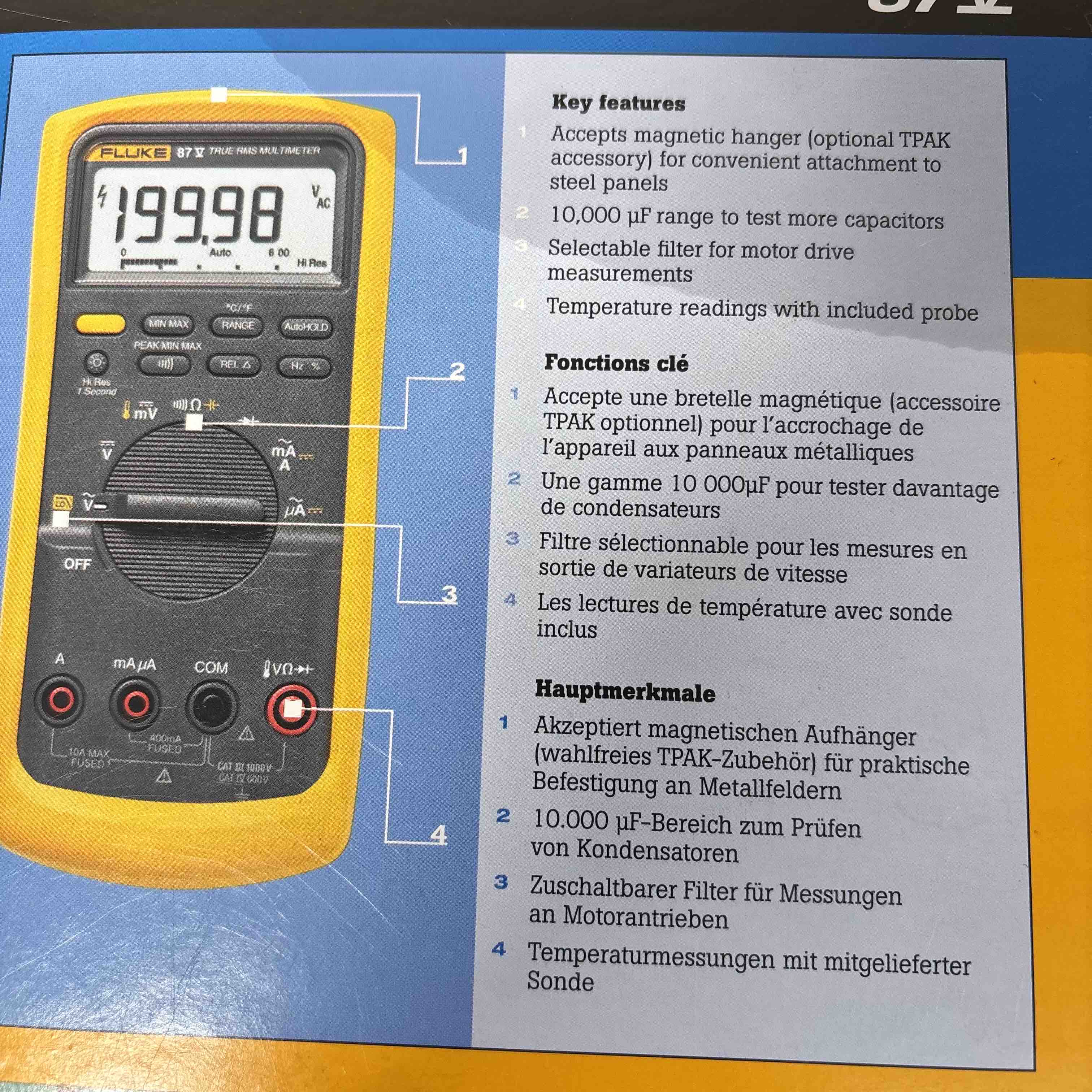 The Fluke 87V Industrial Multimeter provides the resolution and accuracy to efficiently troubleshoot motor drives, plant automation, power distribution, and electromechanical equipment - even in loud, high-energy, and high-altitude locations. The 87V is designed so you can work more efficiently.