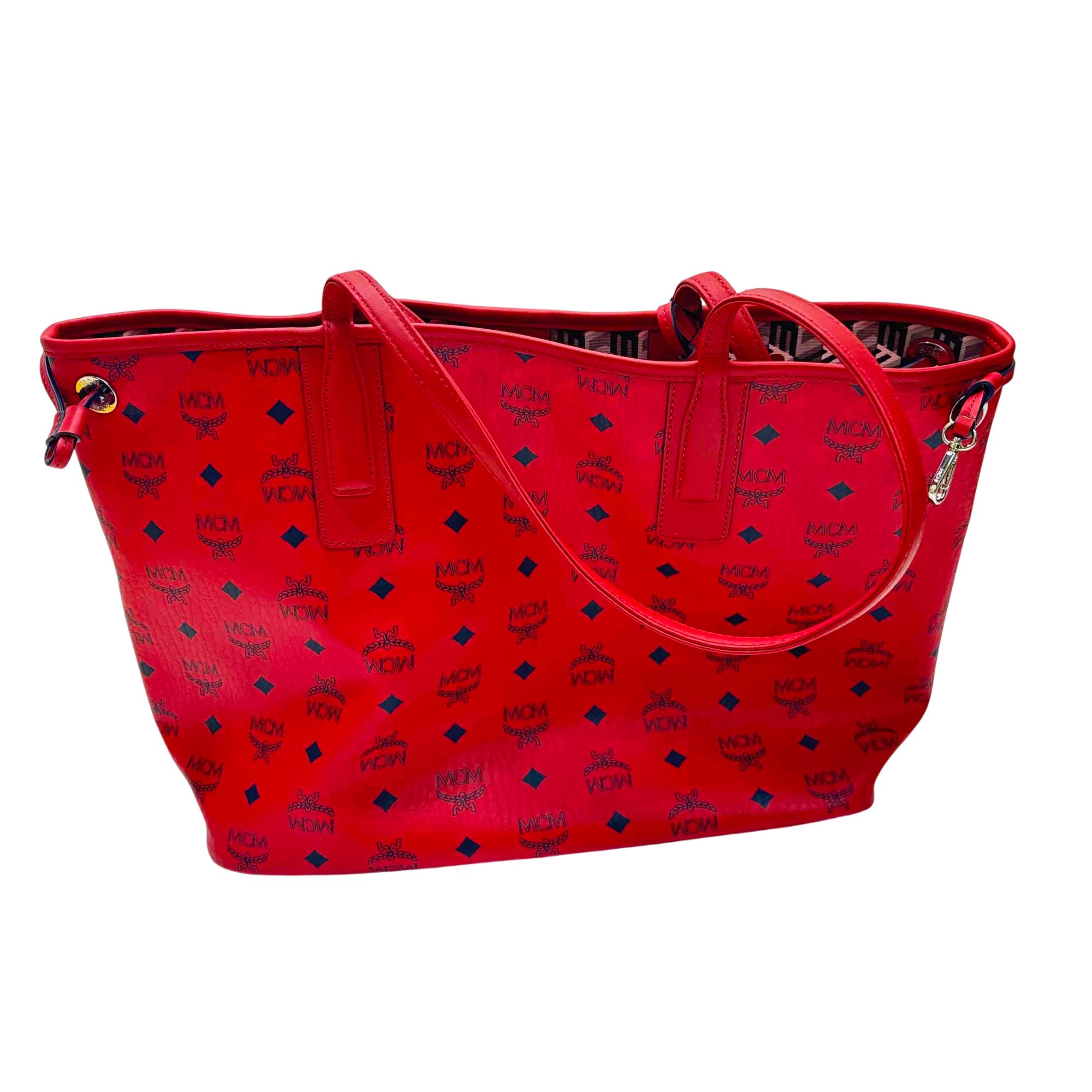 Make a bold statement with the MCM Visetos Large Liz Reversible Tote in stunning Ruby Red. This luxury tote features the iconic MCM monogram and a spacious, versatile design that’s perfect for daily errands or stylish travel. Its reversible capability and premium materials ensure you get two looks in one high-end accessory, combining both fashion and functionality.
