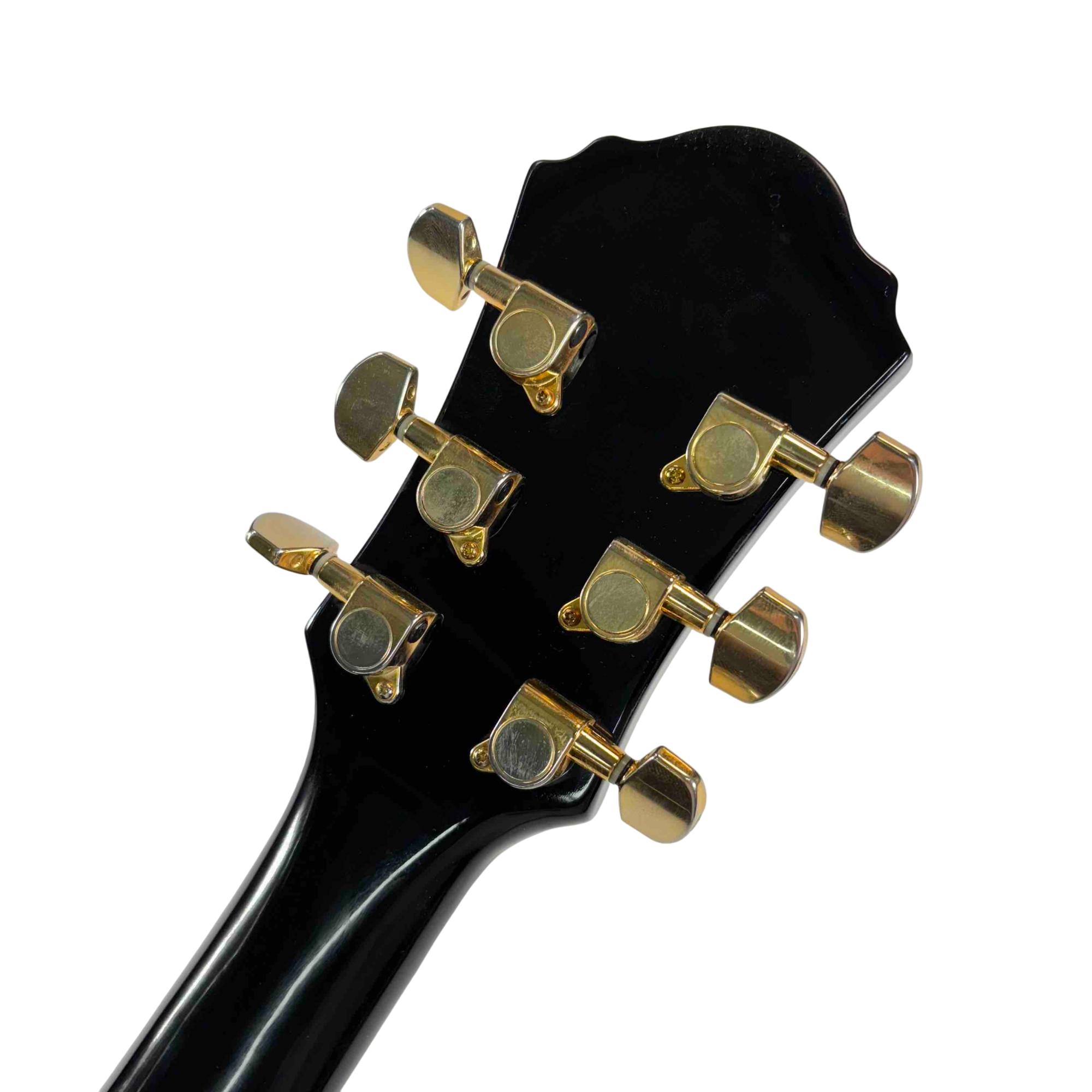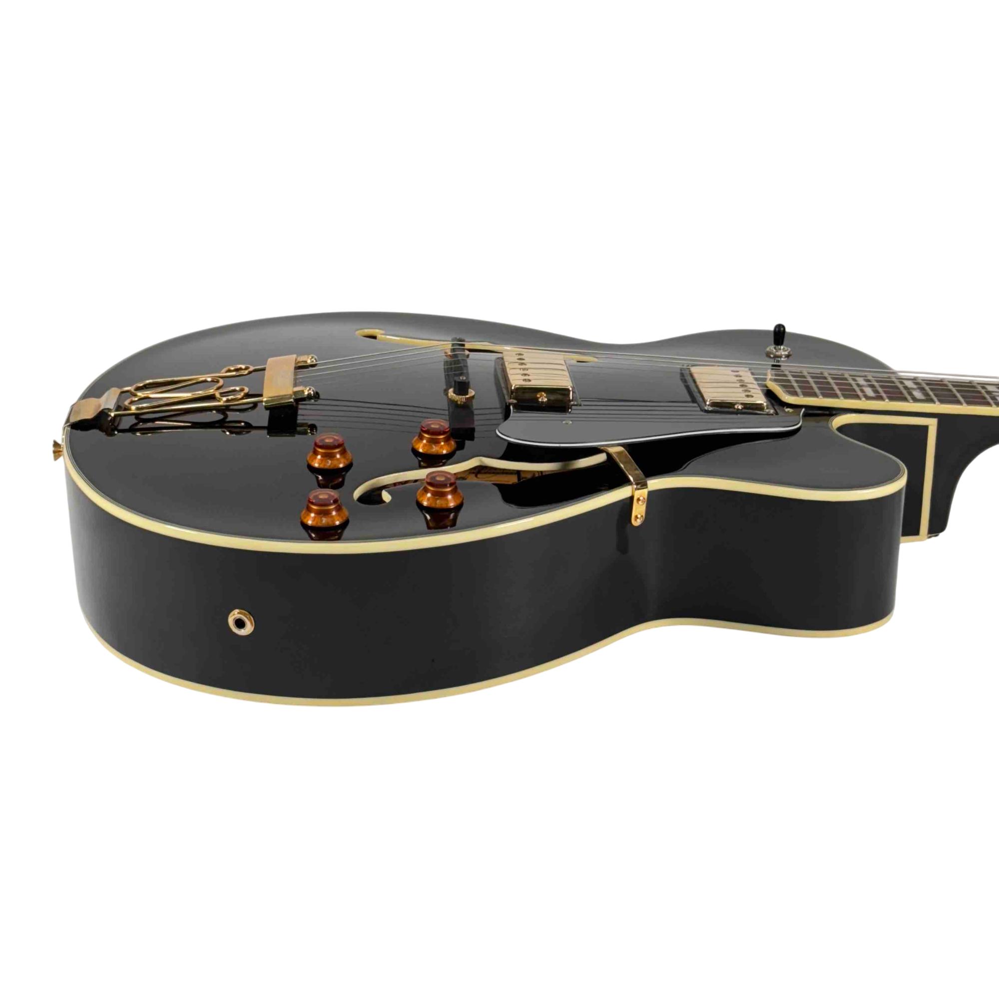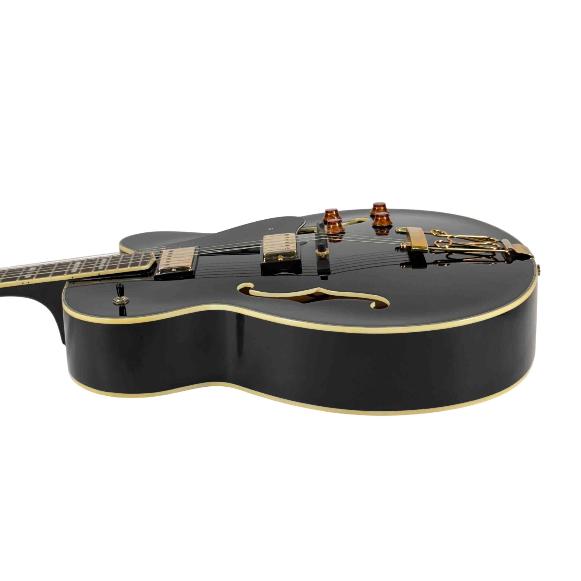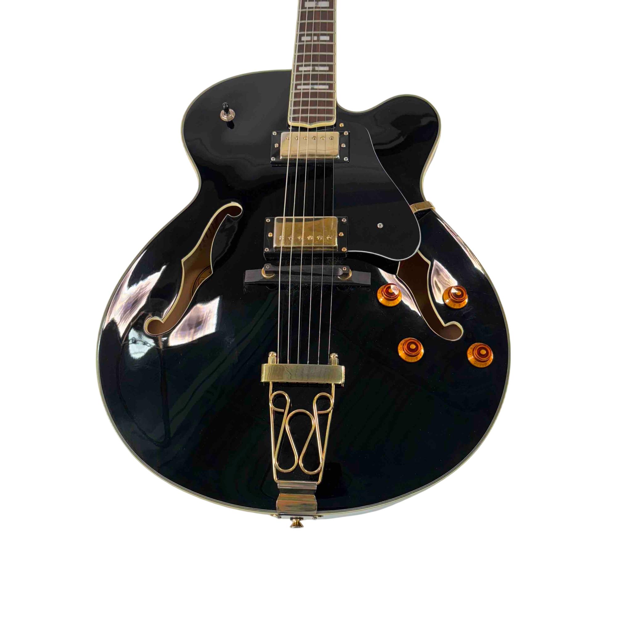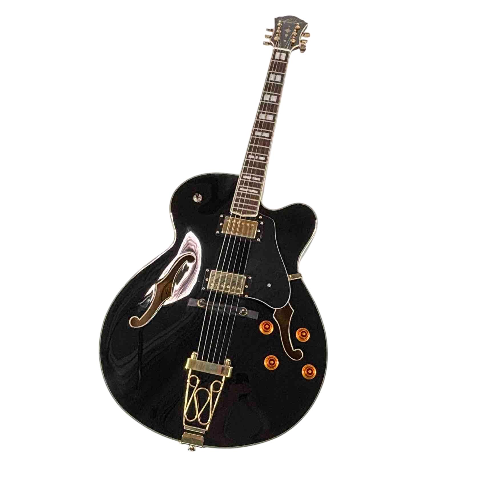Right-handed 6-string semi-hollow body guitar with classic jazz styling. Features dual pickups for versatile tone, allowing both acoustic warmth and electric clarity. Ideal for blues, jazz, and rock players seeking a rich, resonant sound with amplified flexibility.
