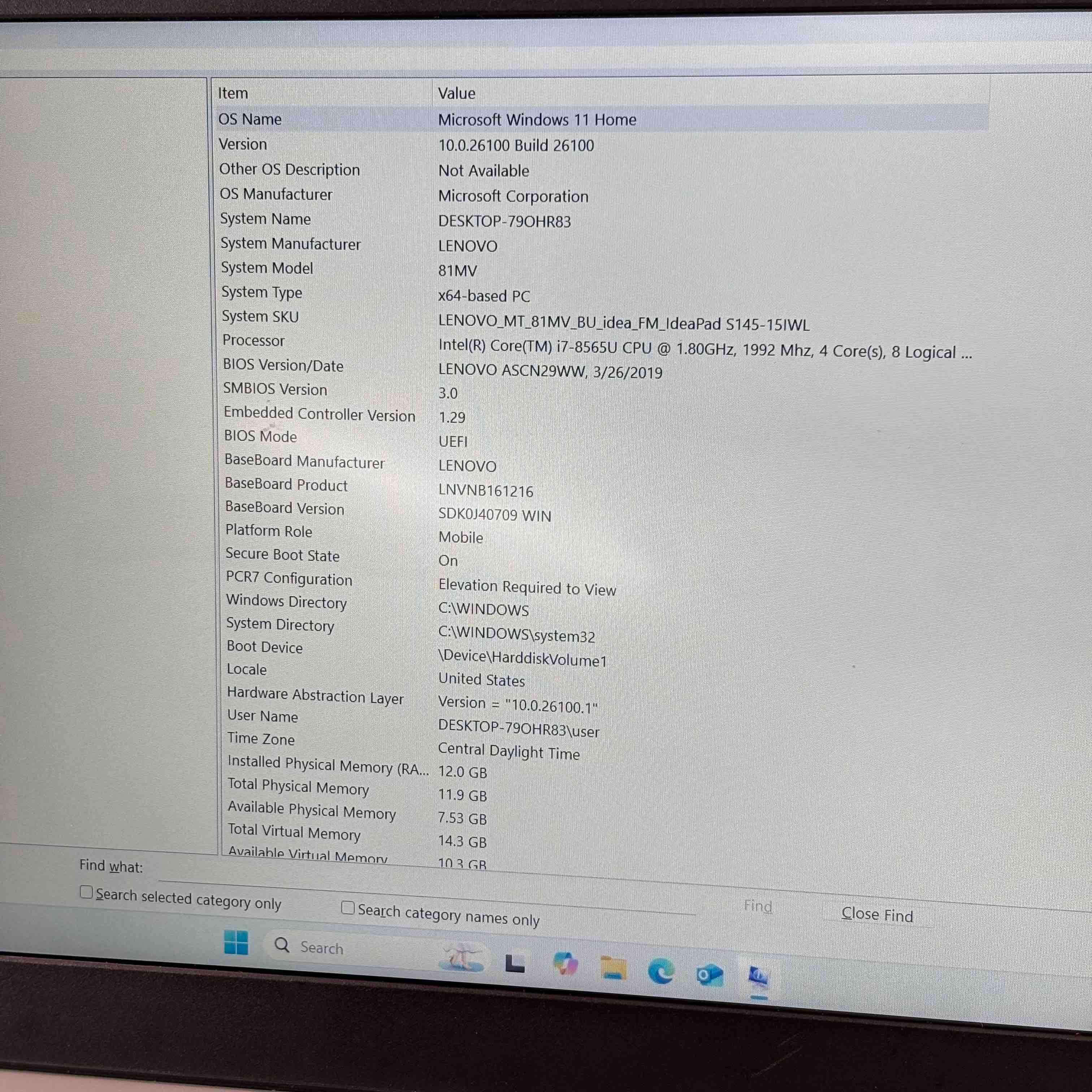 The Lenovo IdeaPad S145-15IWL is a 15.6" Windows 11 laptop featuring an Intel Core i7-8565U processor at 1.8GHz, 12GB of RAM, and a 256GB SSD. It delivers strong performance for everyday multitasking, streaming, and productivity in a sleek, portable design.