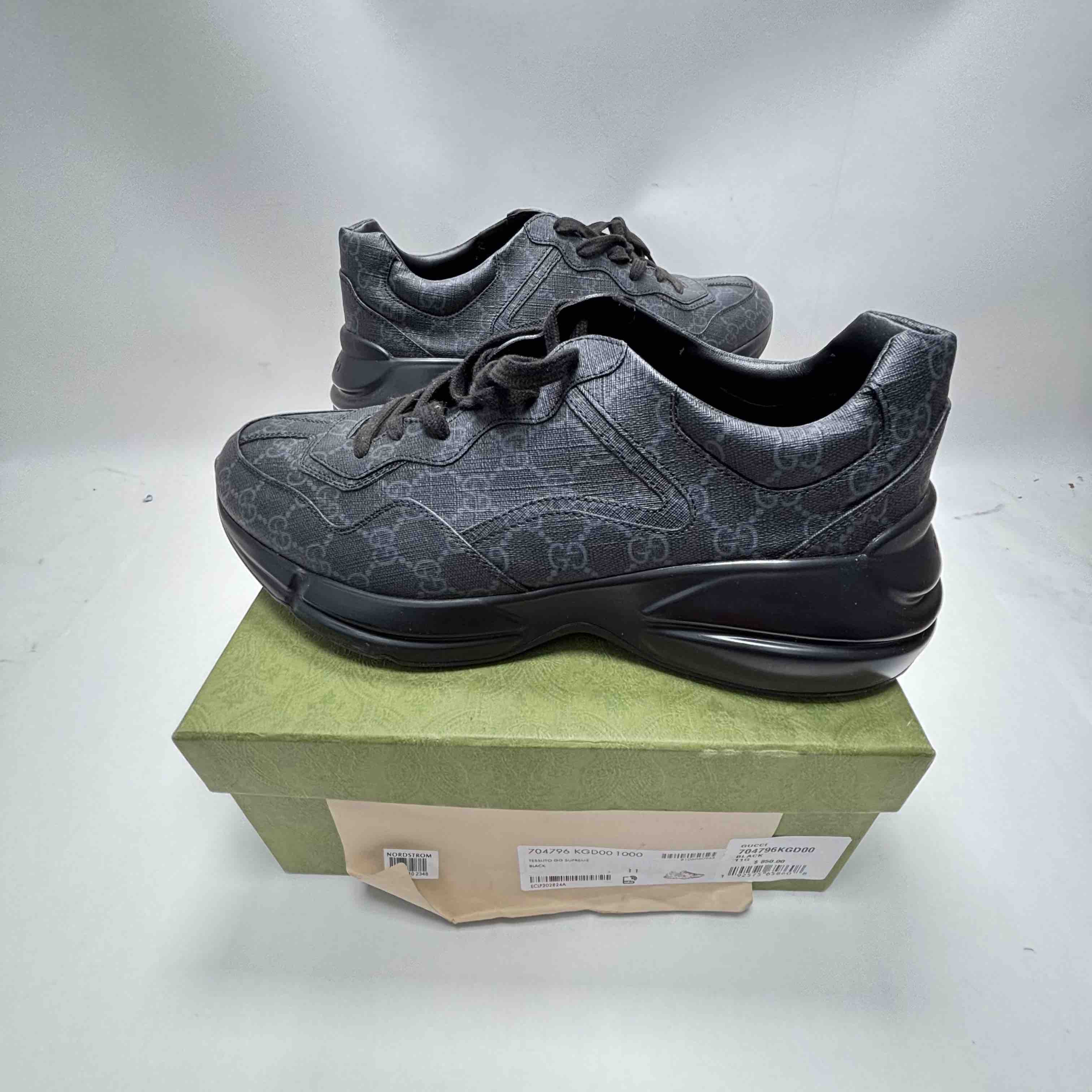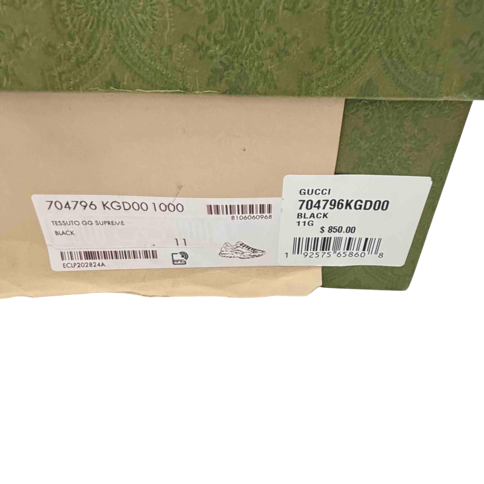 Elevate your footwear game with these Gucci Tessuto GG Supreme sneakers, featuring the iconic black GG monogram canvas and a sleek, modern silhouette. Designed with premium materials and attention to detail, these shoes effortlessly combine luxury style with comfort for everyday wear or standout occasions.