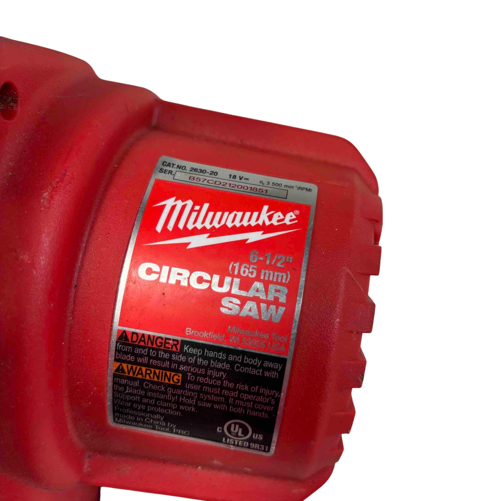 Get the job done with the Milwaukee 2630-20, a robust 18V cordless circular saw designed for heavy-duty tasks. Featuring an ergonomic grip and Milwaukee's signature durability, this tool is perfect for professionals and DIYers alike. The package includes a high-performance M18 REDLITHIUM battery and charger.