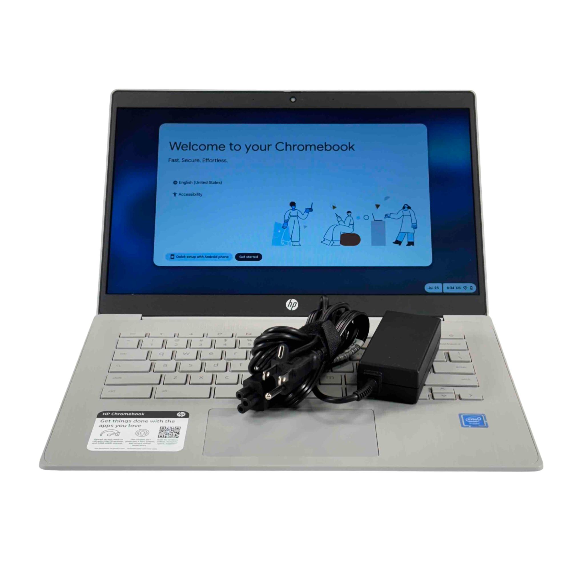The HP 14a-ne0013dx is a 14" Chromebook powered by an Intel Celeron N4120 processor running at 1.1GHz. It features 4GB of RAM and 64GB of eMMC storage, offering smooth performance for web browsing, streaming, and everyday tasks. Running ChromeOS, it provides a simple, secure, and fast computing experience ideal for students and casual users.