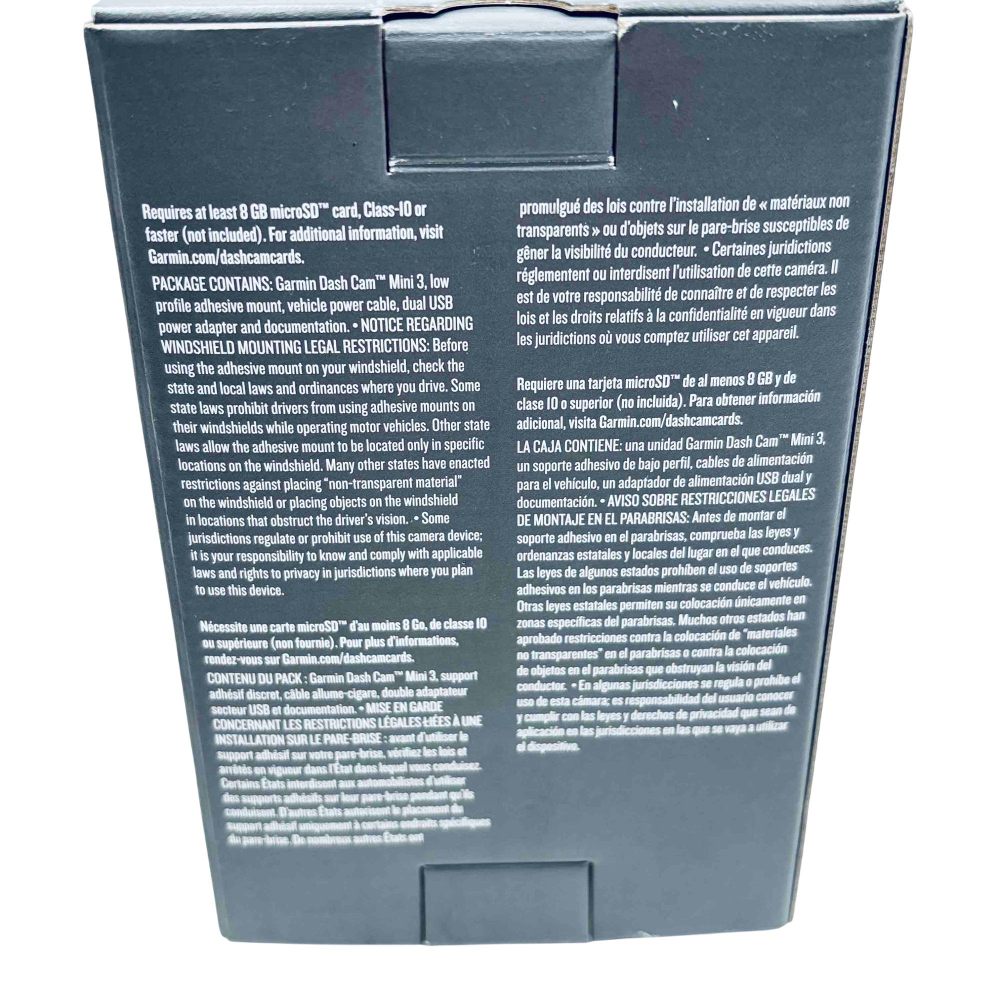 Capture every moment on the road with the Garmin Dash Cam Mini 3, an ultracompact, voice-controlled 1080p dash camera. Designed to blend seamlessly into your vehicle, this dash cam offers reliable recording, Wi-Fi connectivity, and hands-free control for a safer drive. Includes original box, USB cable, car charger, and manual—perfect for drivers seeking premium safety and convenience at a great value.
